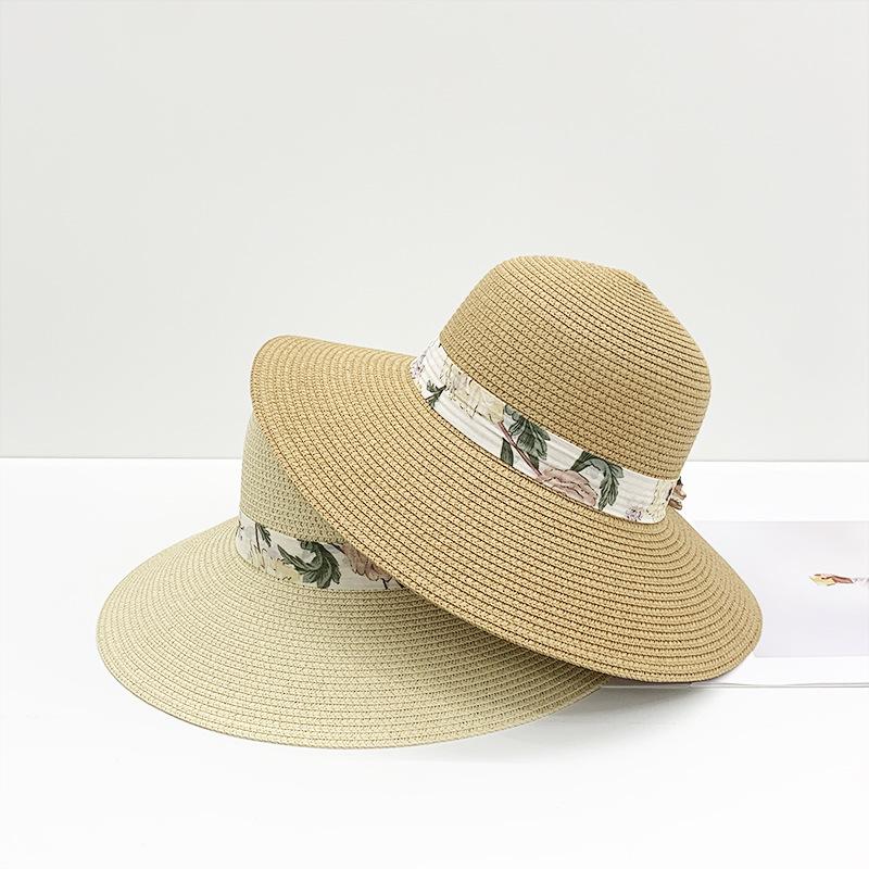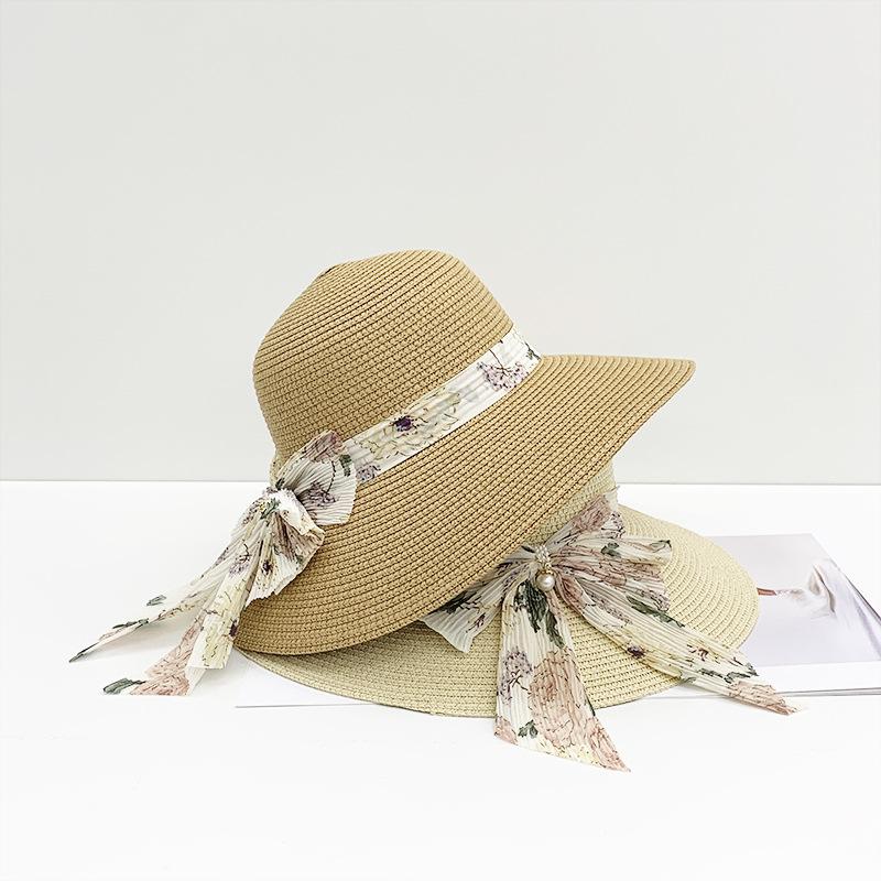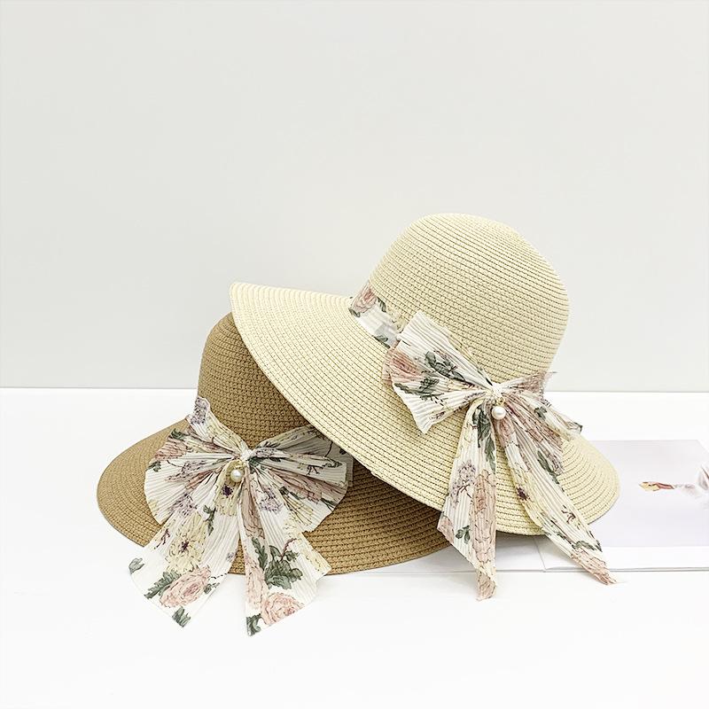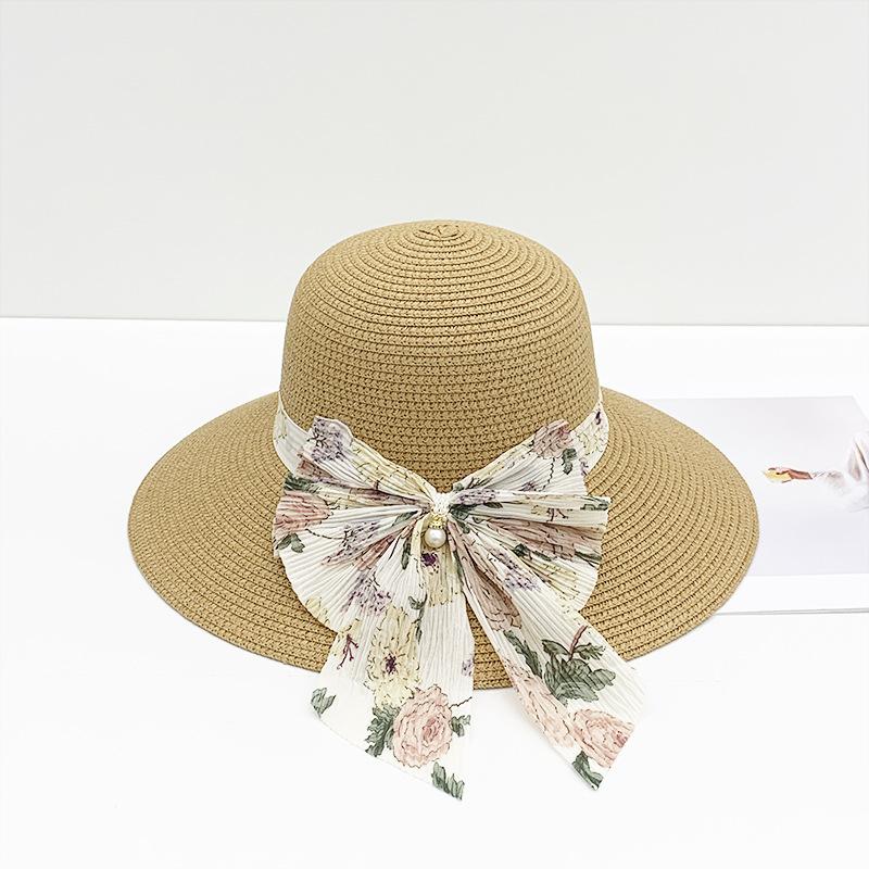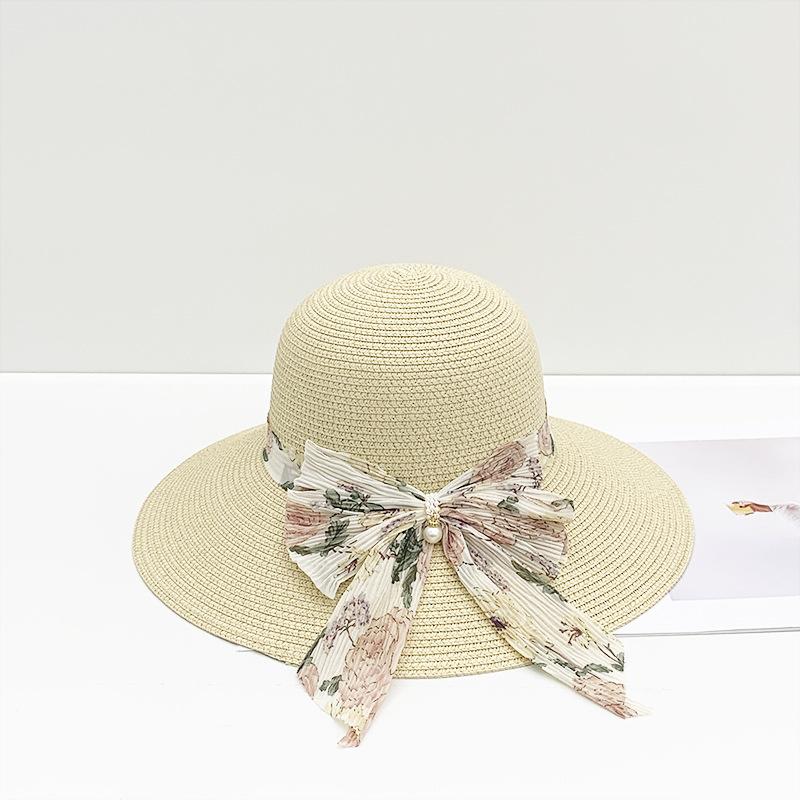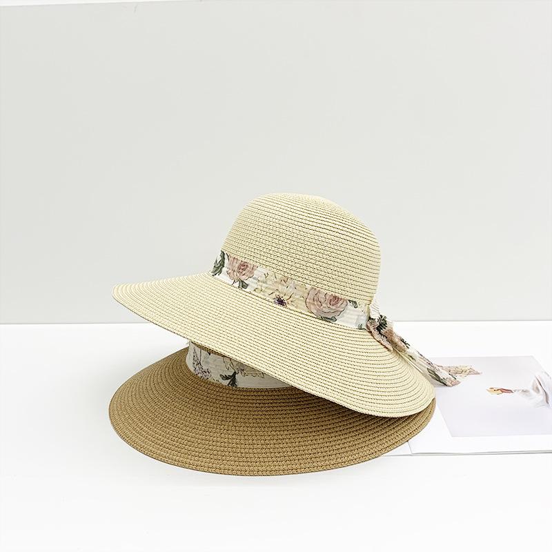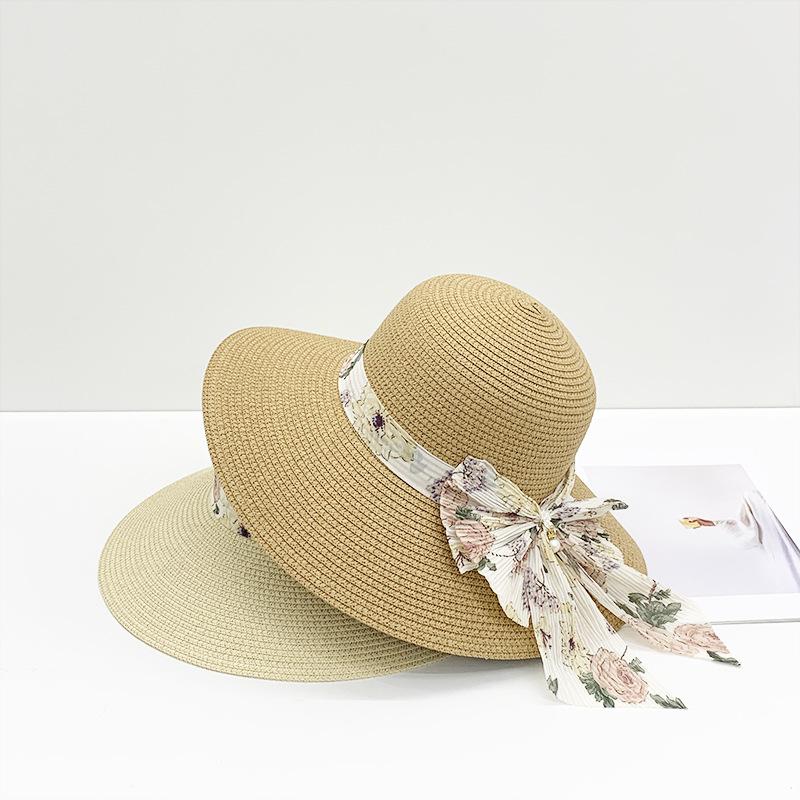Sombrero de paja para mujer verano nuevo lazo cinta sombrero de pescador moda coreana ala ancha protector solar hierba