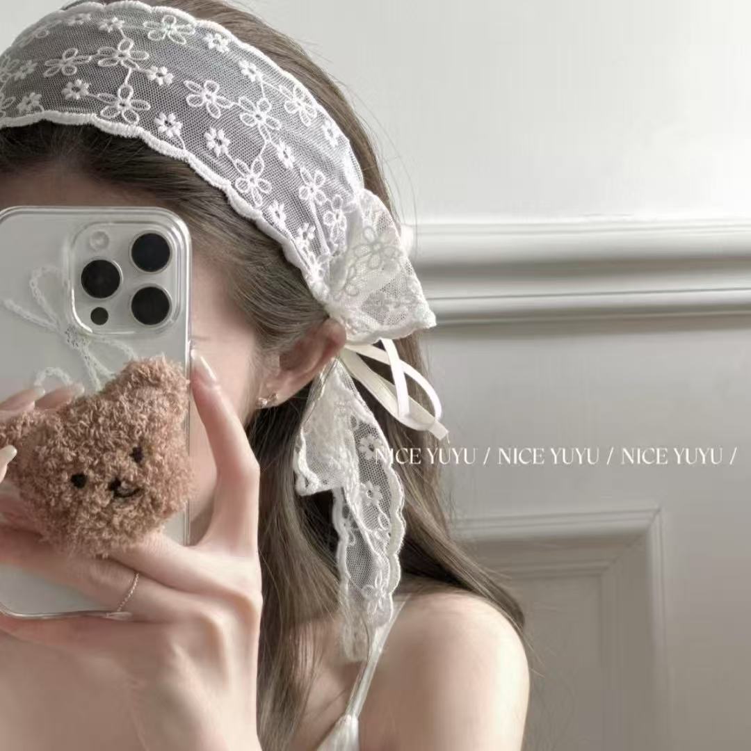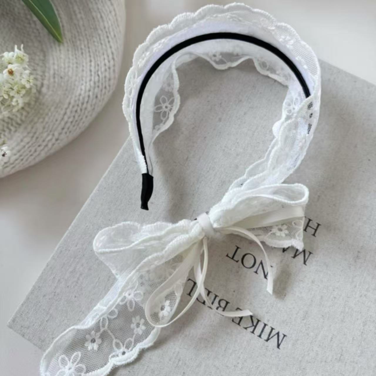 White lace bow ribbon headband, Black lace bow ribbon headband