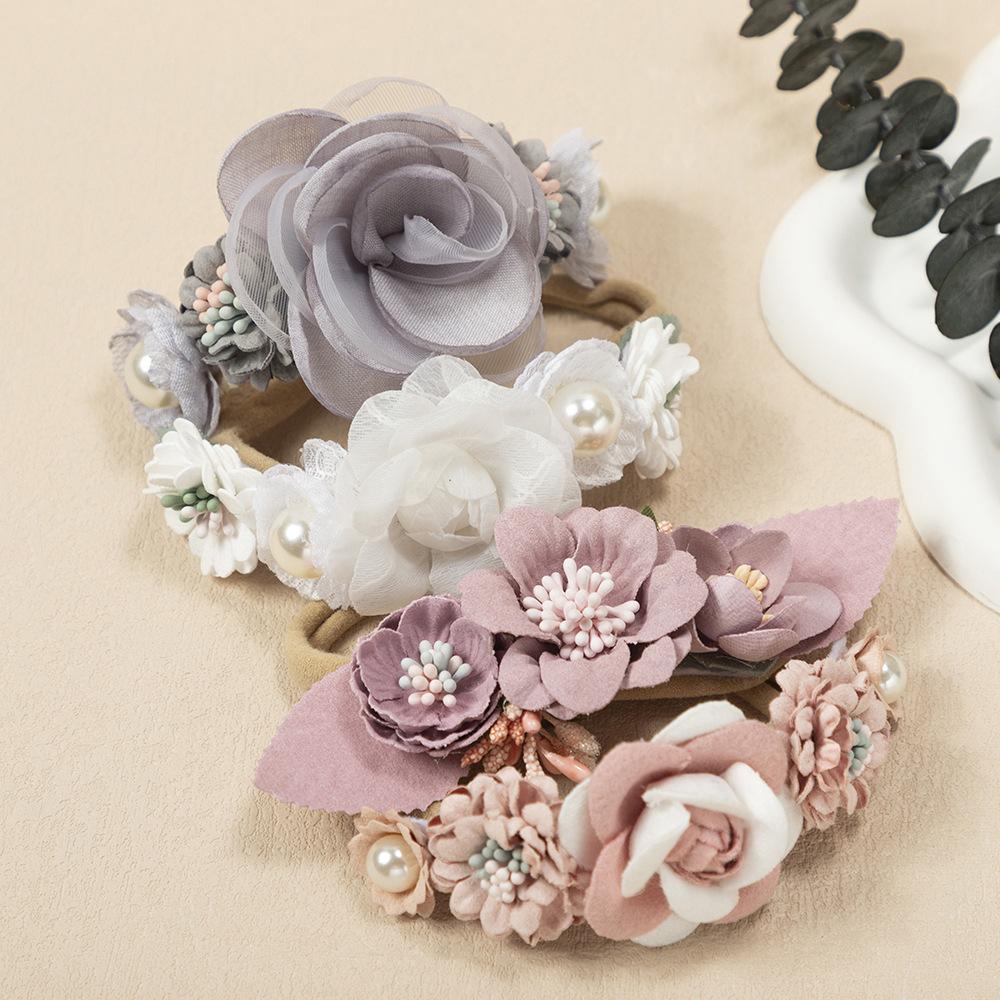 Diadema de nailon para niños de venta caliente transfronteriza Estilo europeo y americano Hecho a mano Simulación Combinación Flor Accesorios para el cabello Flor para bebé Diadema para bebé