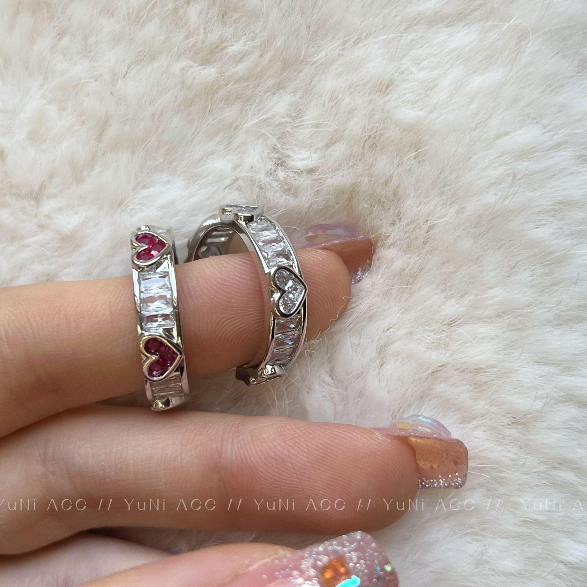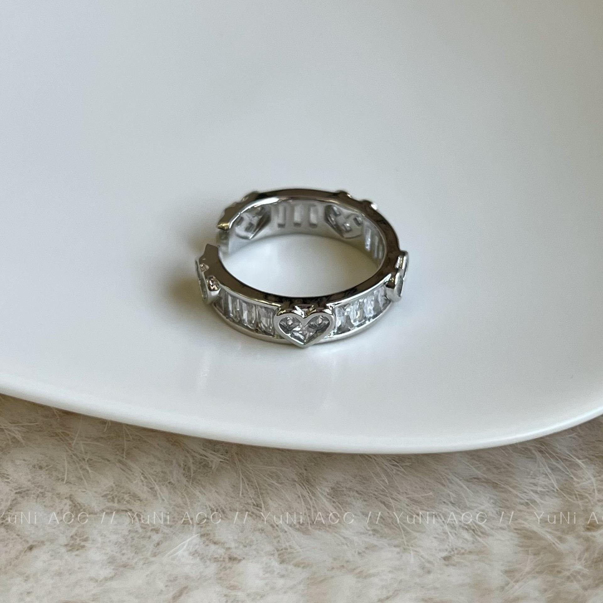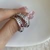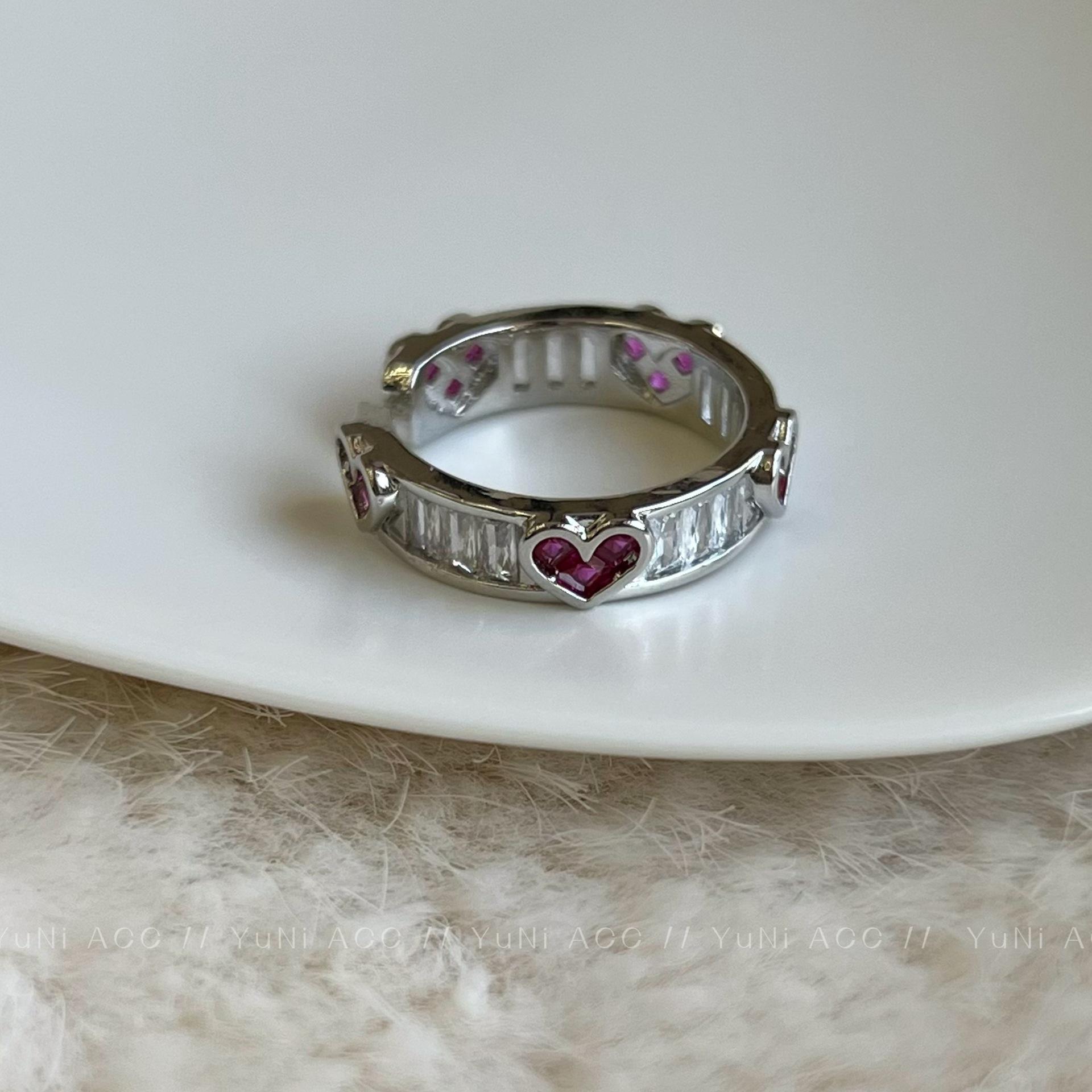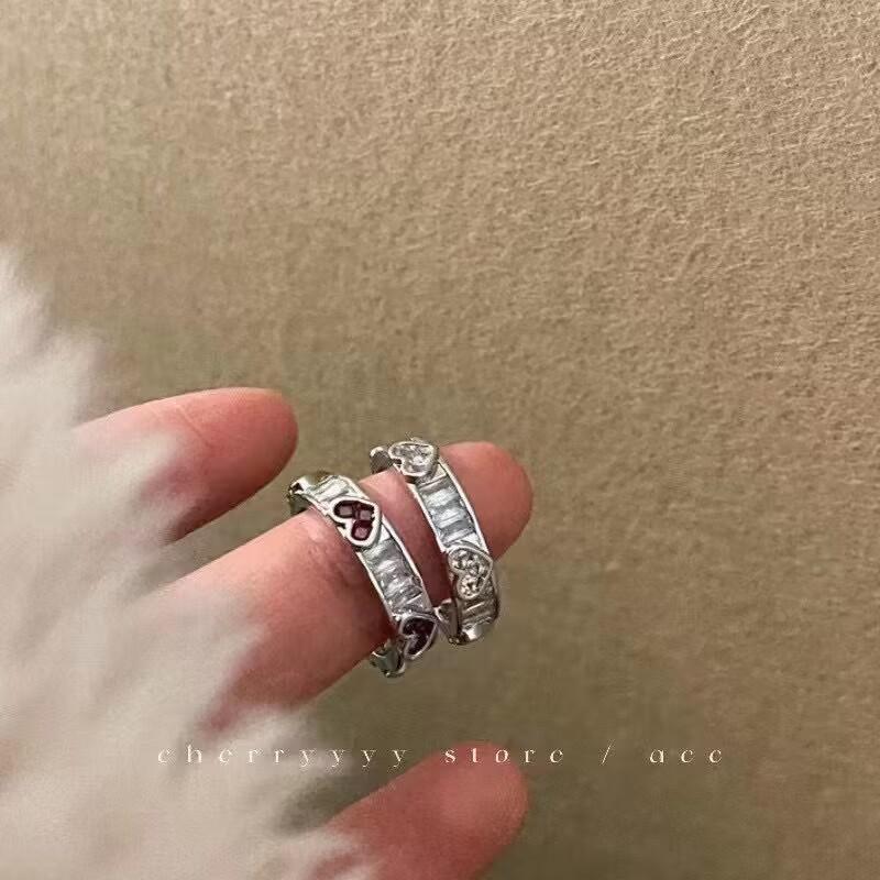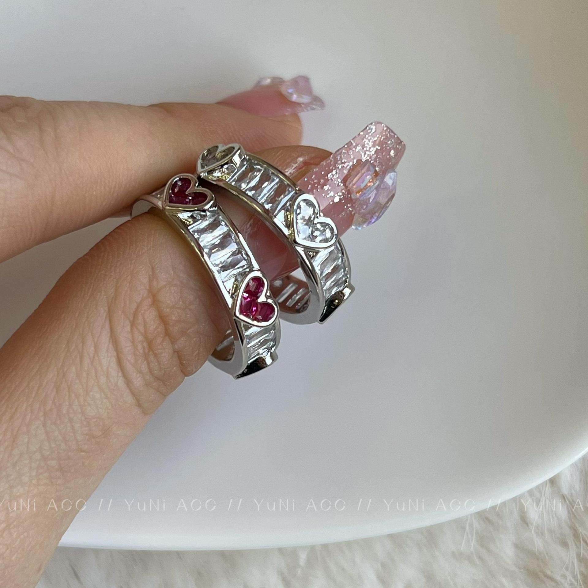 Anillo de Amor Bicolor Nicho de Lujo Ligero Abierto Ajustable Exquisito Anillo de Diamantes en Fila Moda Combinable Anillo de Chica Rosa