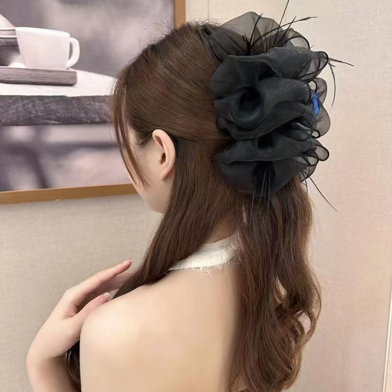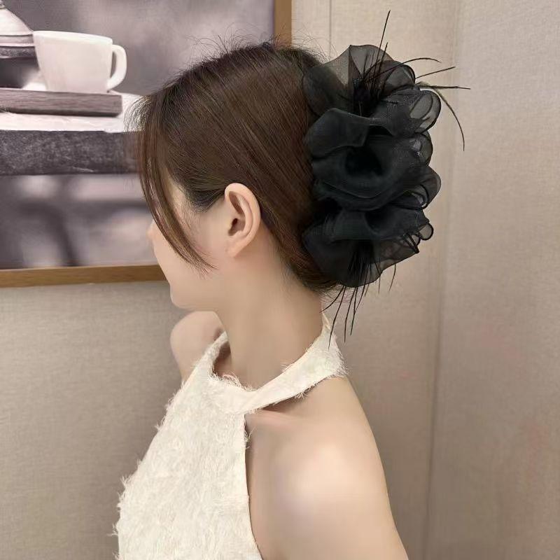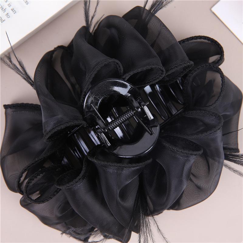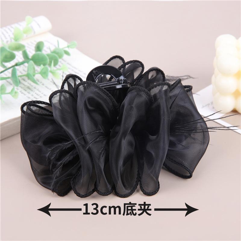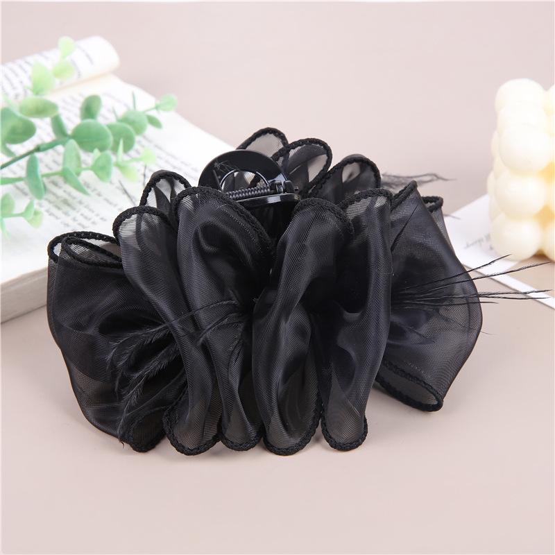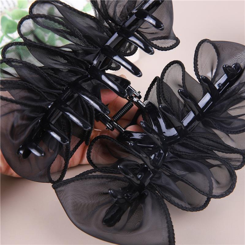Elegante Pinza para el Cabello de Tela Negra Parte Trasera de la Cabeza Red para el Cabello Accesorios para el Cabello Pluma Nube Burbuja Pinza de Agarre Malla de Doble Cara Pinza de Tiburón