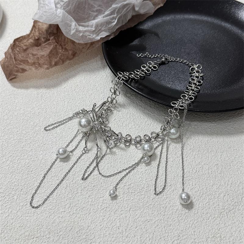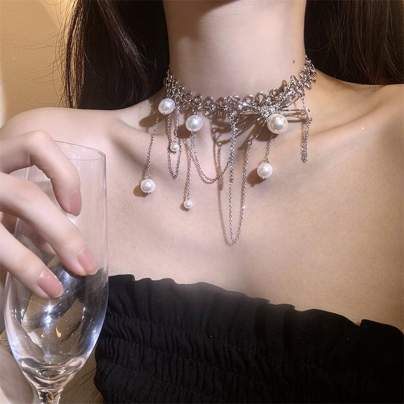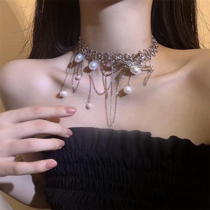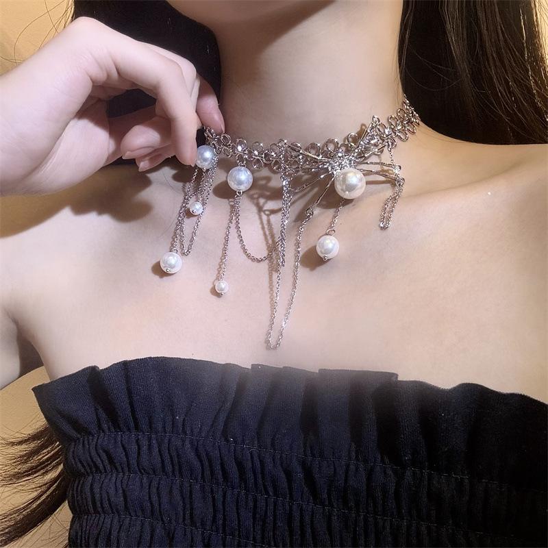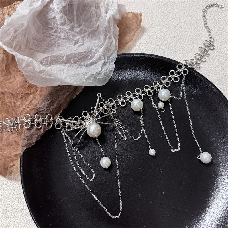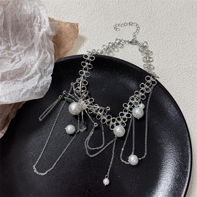 Collar de Perlas con Borla de Araña Collar para Mujer Gargantilla Nicho de Lujo Ligero Cadena Clavicular Accesorios 2024 Nuevo Estilo
