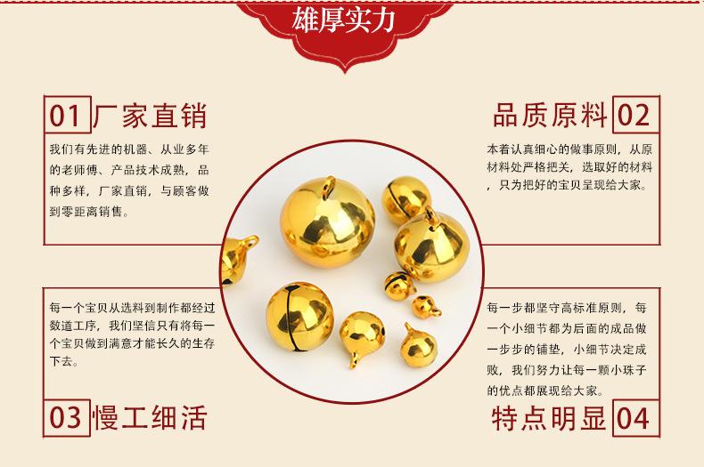 Campana pequeña de latón dorado de una sola palabra, campana de Navidad, galvanoplastia al vacío para preservar el color, metal, campana para mascotas, fabricante, venta al por mayor