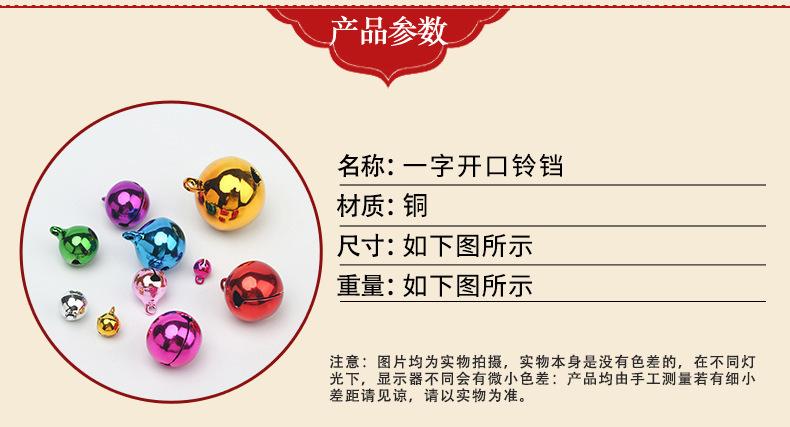 Campana de cobre coloreado de apertura de una palabra accesorios de joyería DIY colgantes pequeños campanillas de viento campanas de colores más campanas esmeriladas de Navidad