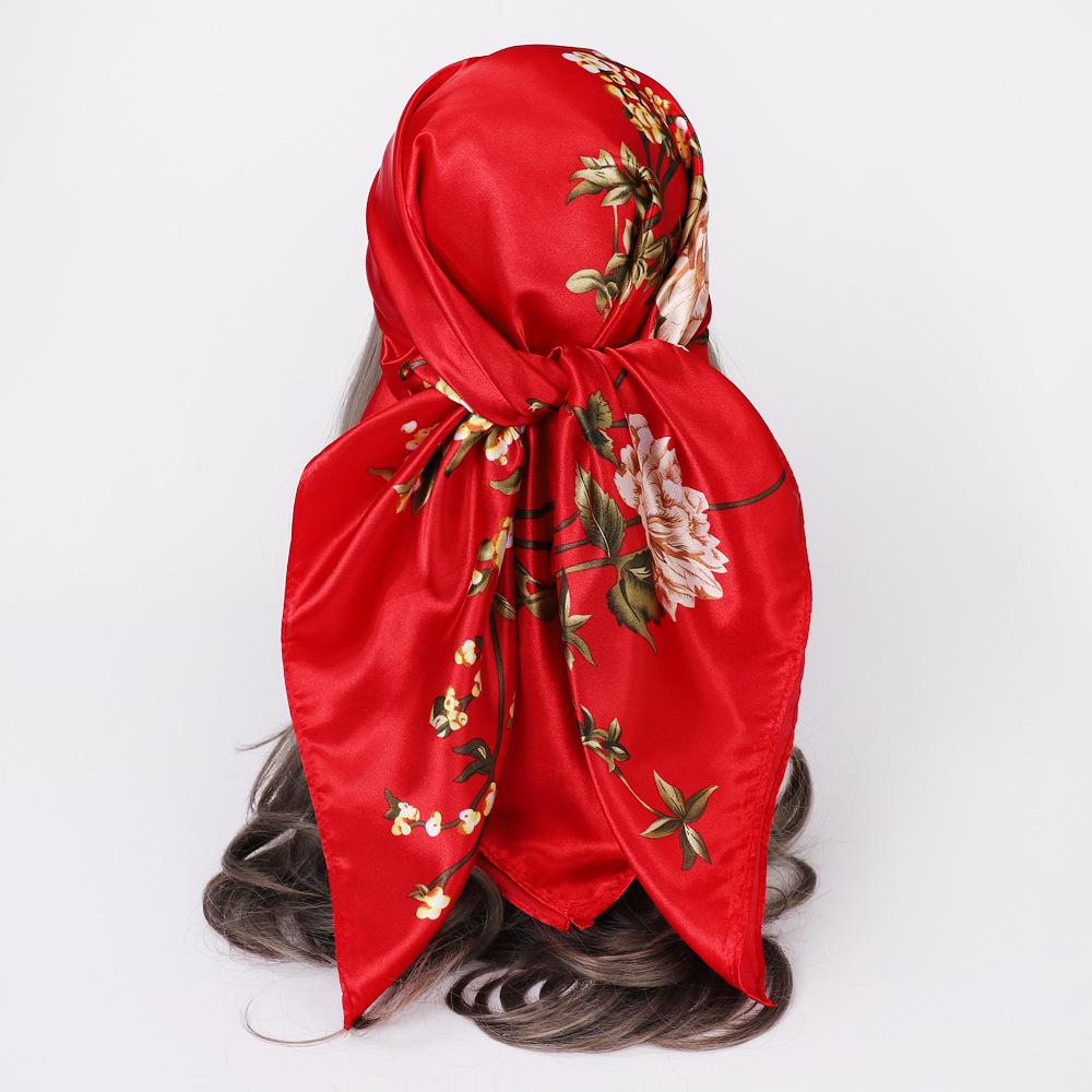 Bufanda Floral de Seda de Comercio Exterior 90cm Bufanda de Seda Bufanda Cuadrada Europea y Americana de Alta Gama Chal Transfronterizo Bufanda Turbante de Satén