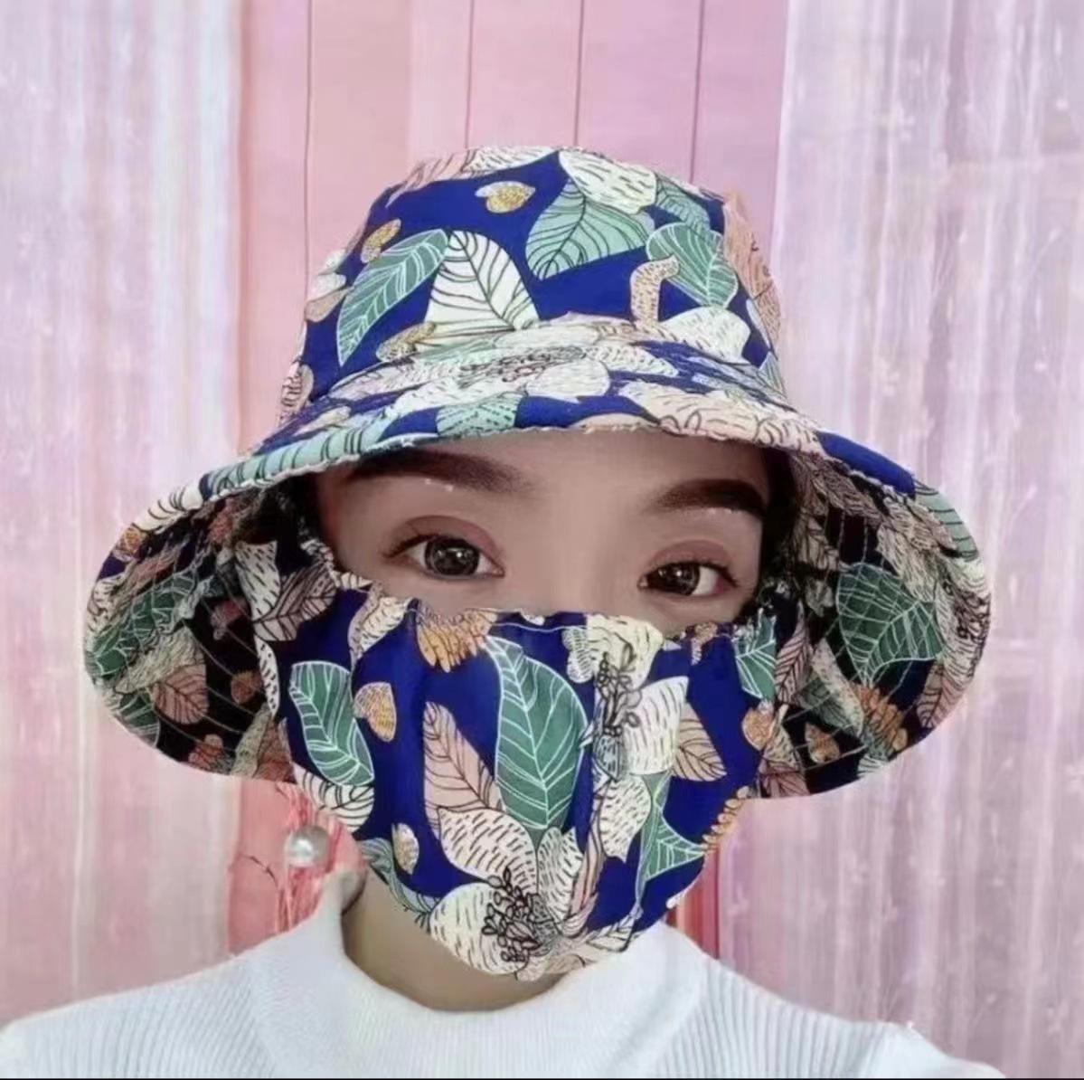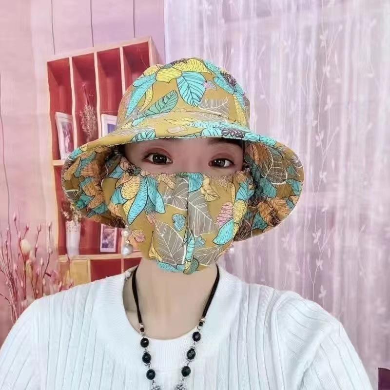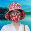 Sombrero Floral para Recolección de Té Verano Exterior Protección Solar UV Sombrero con Visera para Sol Máscara Transpirable Protección Facial Sombrero de Pescador Integrado