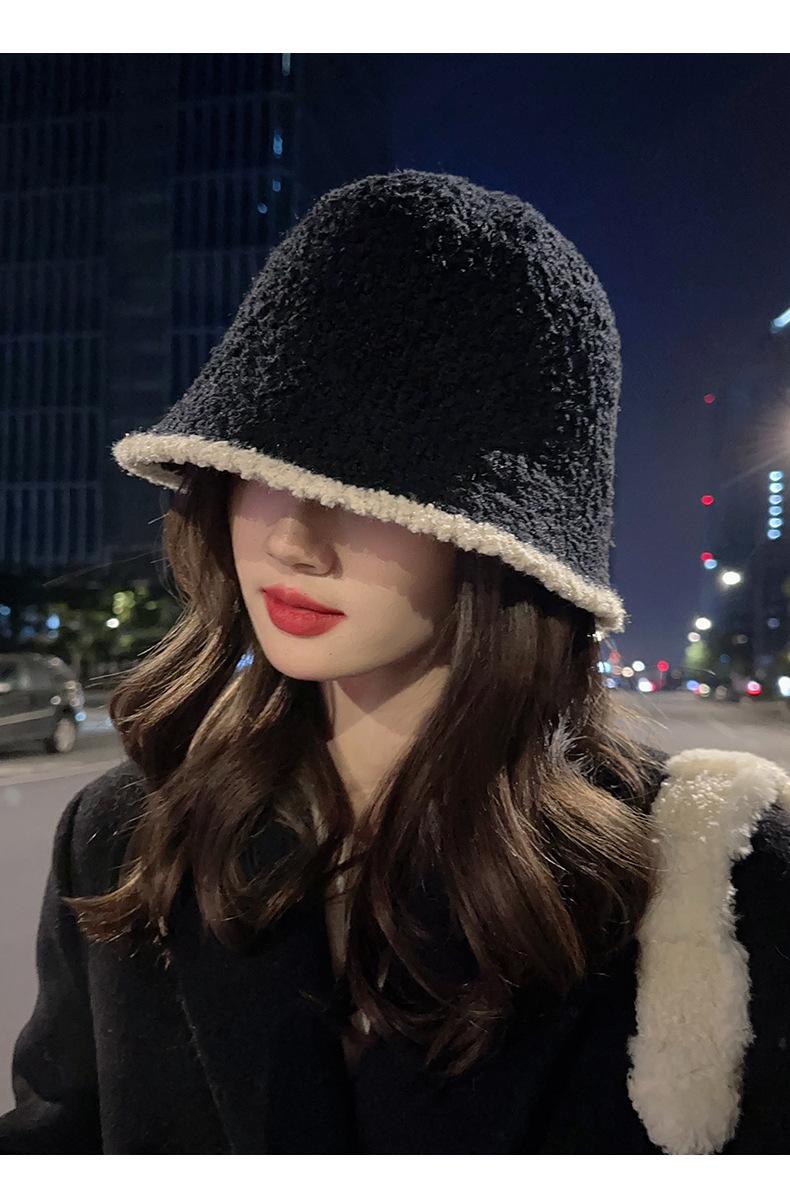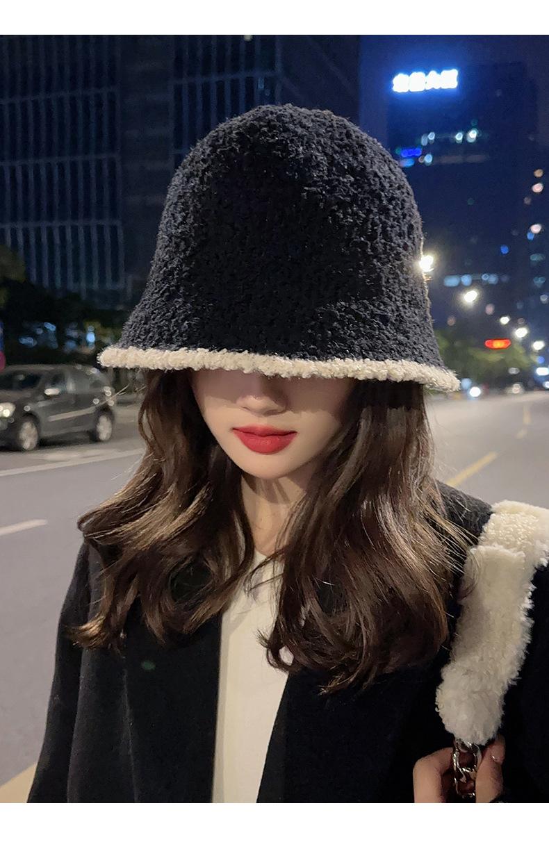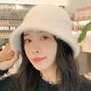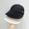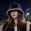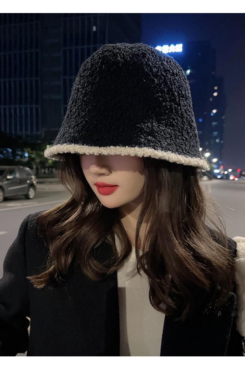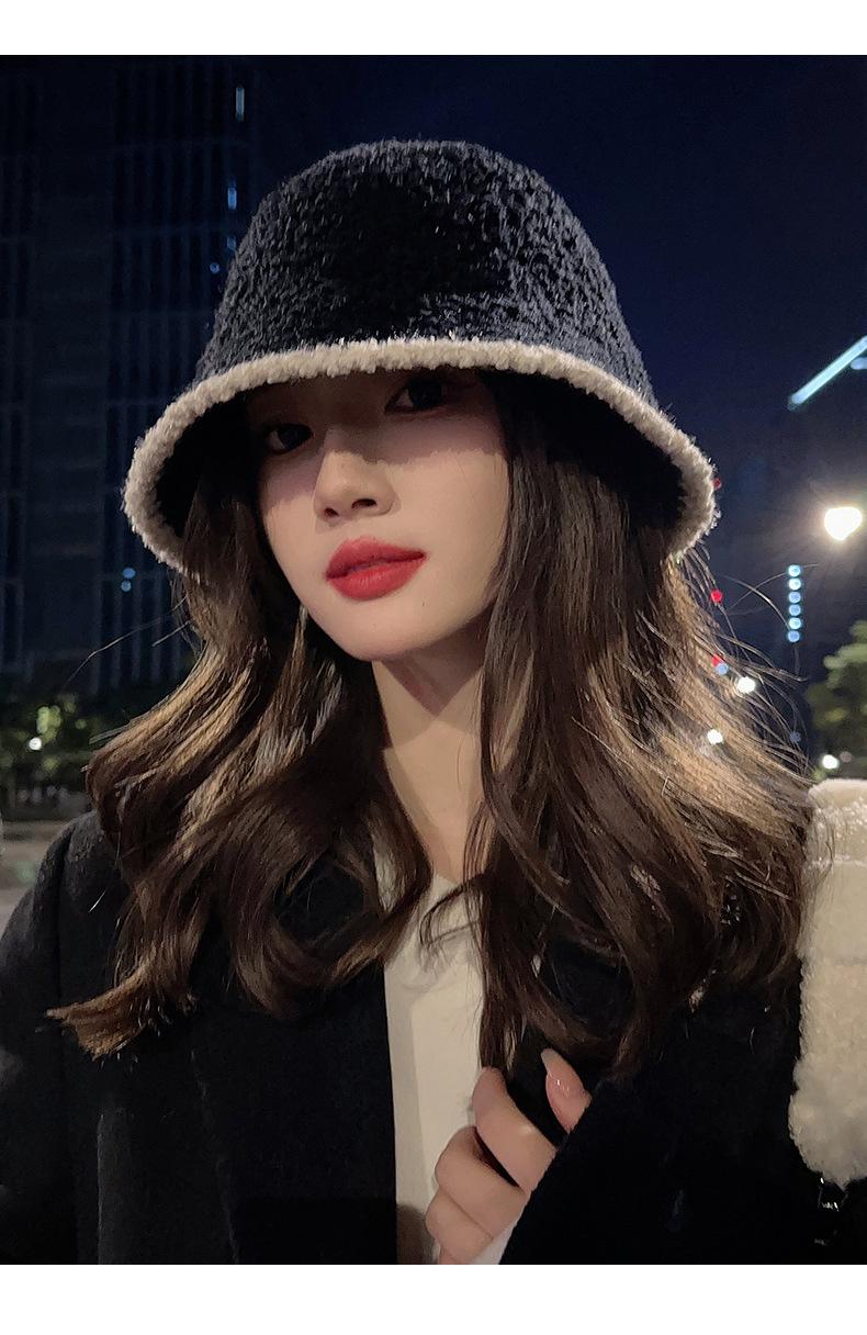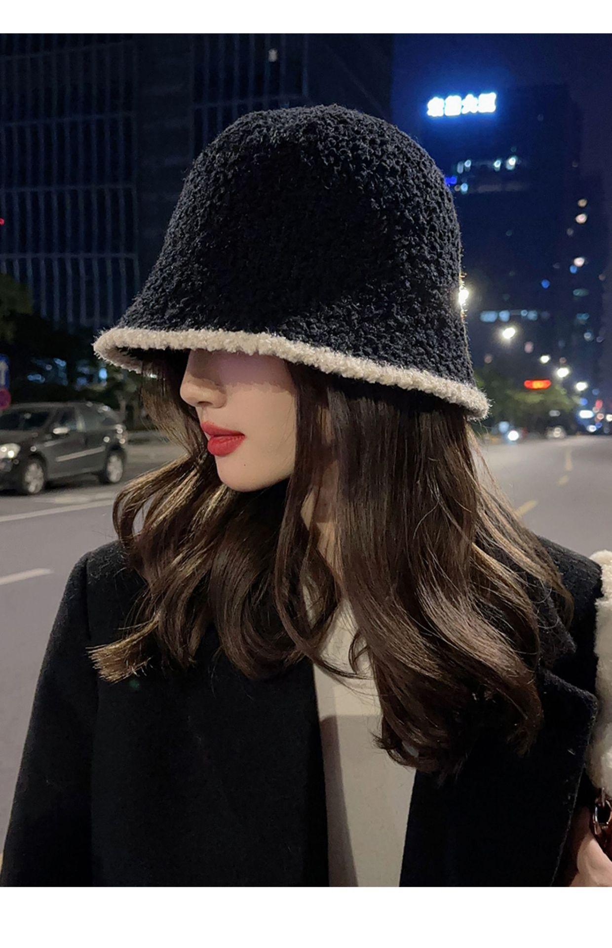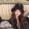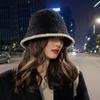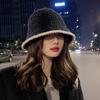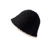 Sombrero de pescador negro para mujer, circunferencia de cabeza grande, otoño, sombrero de cubo liso, otoño e invierno, sencillo, hace que la cara parezca pequeña, tejido