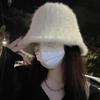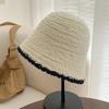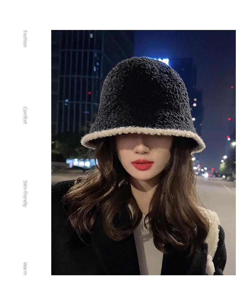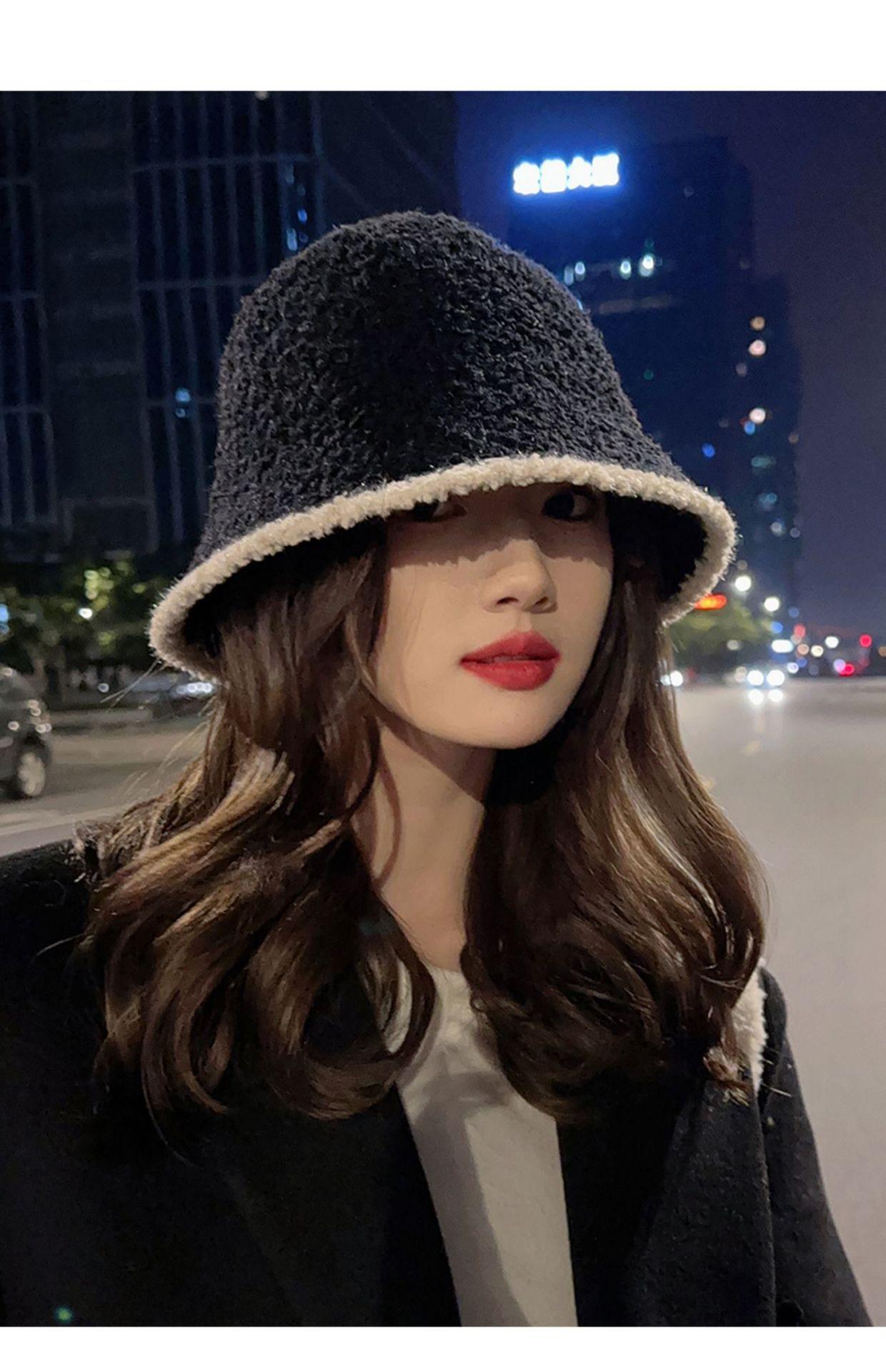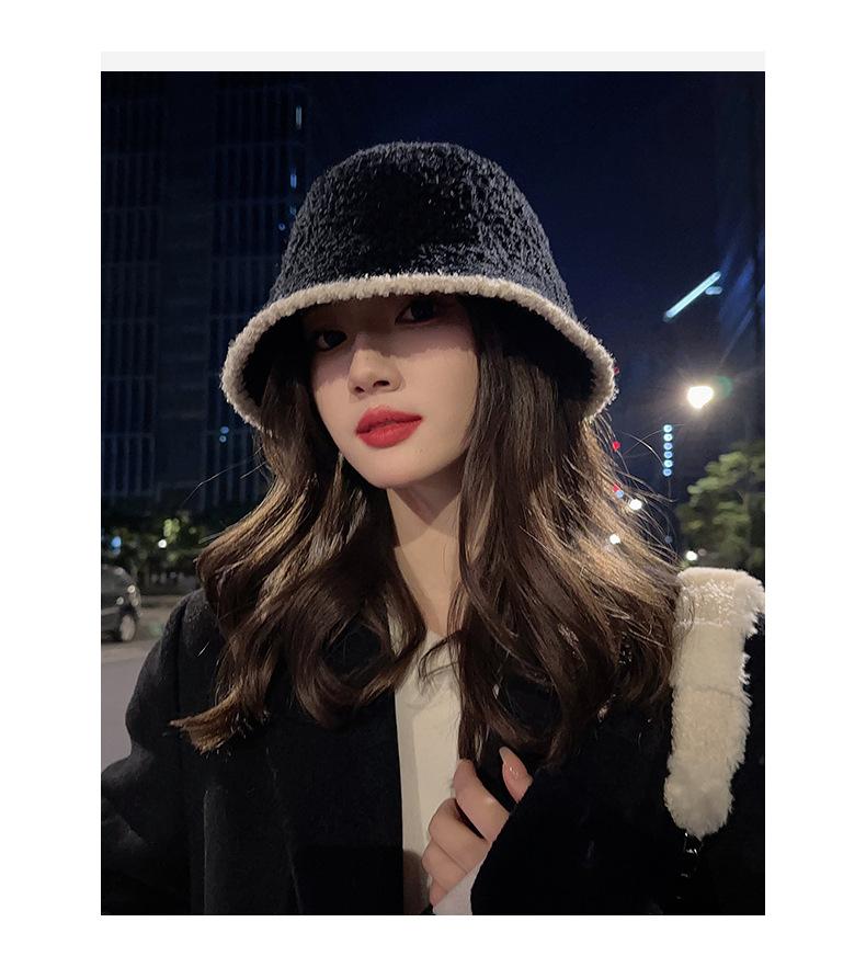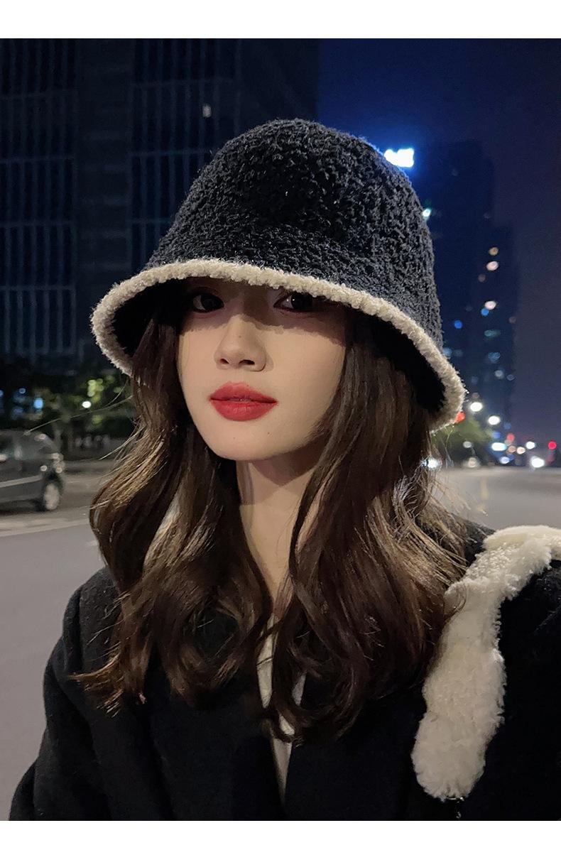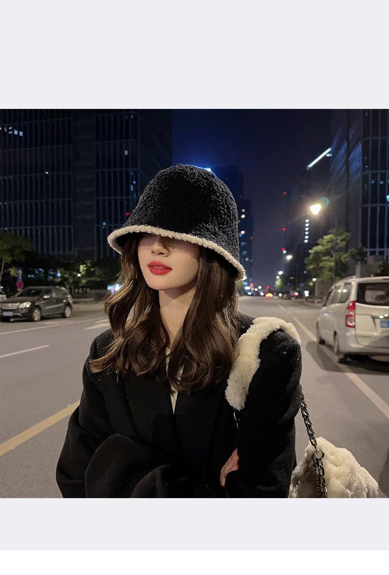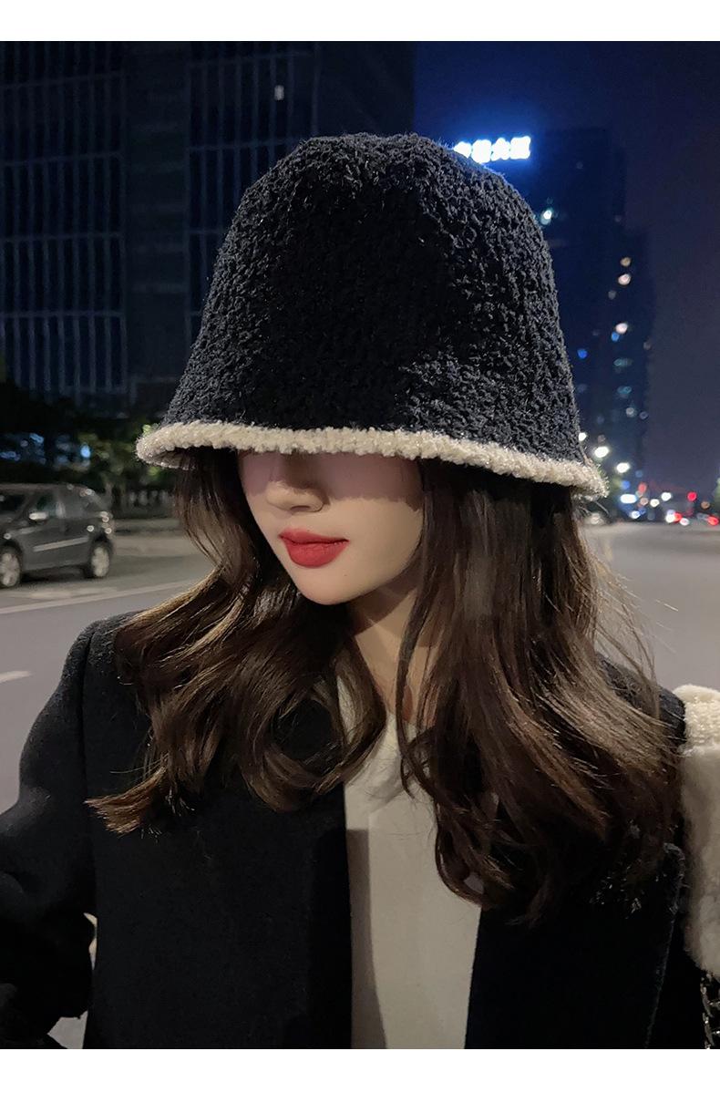 Sombrero de pescador negro para mujer, circunferencia de cabeza grande, otoño, sombrero de cubo liso, otoño e invierno, sencillo, hace que la cara parezca pequeña, tejido