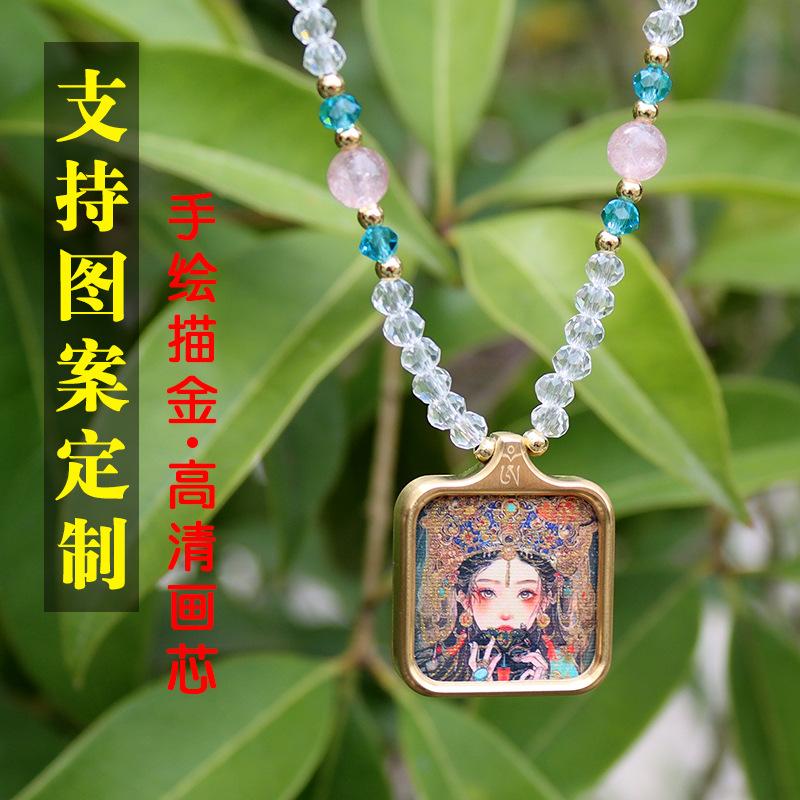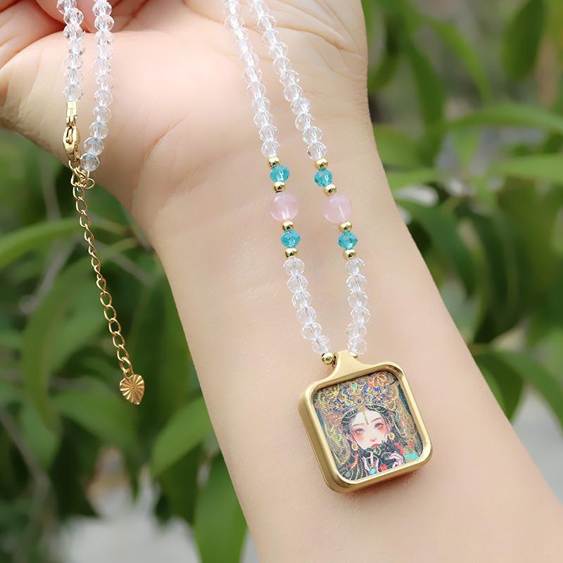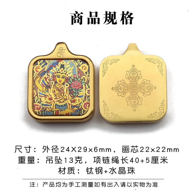 Titanium steel 2x2 thangka pendant zakiram past and present life eight patron saints portable thangka crystal bead necklace