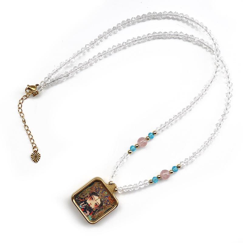 Dashi to 12 hand-painted gold (titanium steel 2x2) + crystal bead necklace