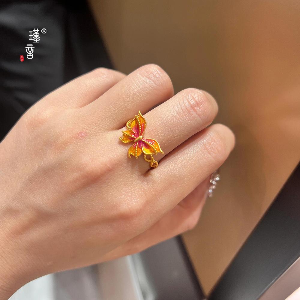 2025 Nuevo Anillo de Mariposa de Color Degradado Femenino Hada Retro de Alta Gama Versátil Diseño Nicho Anillo Anillo