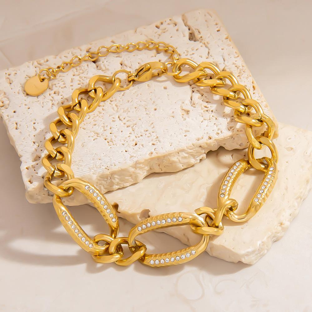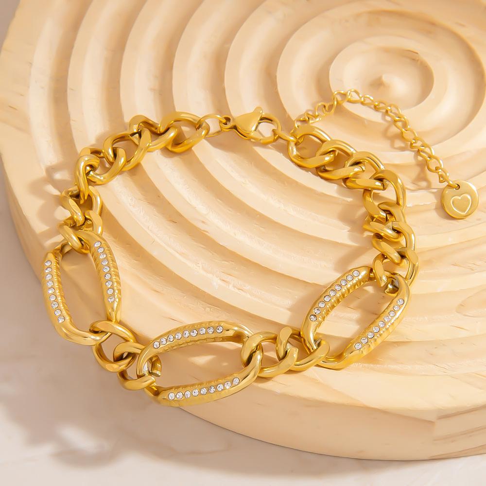 Pulsera de Acero Inoxidable Transfronteriza Moda Cadena Gruesa Cadena Cubana para Mujer Estilo Europeo y Americano Lujo Ligero Acero de Titanio Adornos de Mano con Diamantes