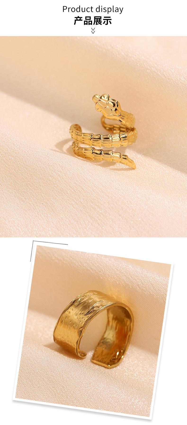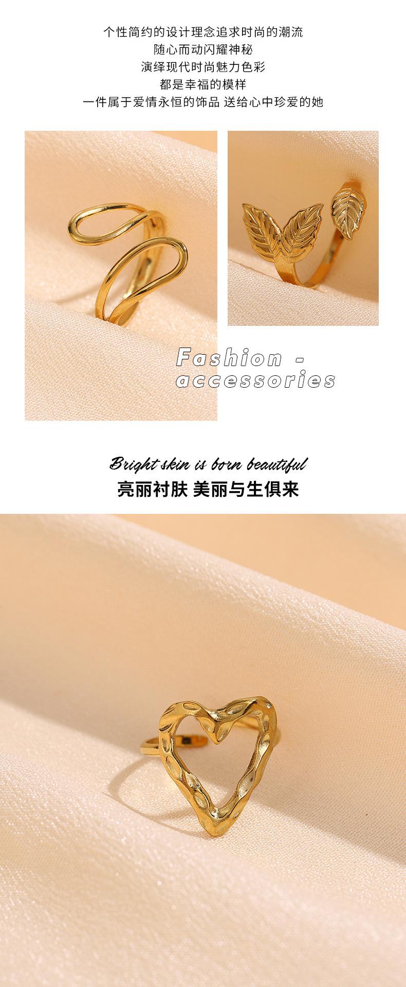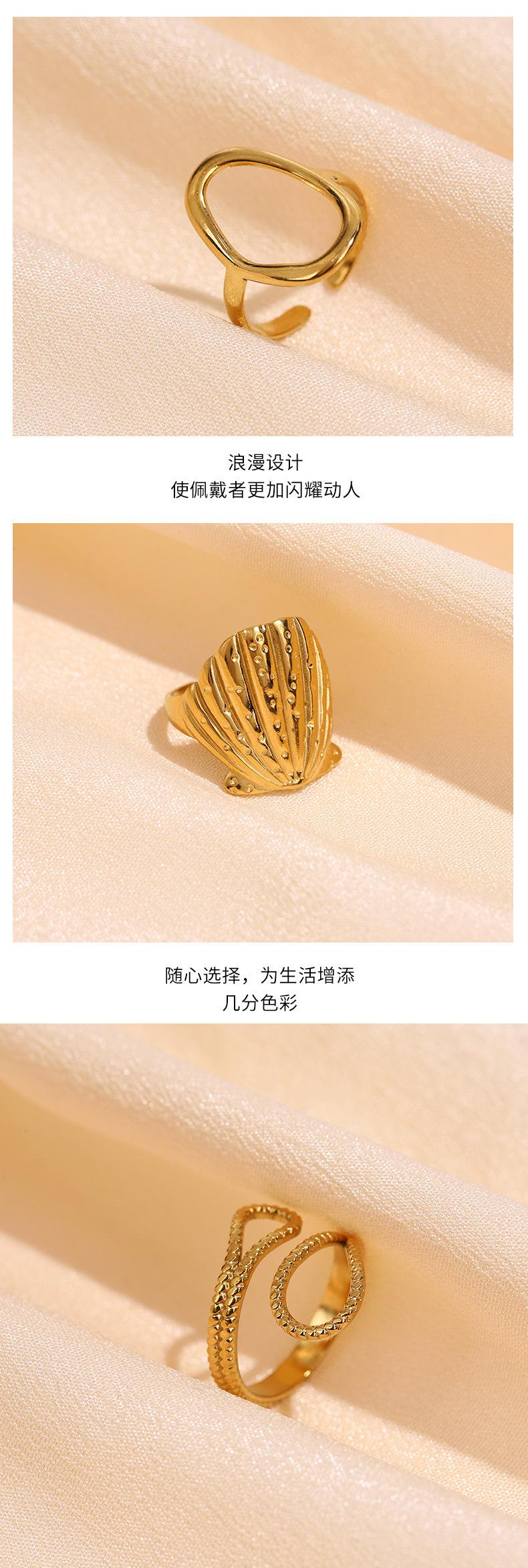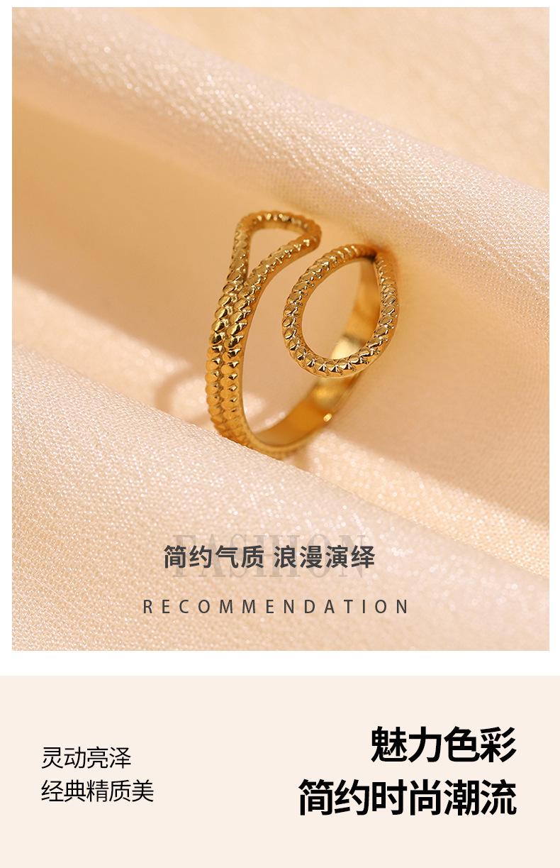Anillo Abierto de Acero Inoxidable con Líneas Asimétricas de Estilo Cool Ins Transfronterizo con Forma Especial de Nicho y Ajustable