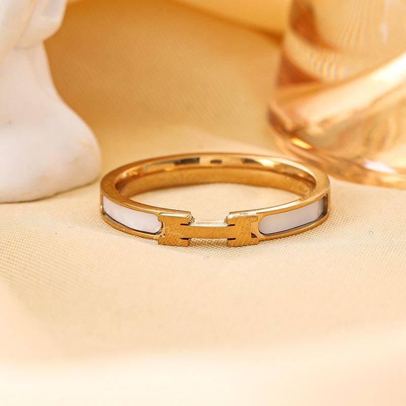Anillo Minimalista Transfronterizo Europeo y Americano H Blanco de Acero de Titanio para Mujer, Anillo de Estilo Cool para el Dedo Índice, Moderno y Versátil con un Toque de Alta Gama