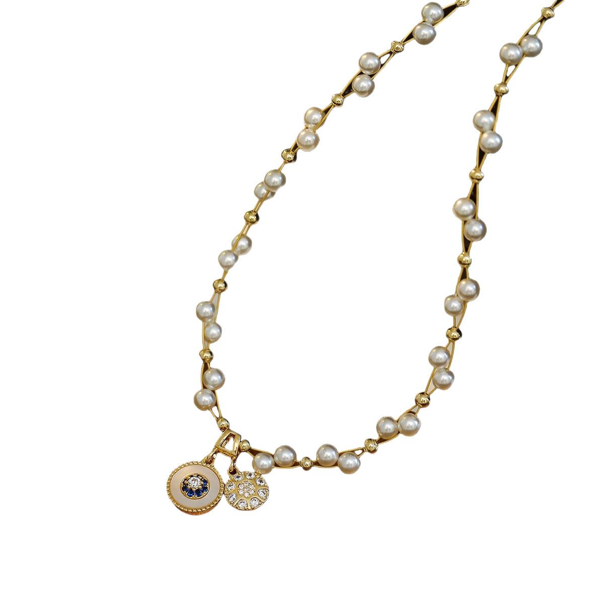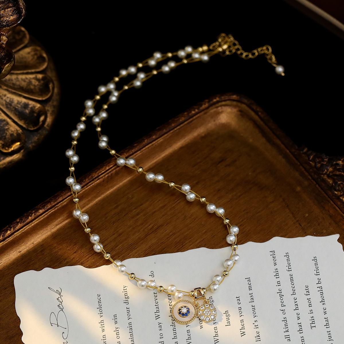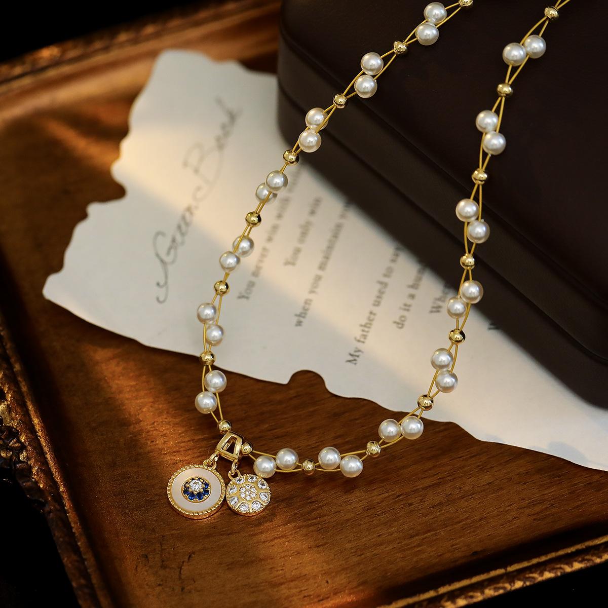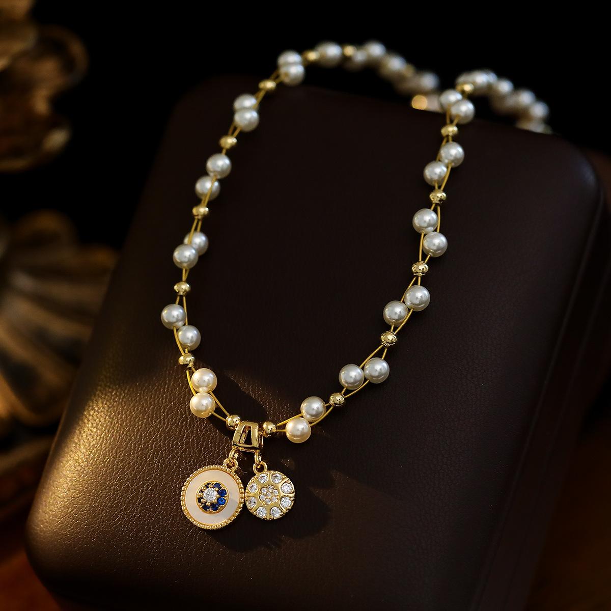 Nuevo Collar de Perlas Colgante de Disco Estrella Moda Lujo Ligero Temperamento Cadena de Clavícula de Alta Gama Collar de Aliento de Bebé para Mujer