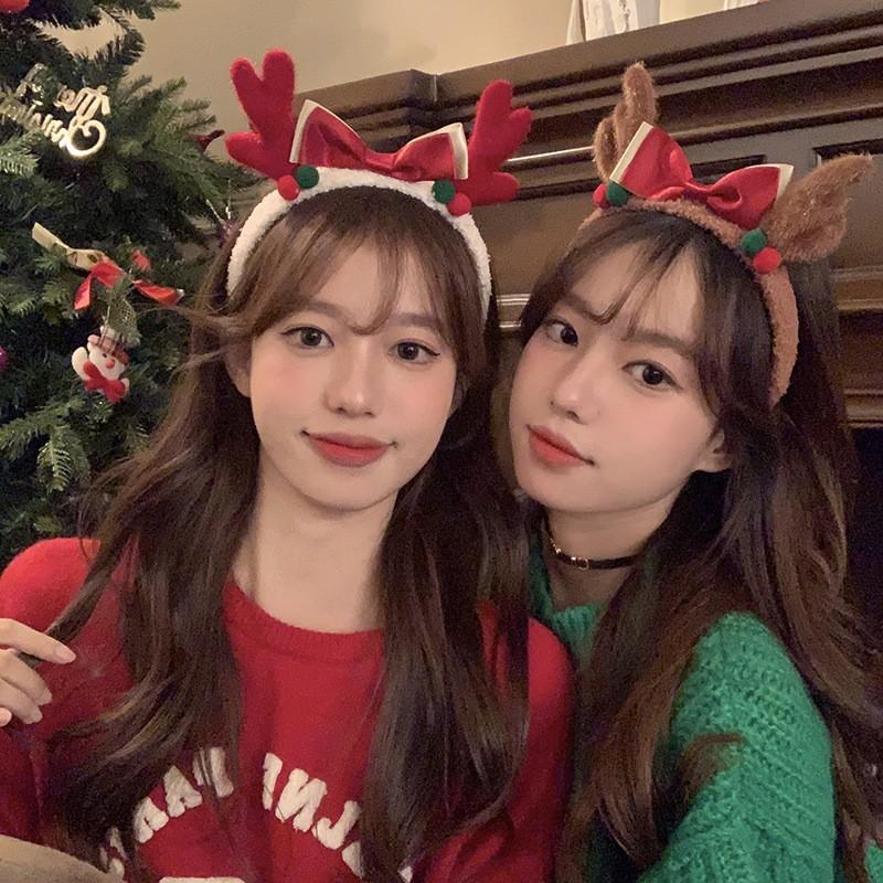 Diadema de astas navideñas diadema de ambiente lazo lindo accesorios para el cabello versátiles tocado festivo europeo y americano