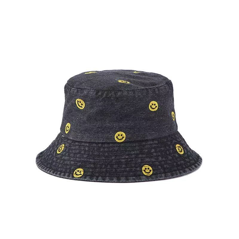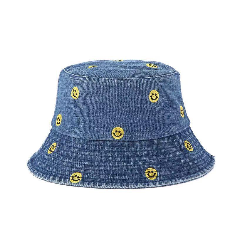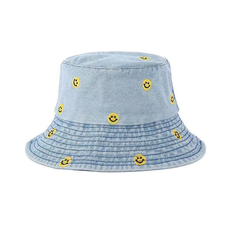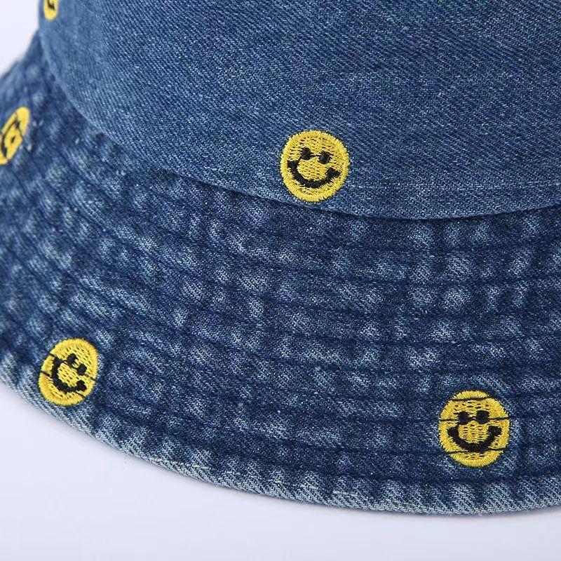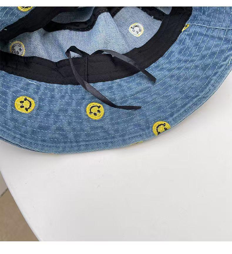 Chic lindo de estilo japonés sombrero de pescador de mezclilla con cara sonriente para mujer verano combina con todo estudiante viaje sombrero para el sol marea