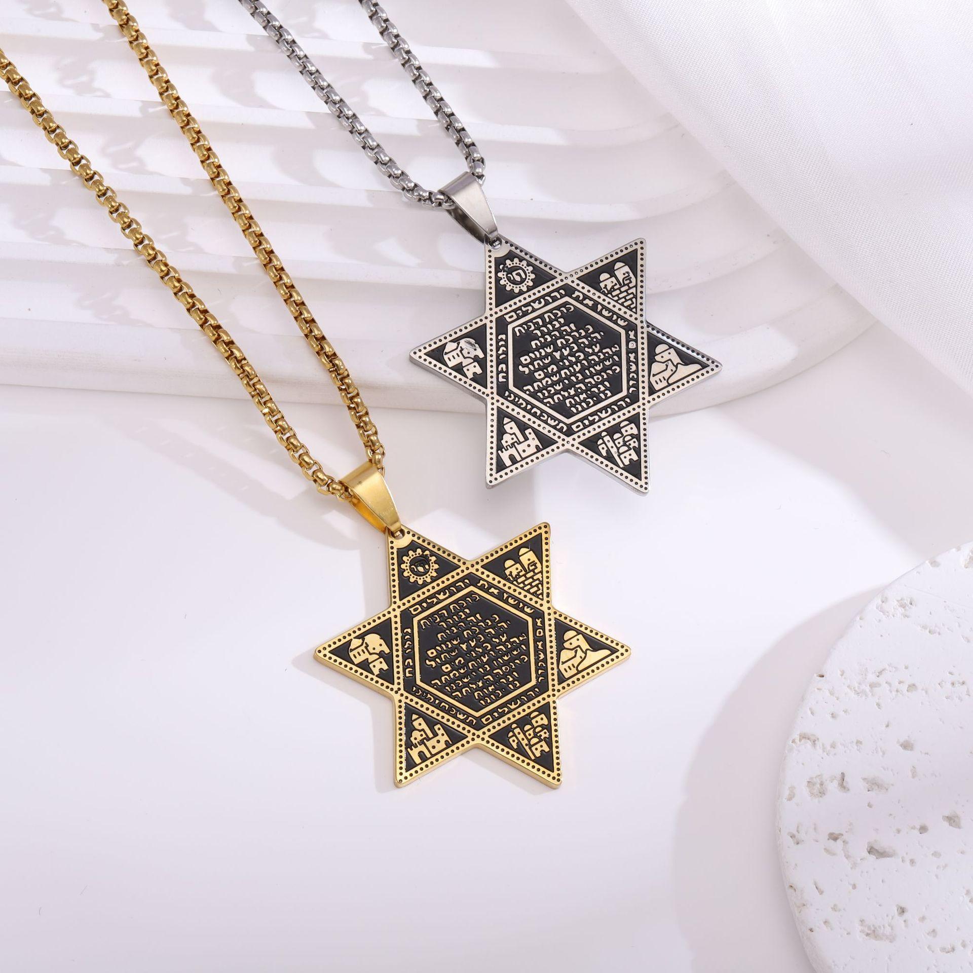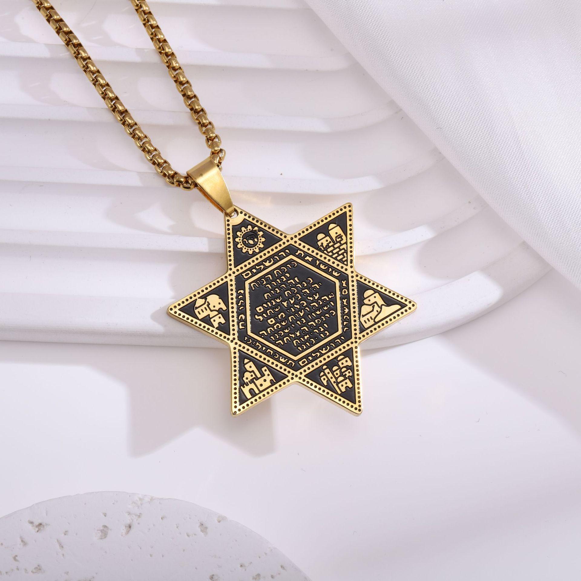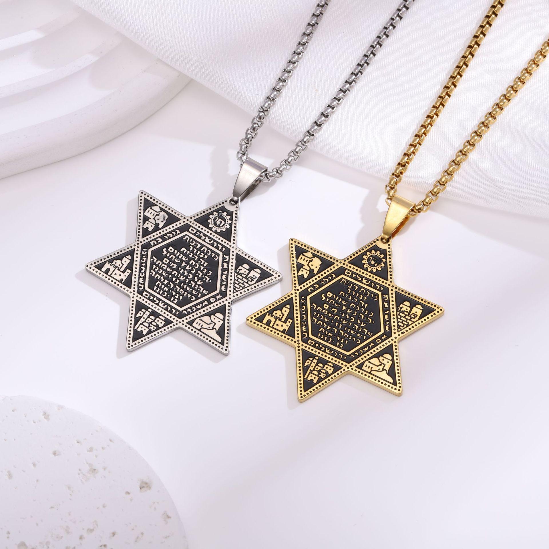 Nuevo Collar con Colgante de Estrella de David Judía de Seis Puntas Transfronterizo Acero Inoxidable Estrella de David Collar Joyería para Hombre