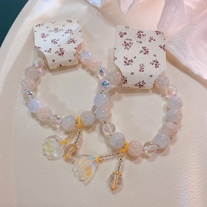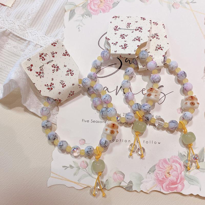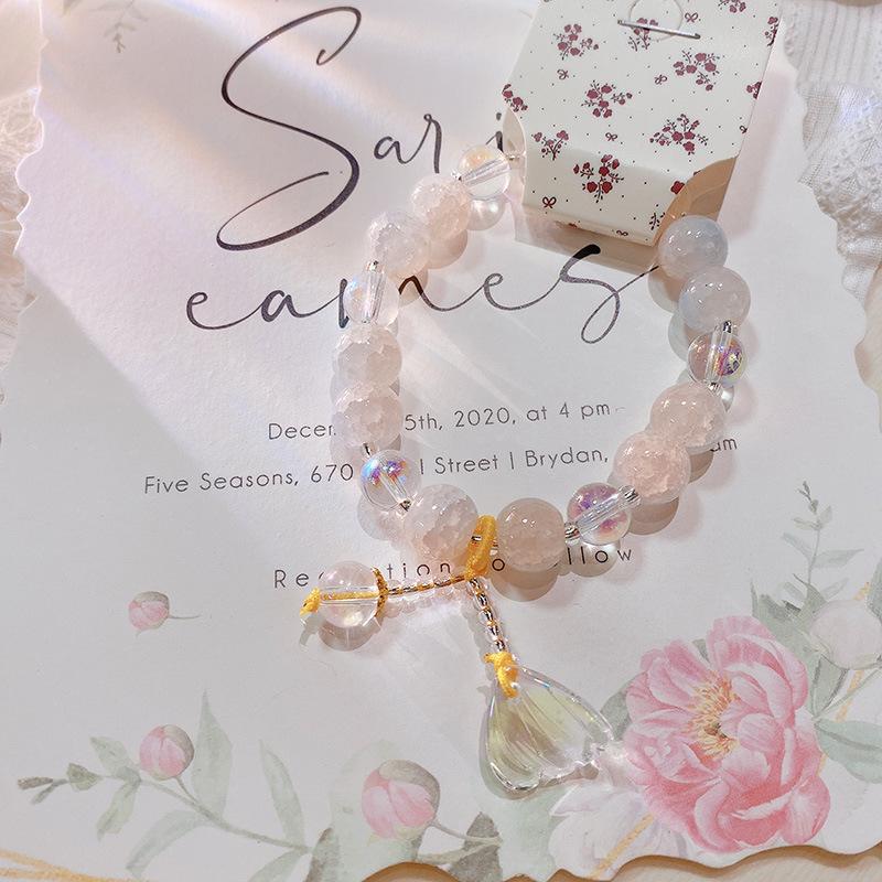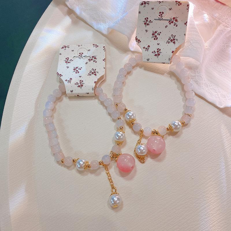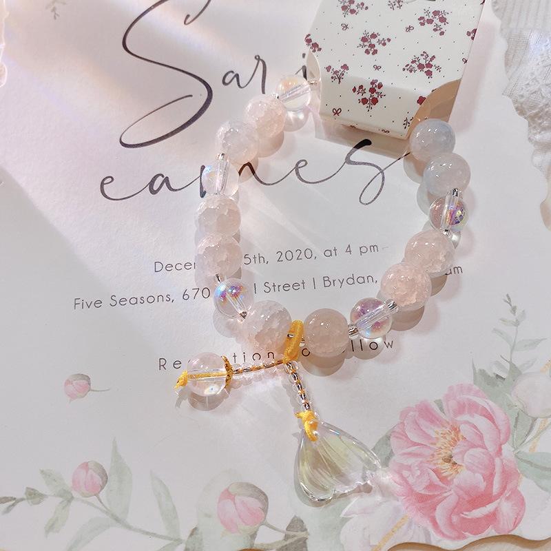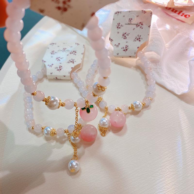 Pulsera con anillo de memoria de cuentas de mijo transparente de hielo fresco 228, pulsera de flor de melocotón Ruyi, pulsera de niña con cuentas chinas, joyería de mano |