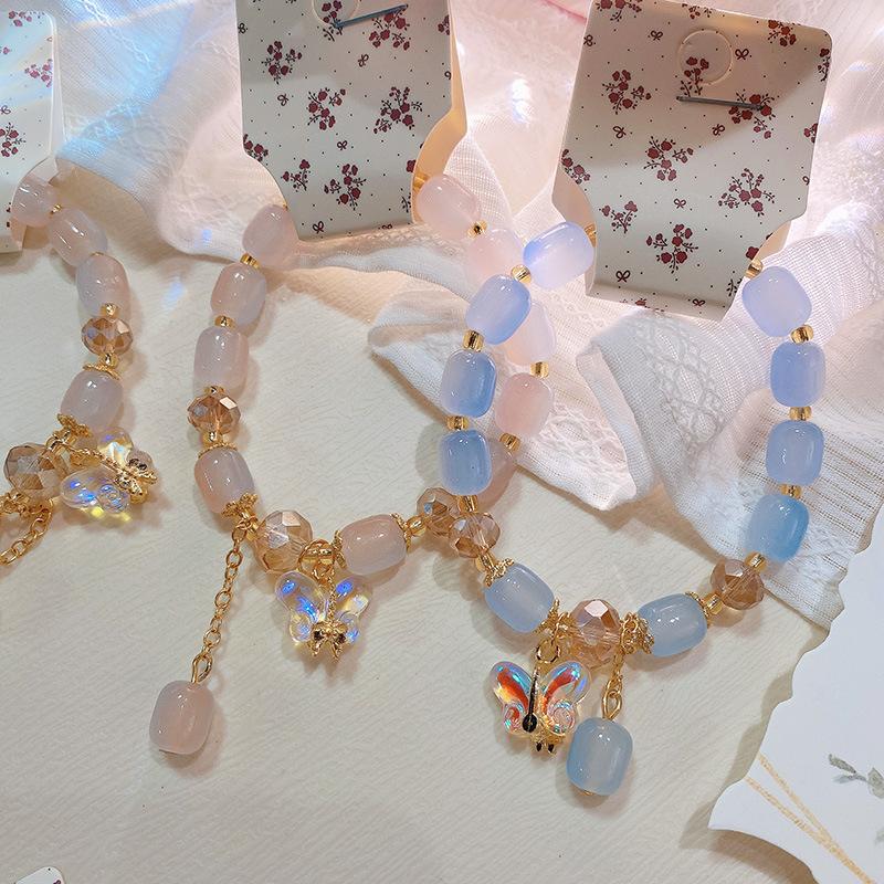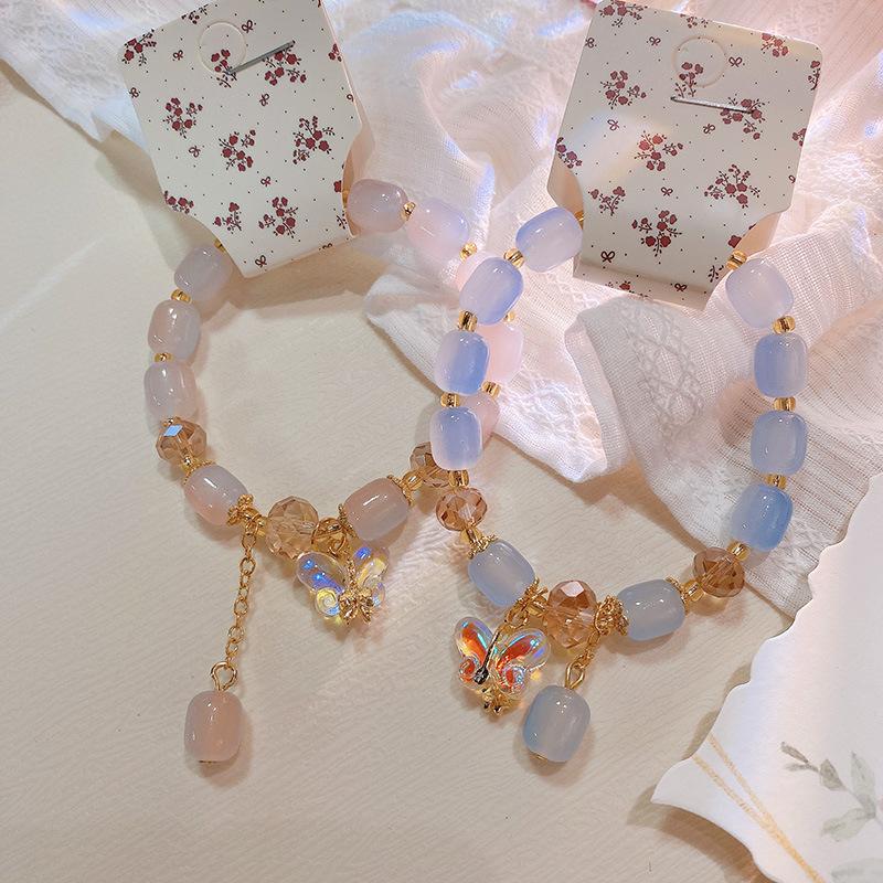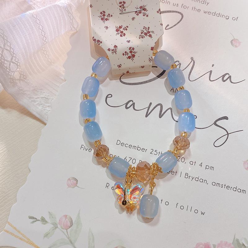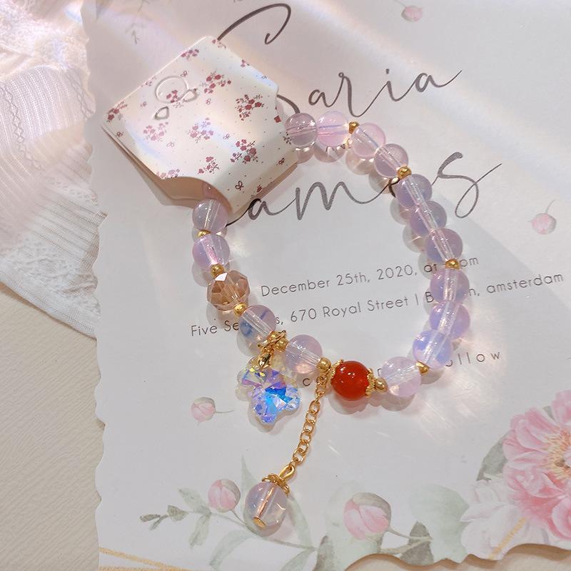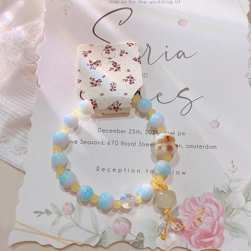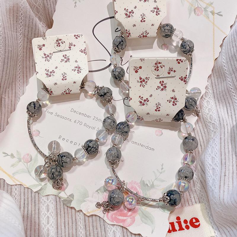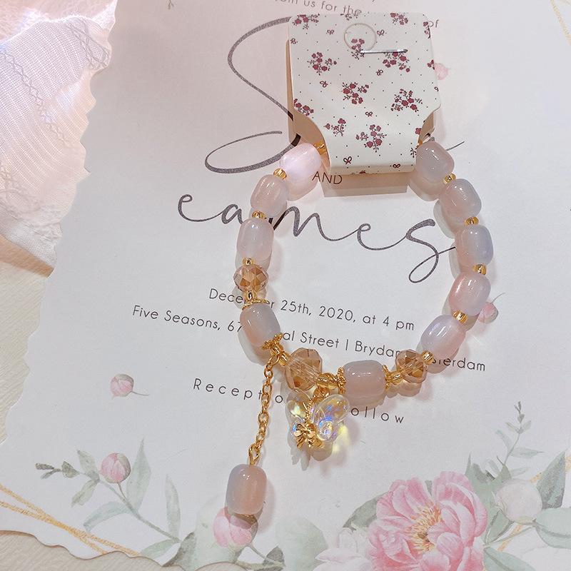 Pulsera con anillo de memoria de cuentas de mijo transparente de hielo fresco 228, pulsera de flor de melocotón Ruyi, pulsera de niña con cuentas chinas, joyería de mano |