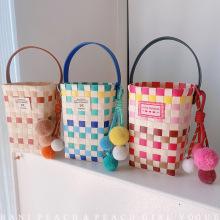 Bolso de mano tipo cubo con cordón tejido estilo dopamina HD226A12, estilo nicho de moda |