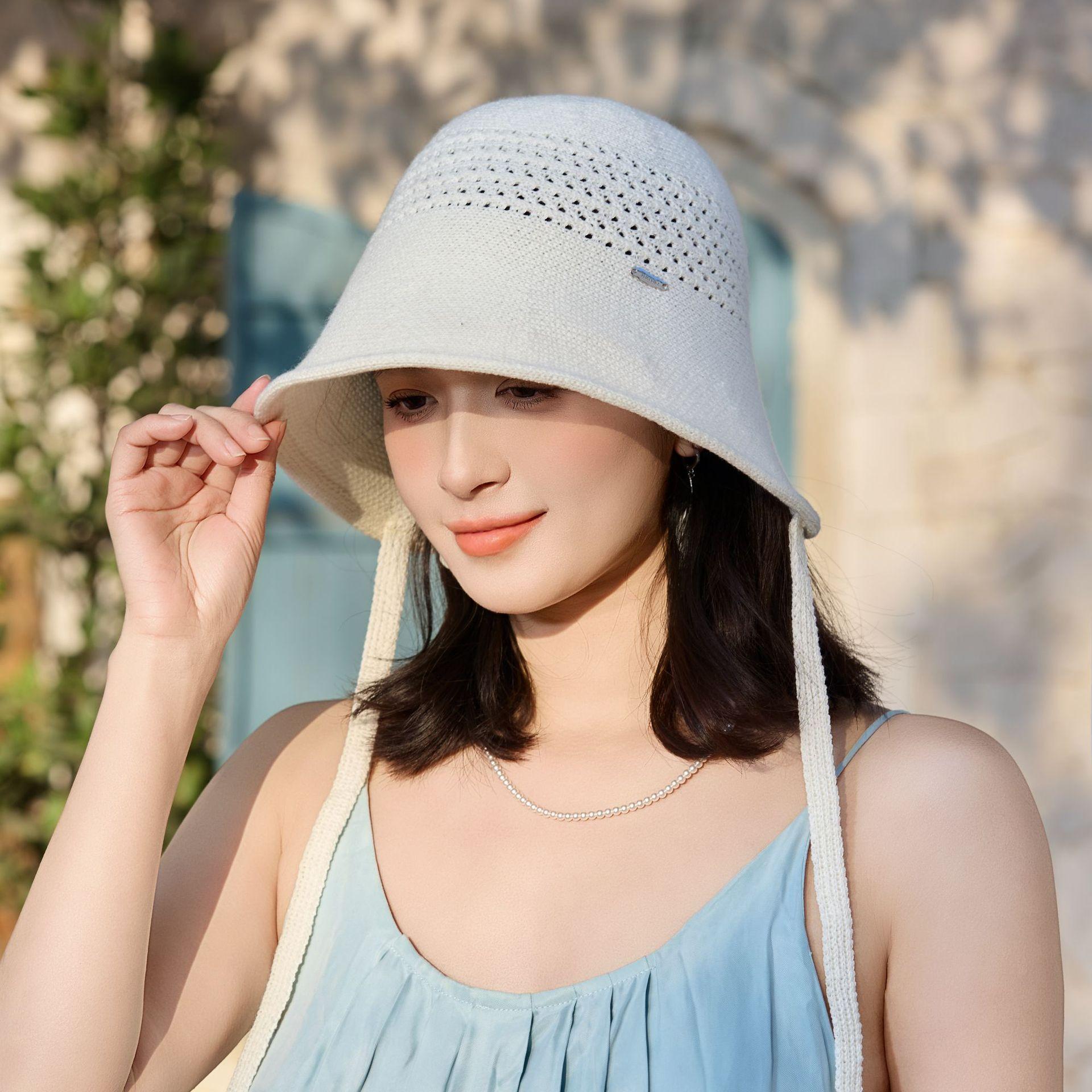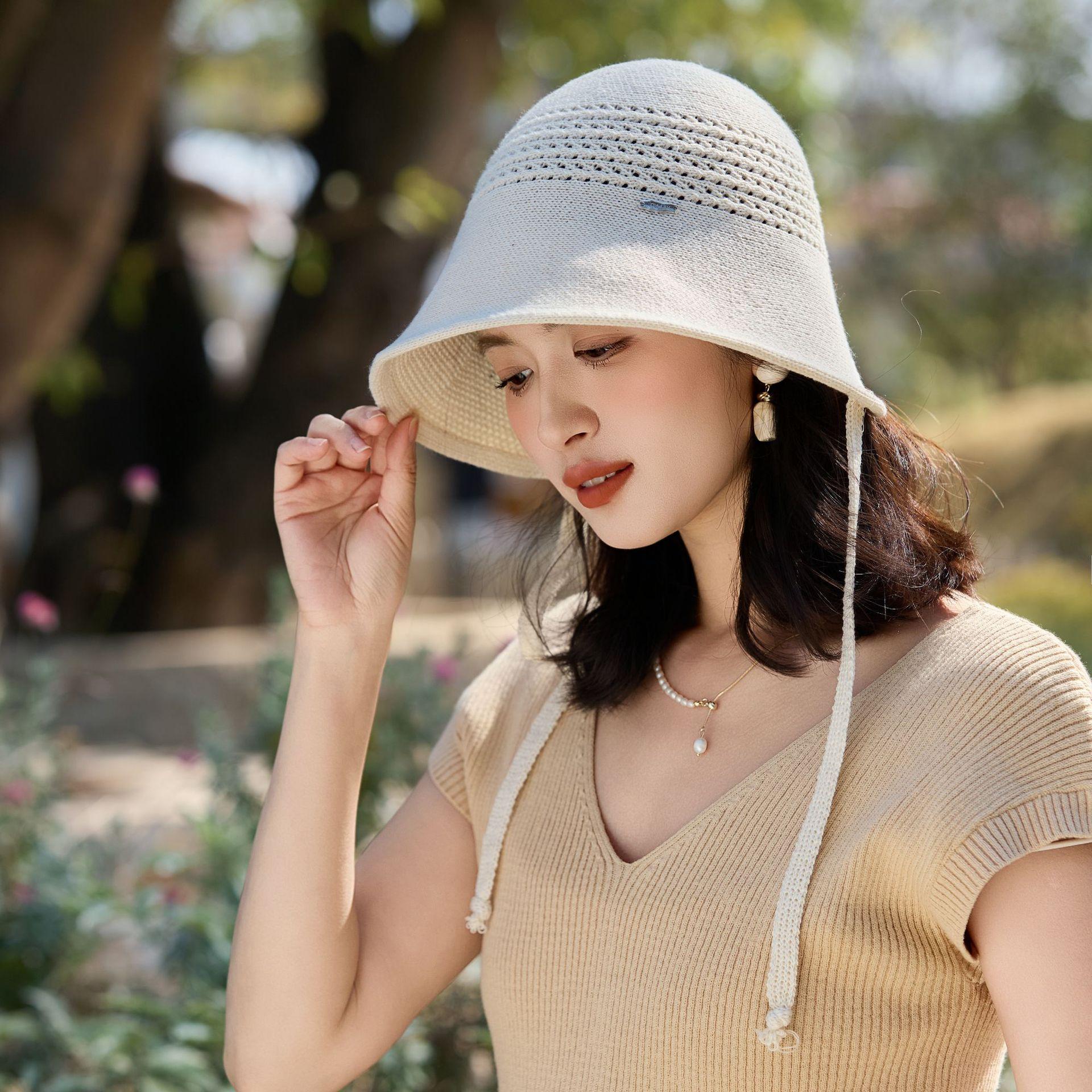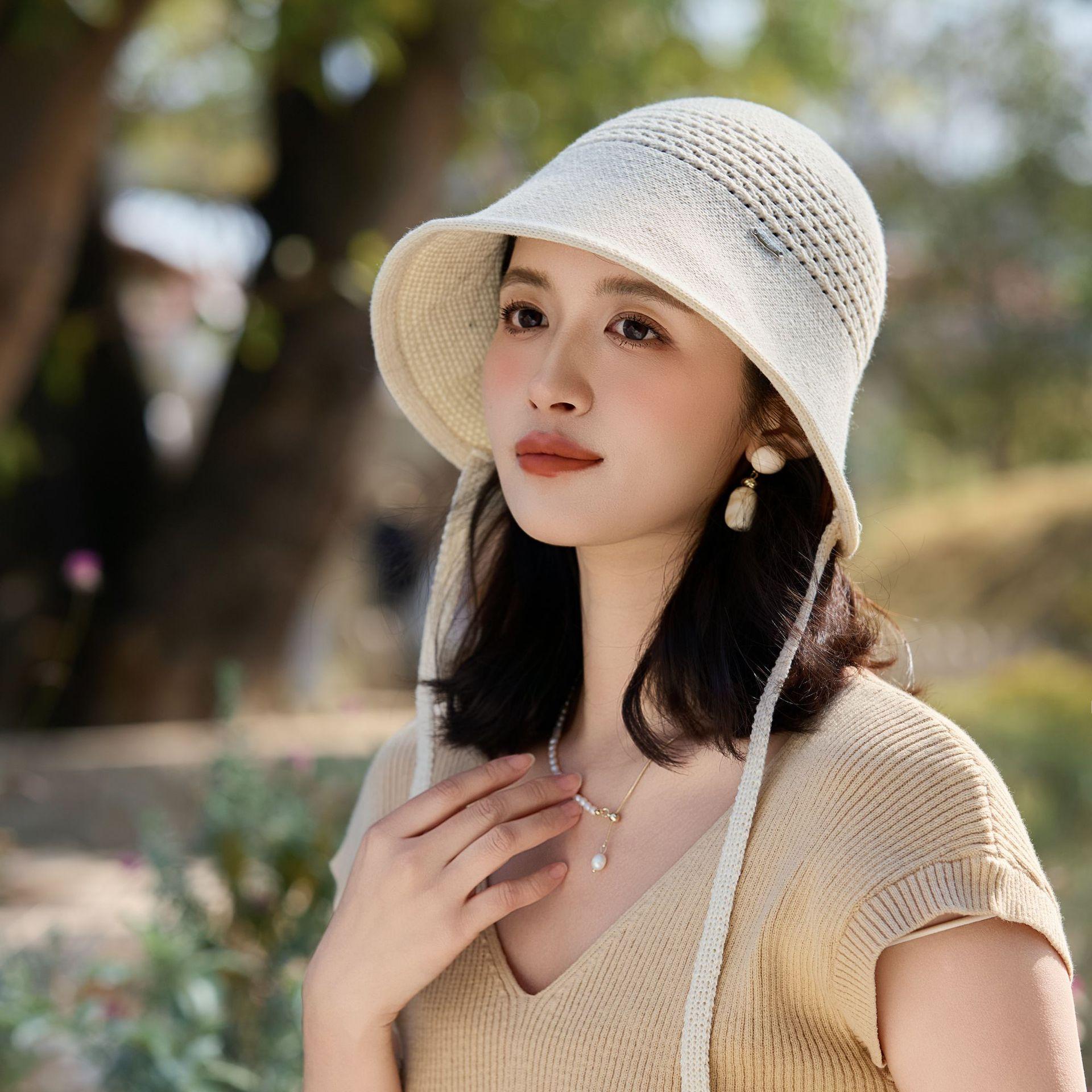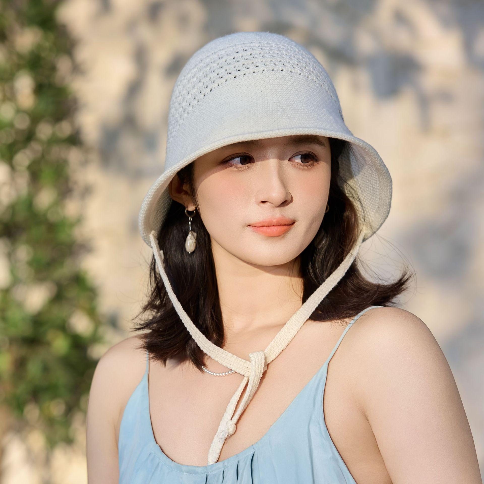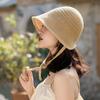 Sombrero Verano 2025 Nuevo Estilo Sombrero Femenino Sombrero de Pescador Parasol Protector Solar Sombrero Tejido Sombrero de Cubo Dulce Correa Sombrero Cortavientos