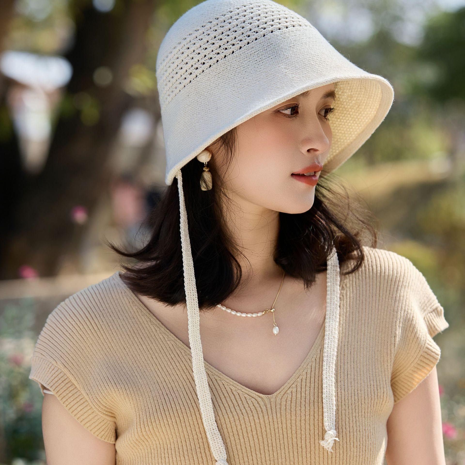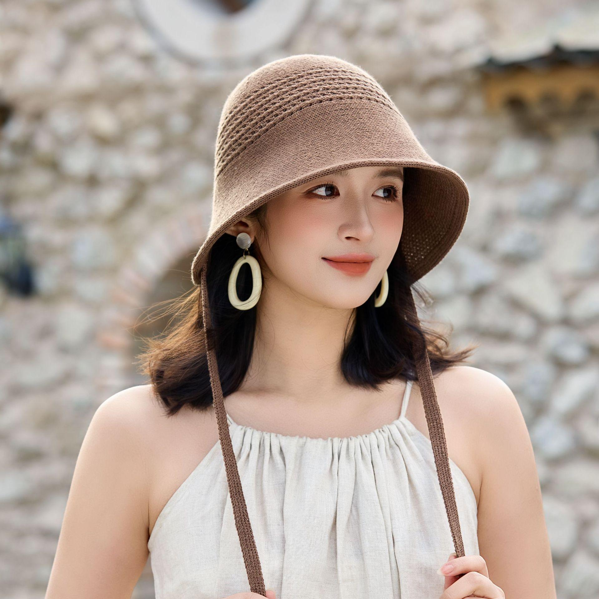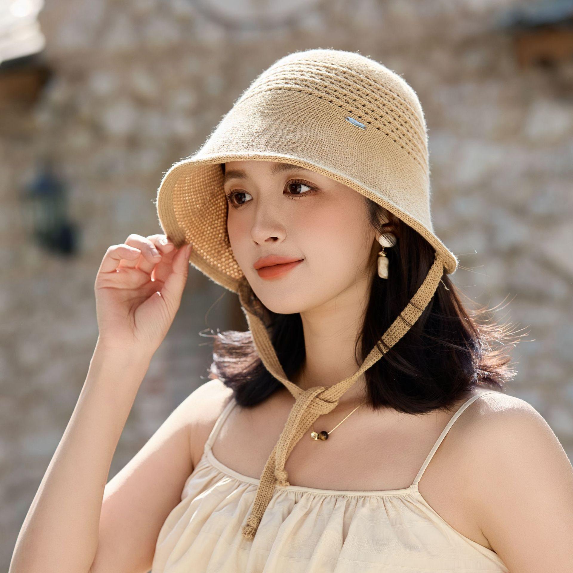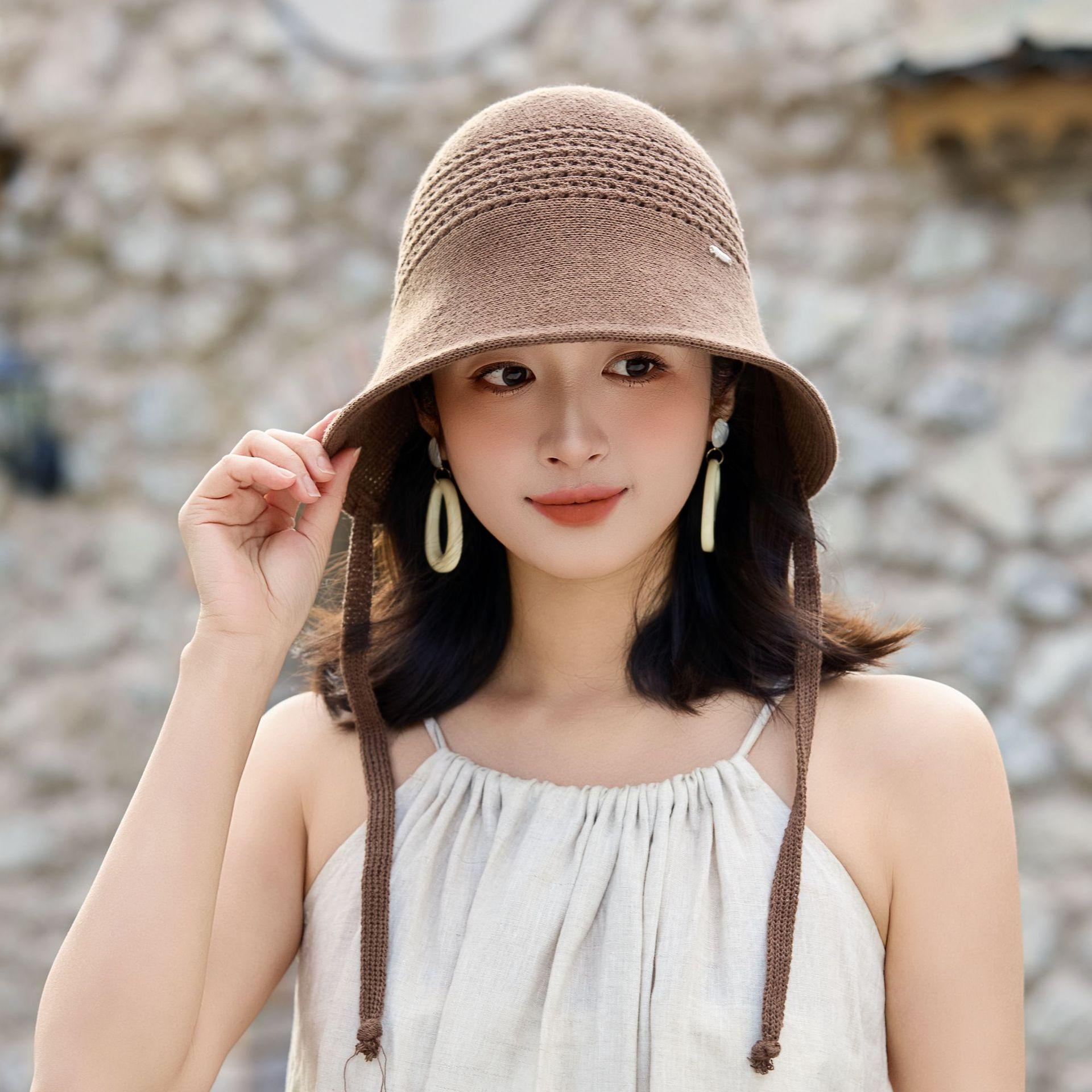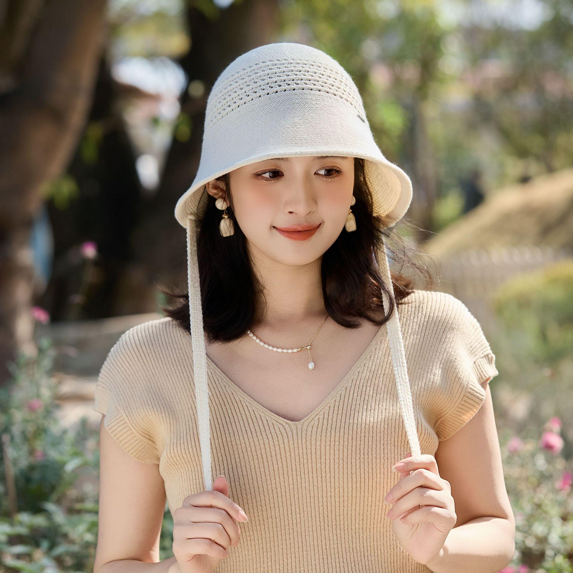 Sombrero Verano 2025 Nuevo Estilo Sombrero Femenino Sombrero de Pescador Parasol Protector Solar Sombrero Tejido Sombrero de Cubo Dulce Correa Sombrero Cortavientos