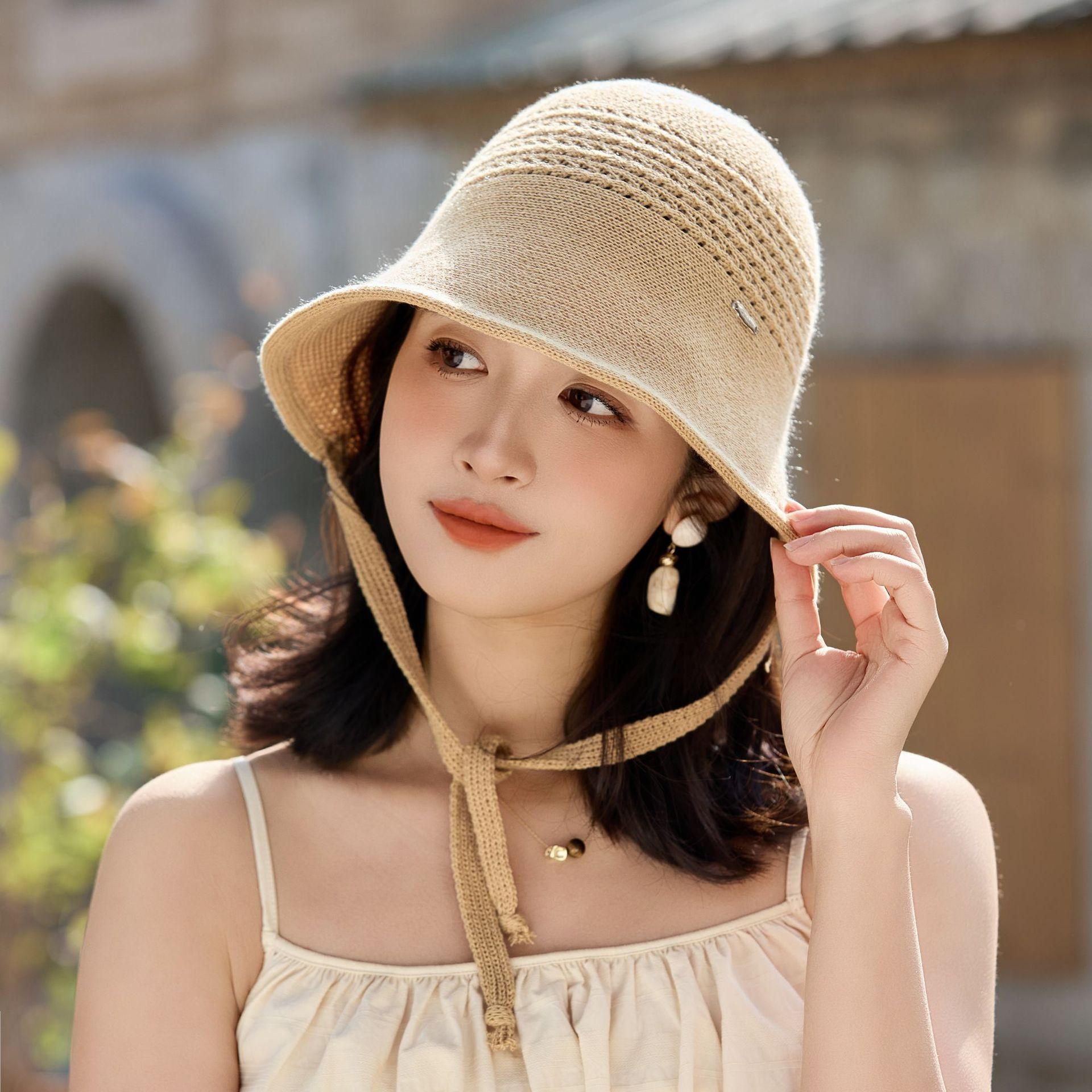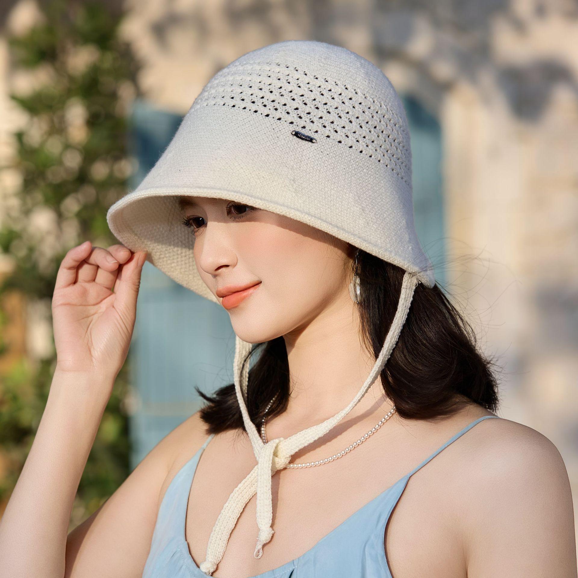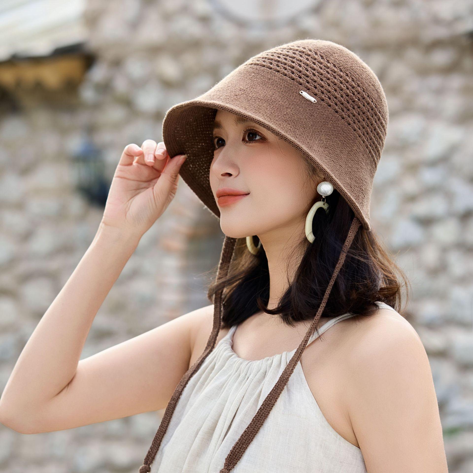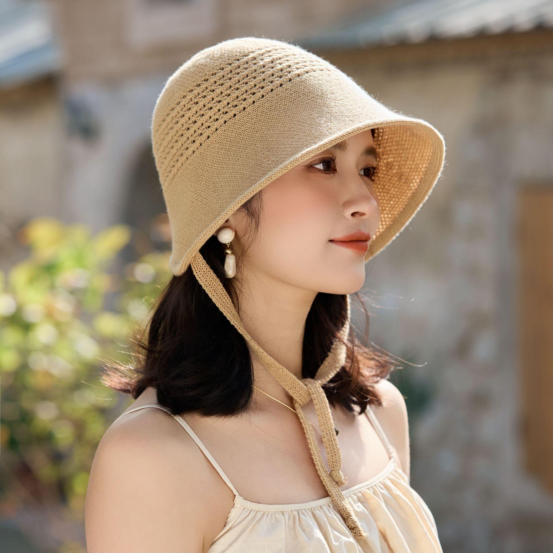 Sombrero Verano 2025 Nuevo Estilo Sombrero Femenino Sombrero de Pescador Parasol Protector Solar Sombrero Tejido Sombrero de Cubo Dulce Correa Sombrero Cortavientos