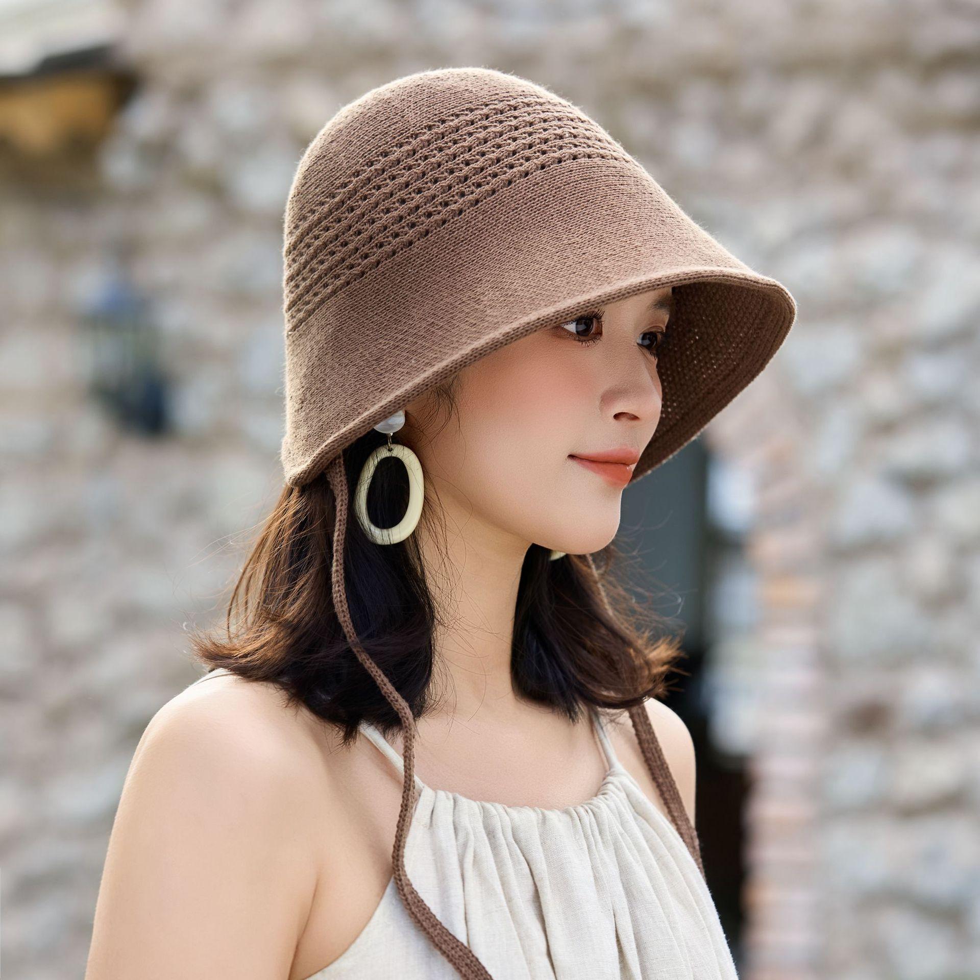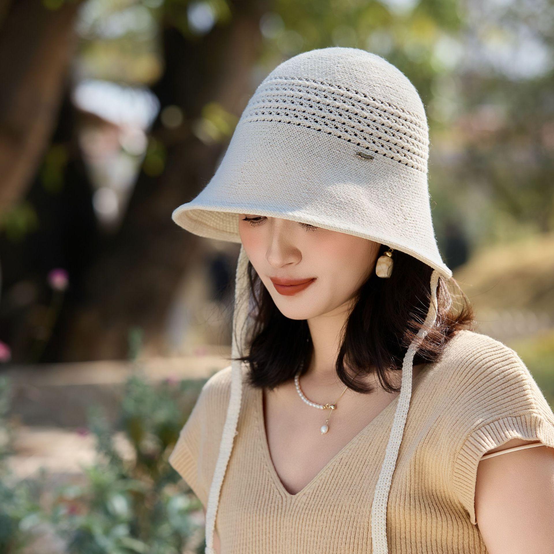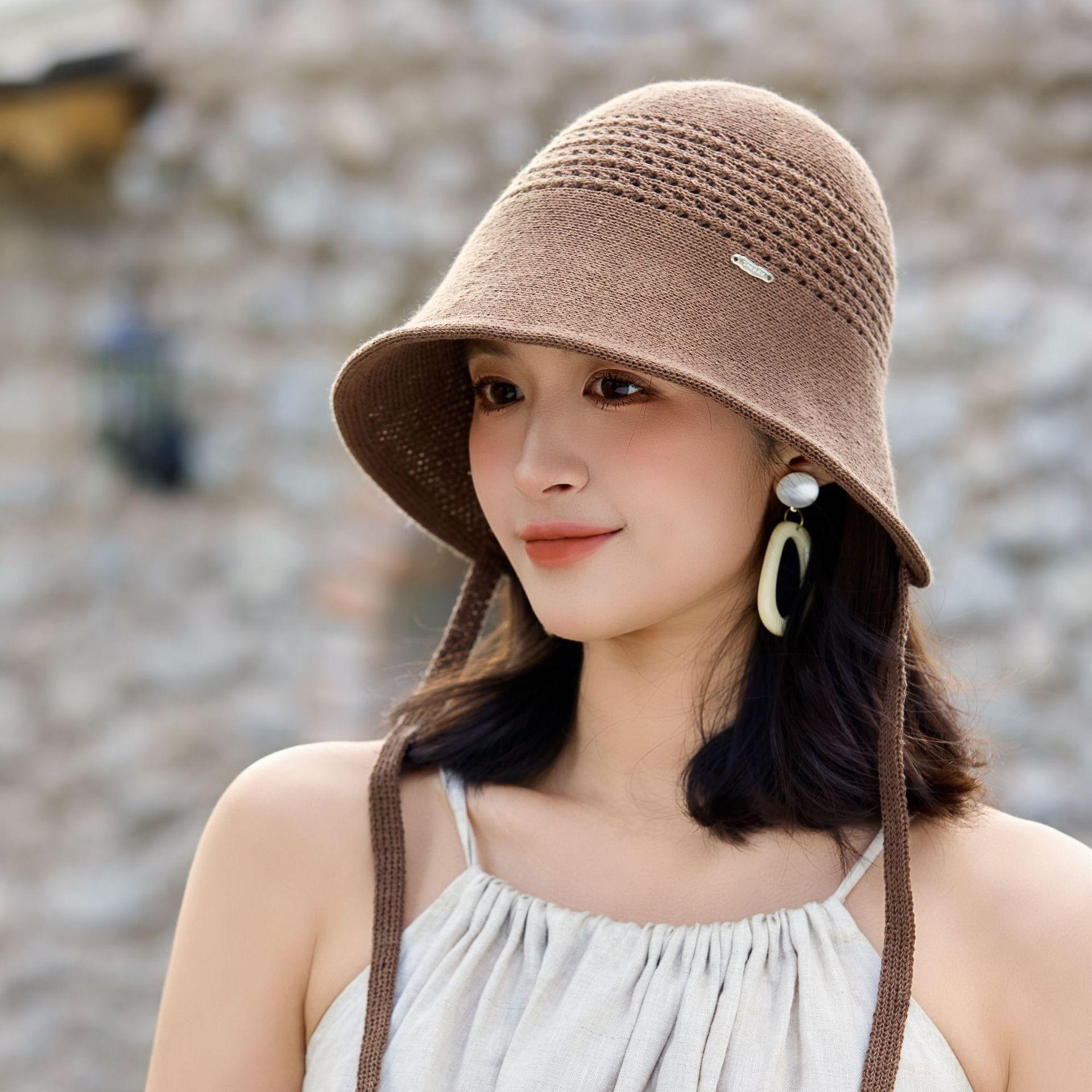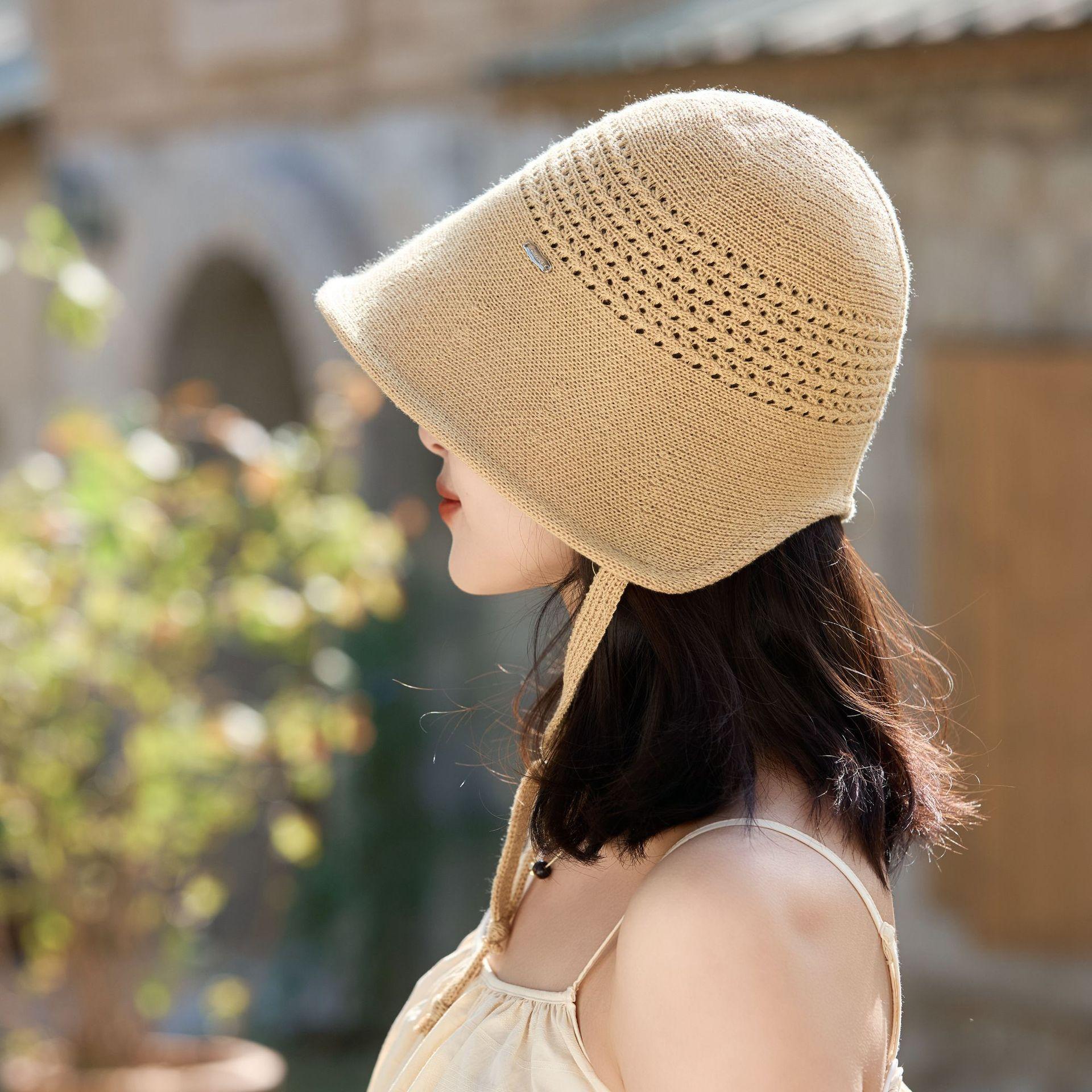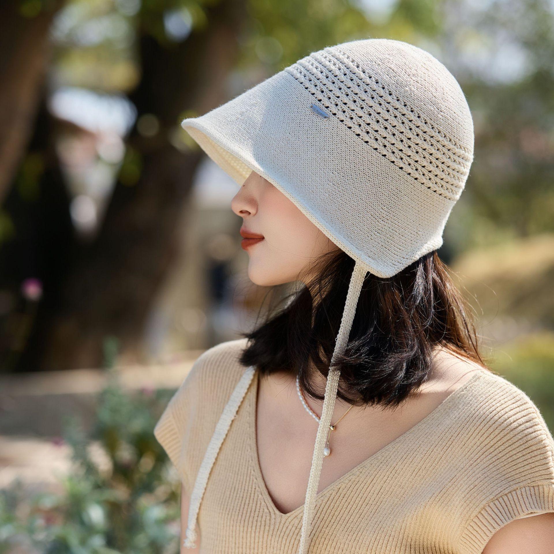 Sombrero Verano 2025 Nuevo Estilo Sombrero Femenino Sombrero de Pescador Parasol Protector Solar Sombrero Tejido Sombrero de Cubo Dulce Correa Sombrero Cortavientos