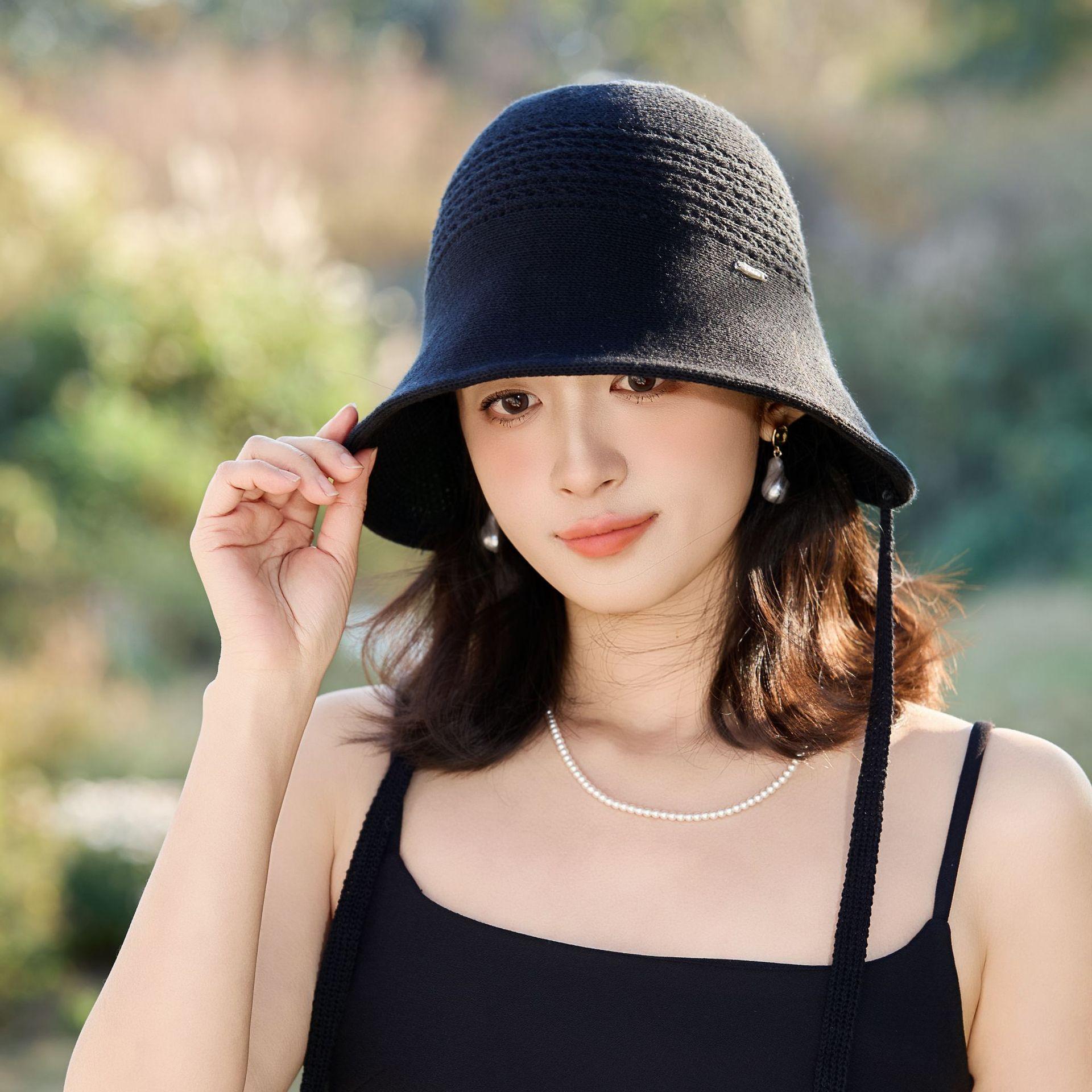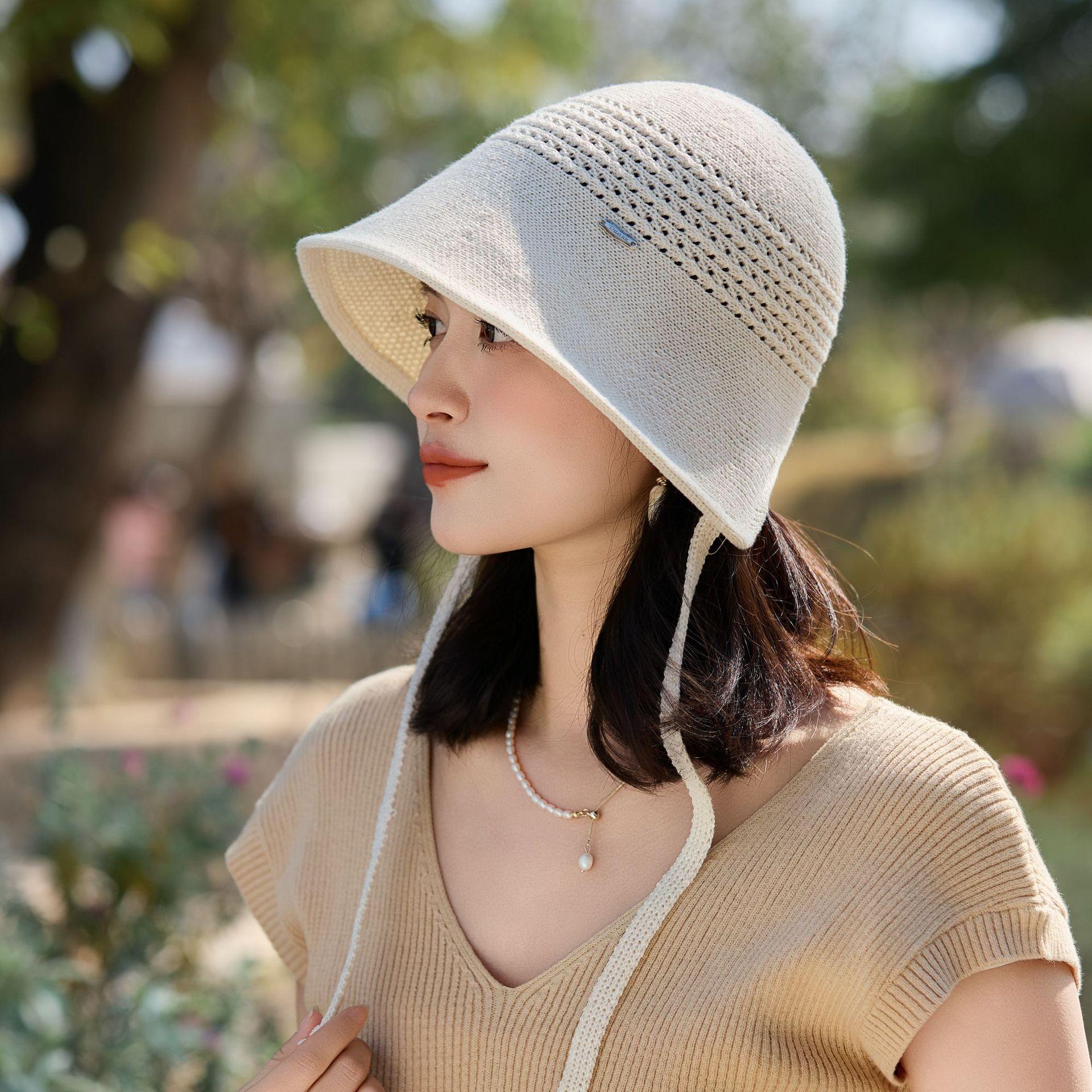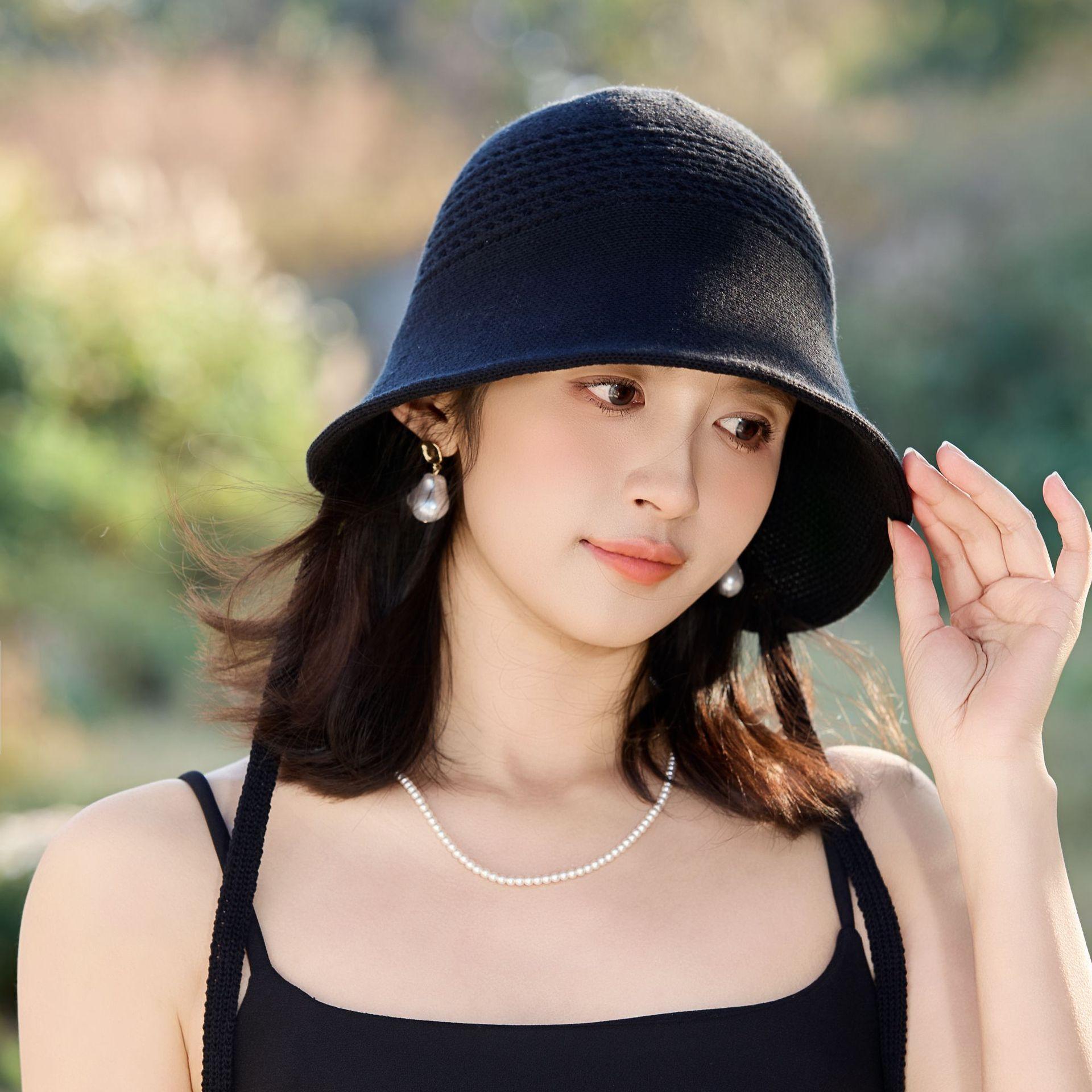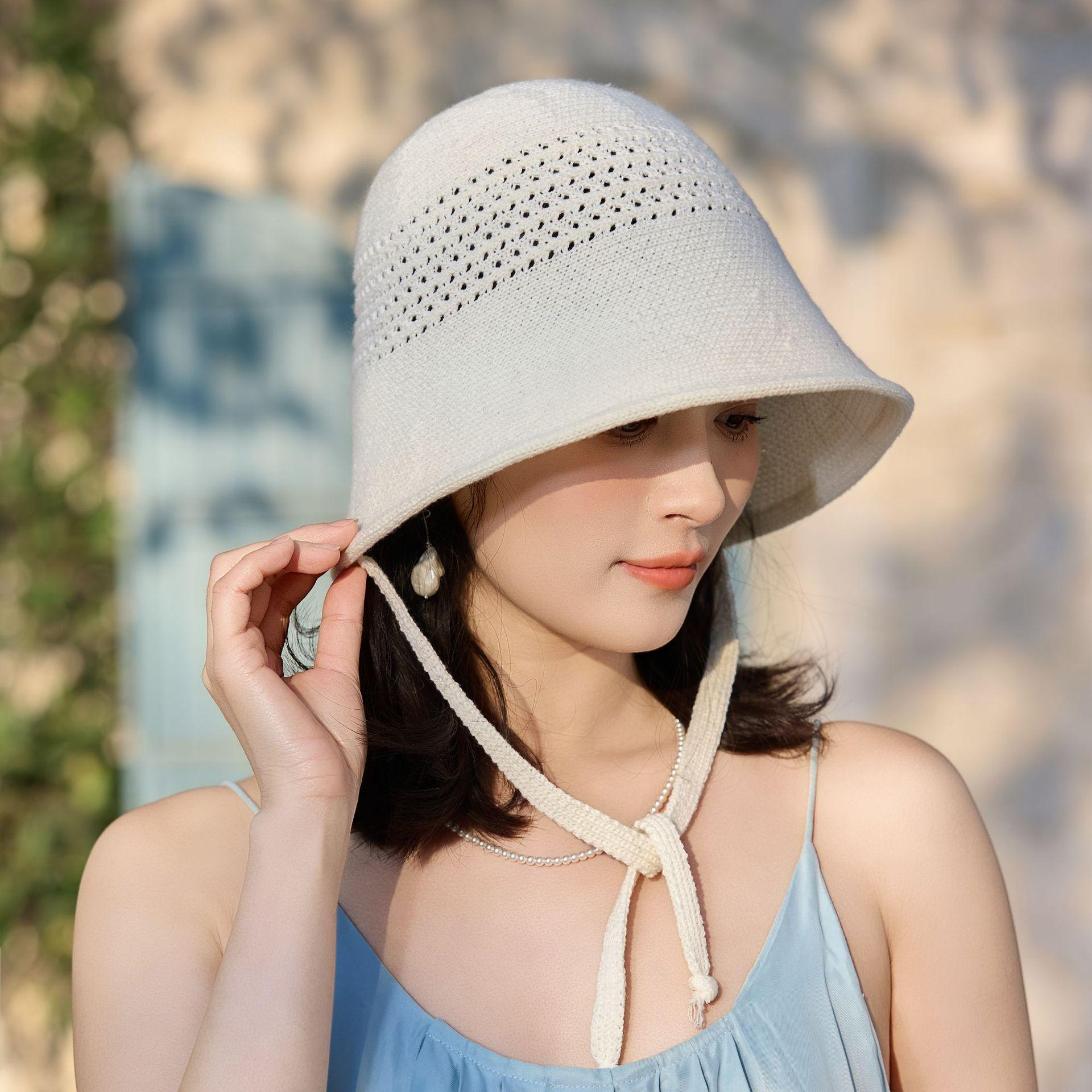 Sombrero Verano 2025 Nuevo Estilo Sombrero Femenino Sombrero de Pescador Parasol Protector Solar Sombrero Tejido Sombrero de Cubo Dulce Correa Sombrero Cortavientos