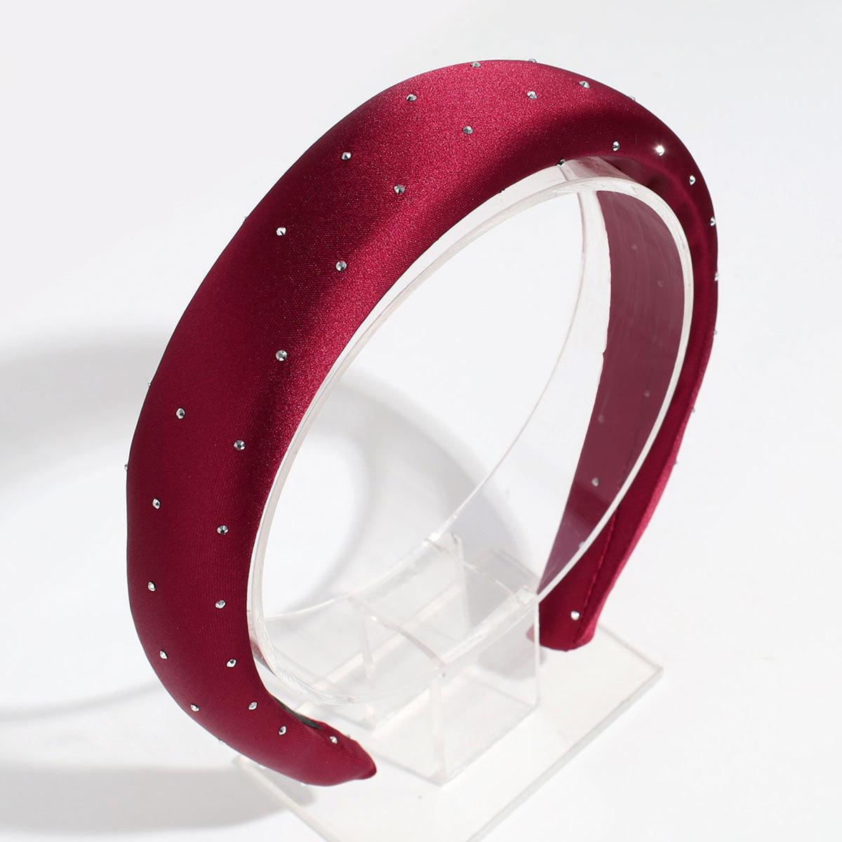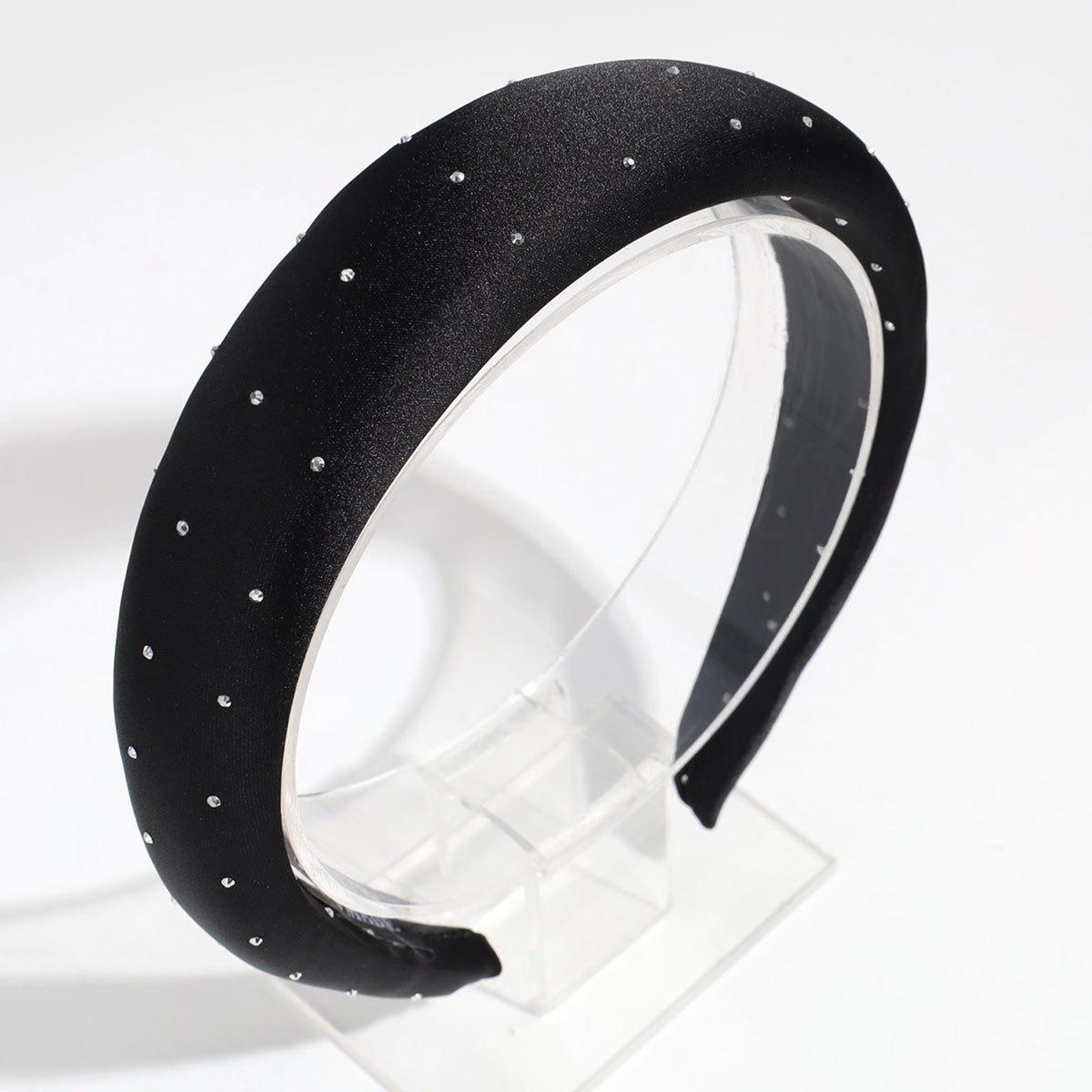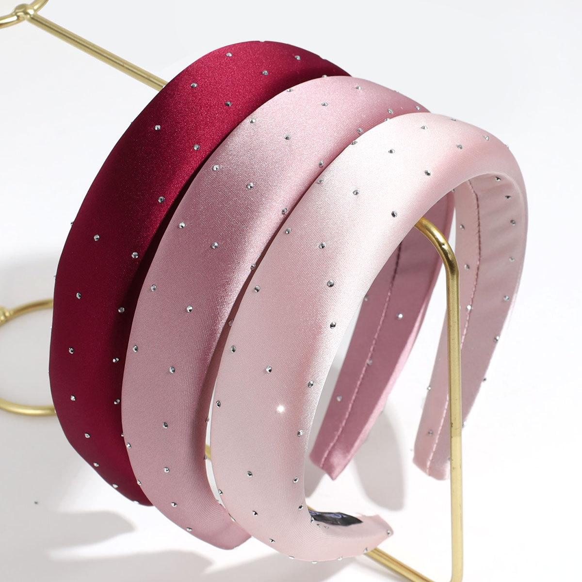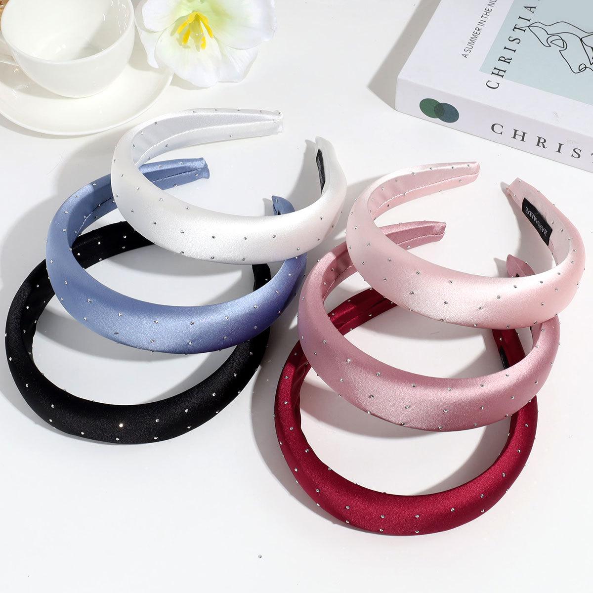 Nueva Moda Transfronteriza Diadema Ancha de Satén con Esponja, Temperamento de Diamantes Brillantes y Versátil Diadema de Color Sólido, Accesorios para el Cabello