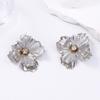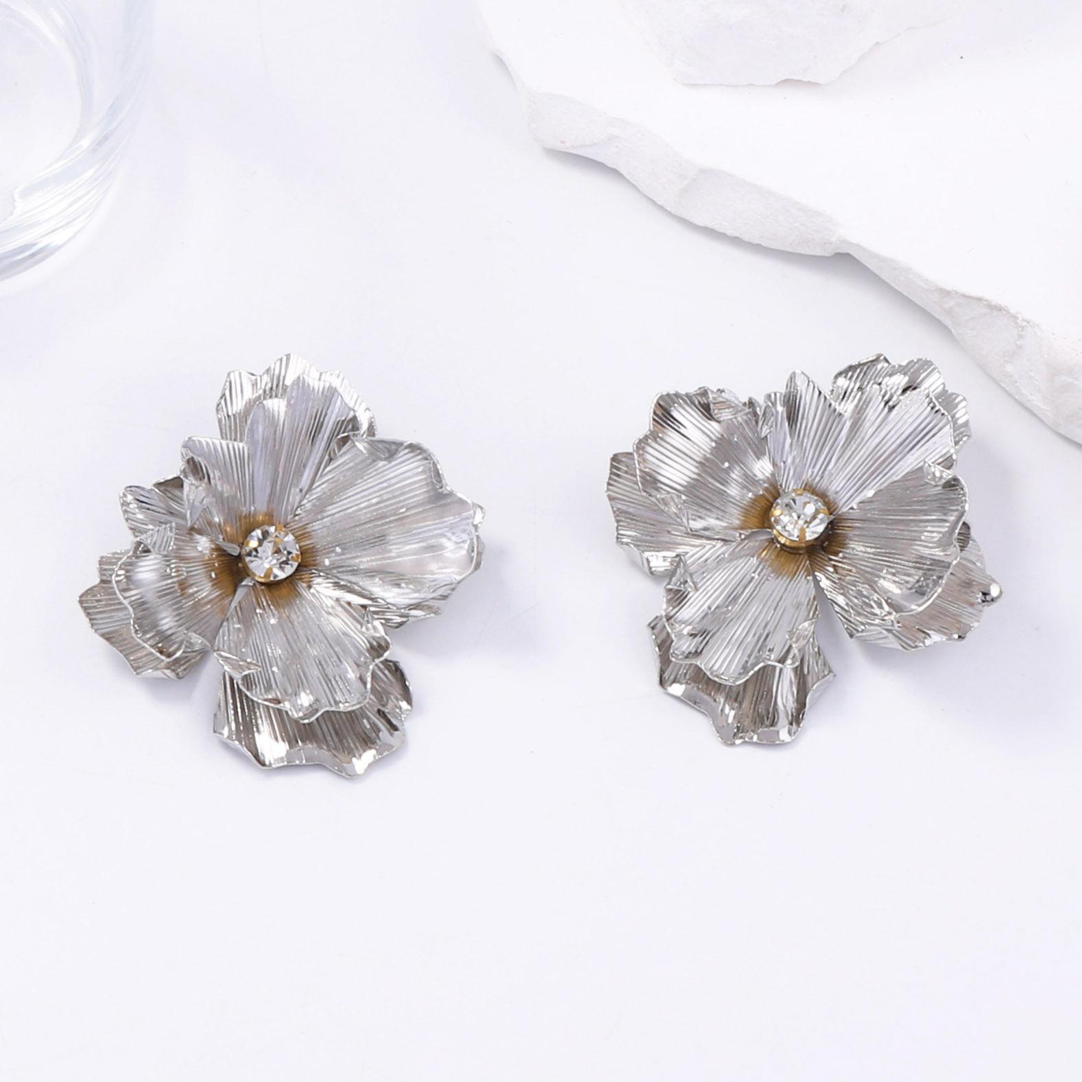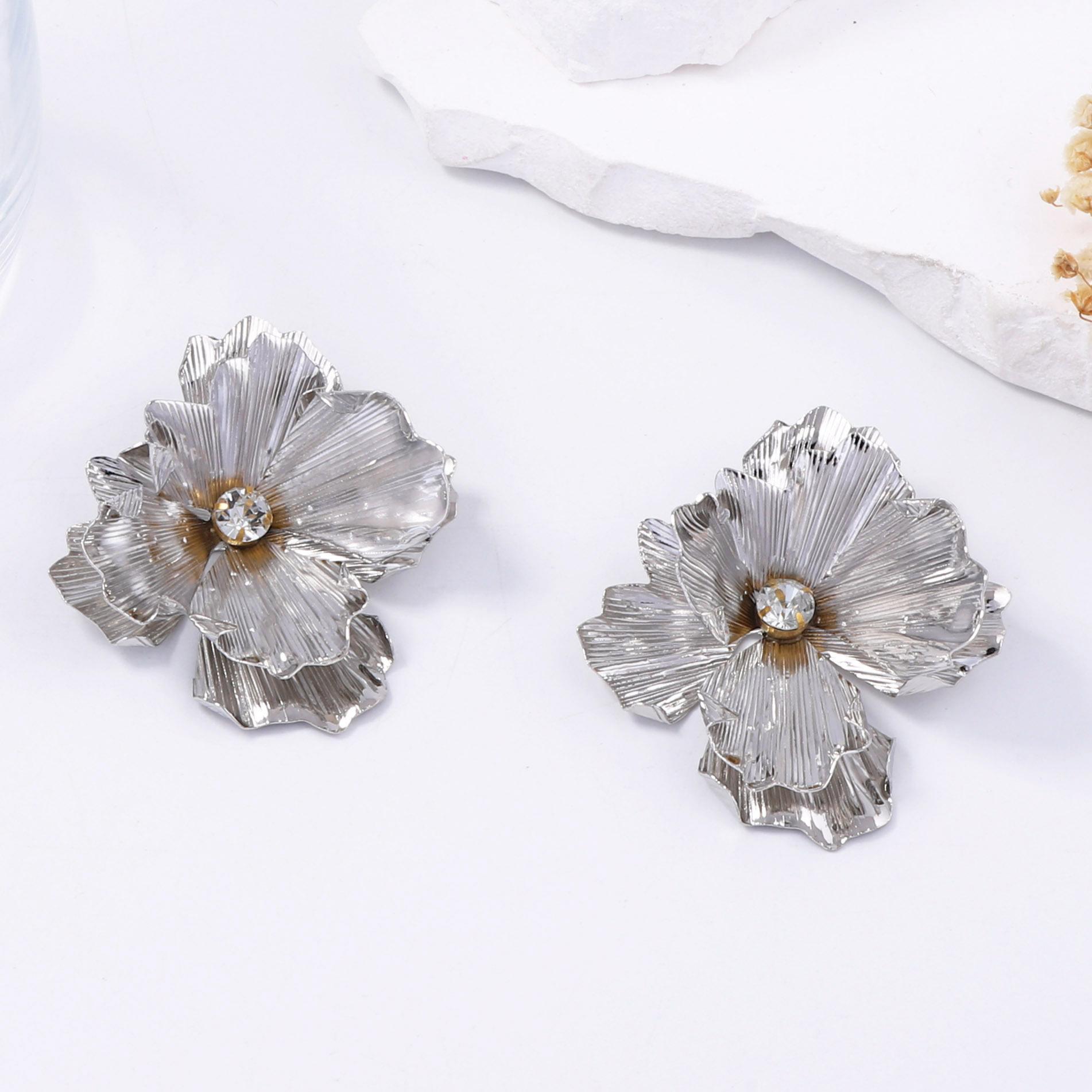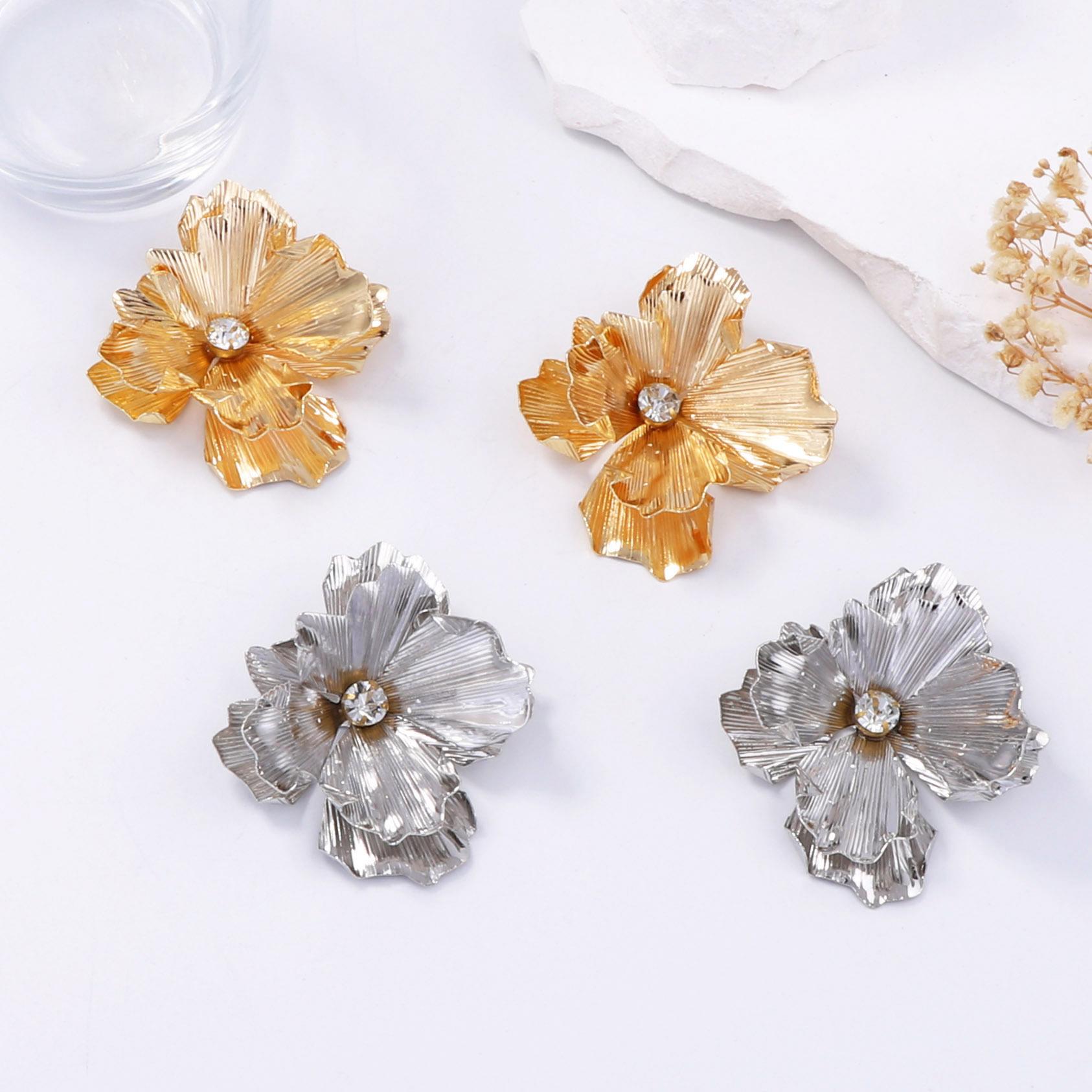 Aretes de Lujo Ligero Transfronterizo Personalizados Modernos de Metal con Micro-incrustaciones de Zircón Únicos de Doble Capa de Flor para Mujer Aretes Vintage Franceses
