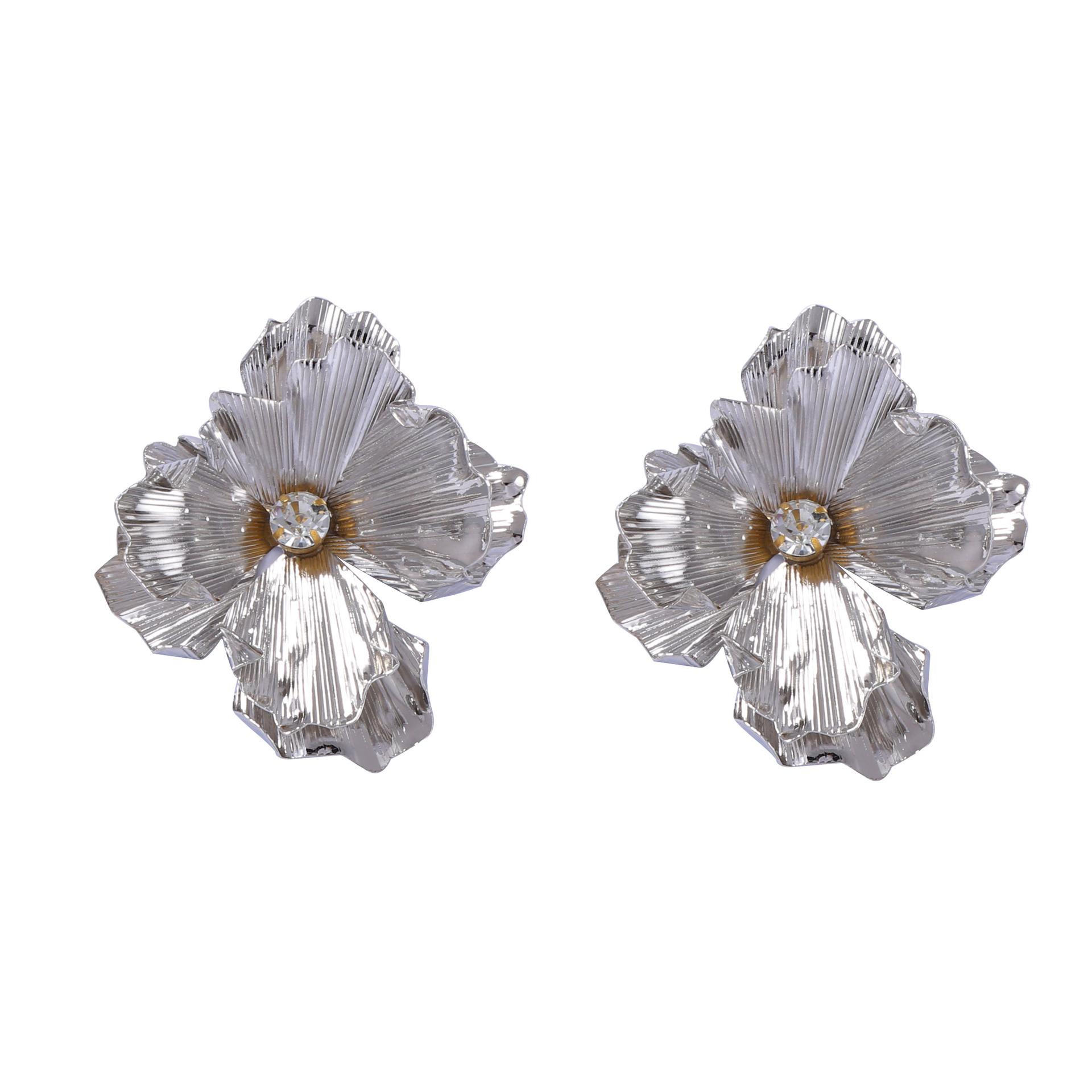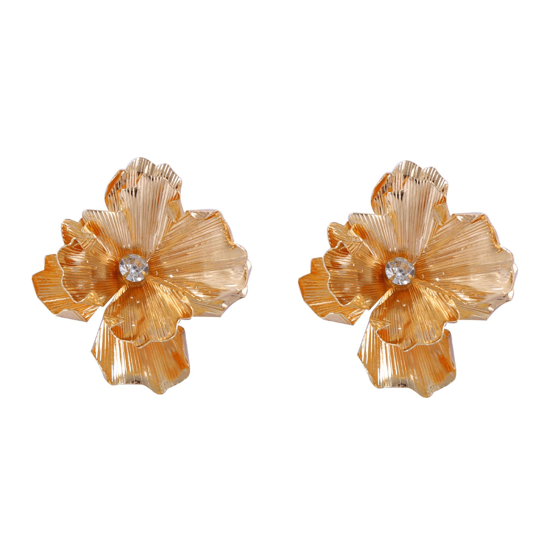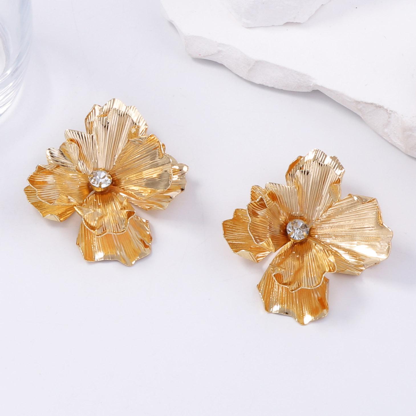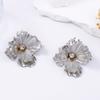 Aretes de Lujo Ligero Transfronterizo Personalizados Modernos de Metal con Micro-incrustaciones de Zircón Únicos de Doble Capa de Flor para Mujer Aretes Vintage Franceses