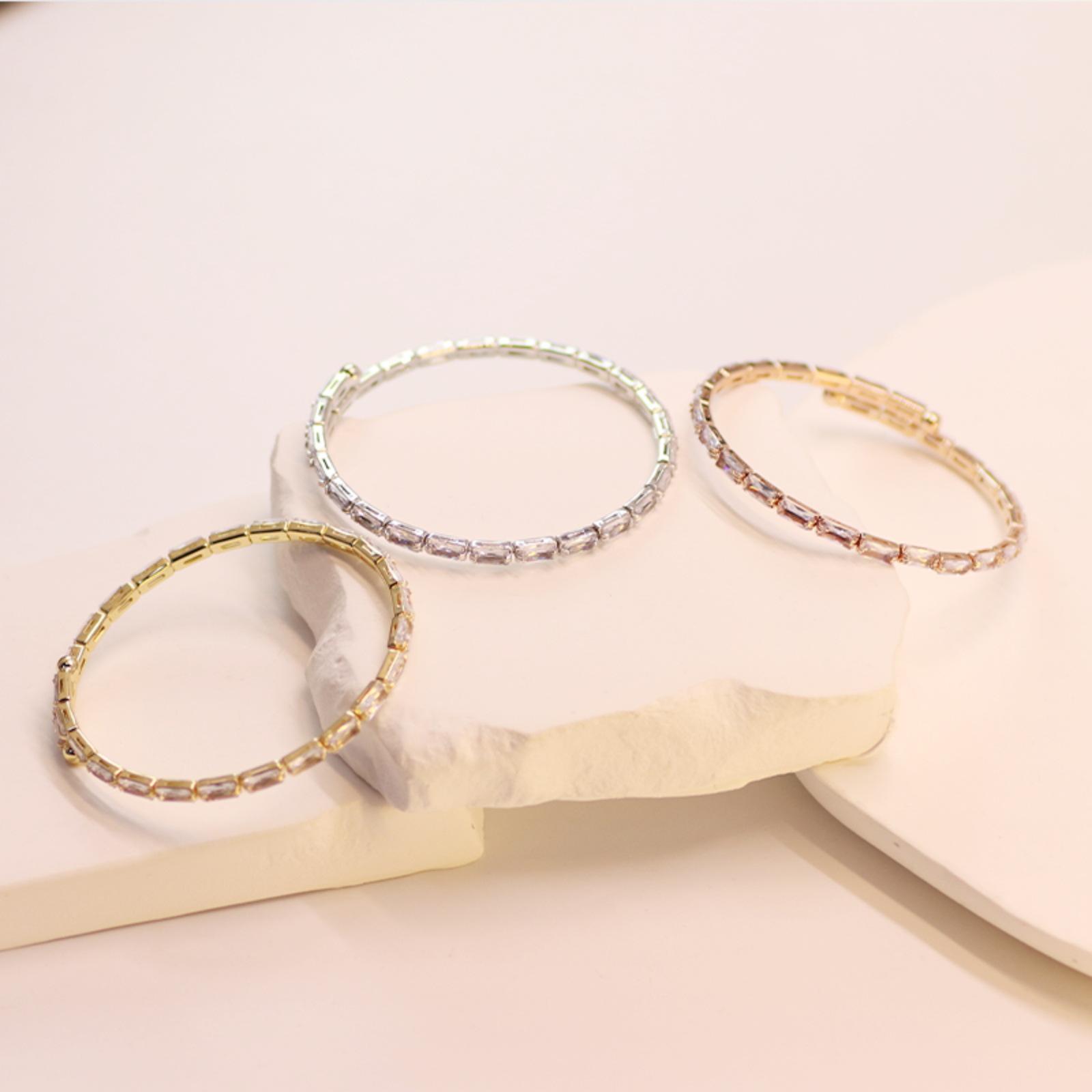 Pulsera de Circonita Colorida Simple Versátil Estilo Bosque Lujo Ligero Moda para Mujer Acero Titanio Cadena Cuadrada Empalme Pulsera Diamante Completo Venta al por Mayor