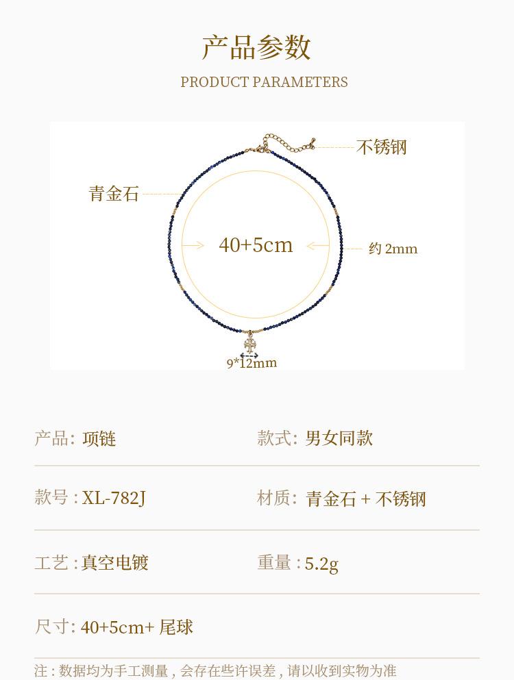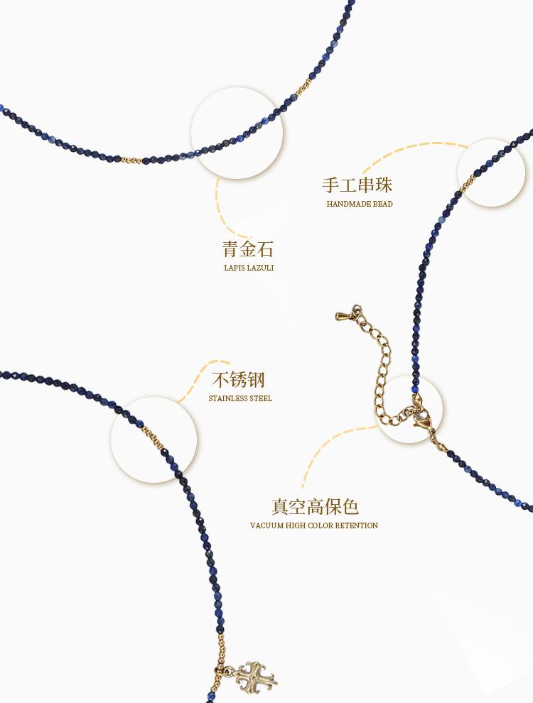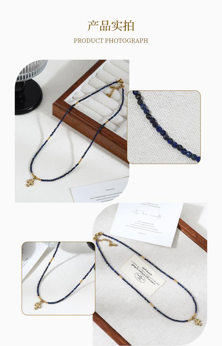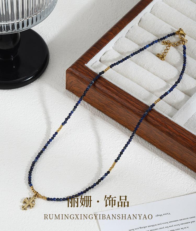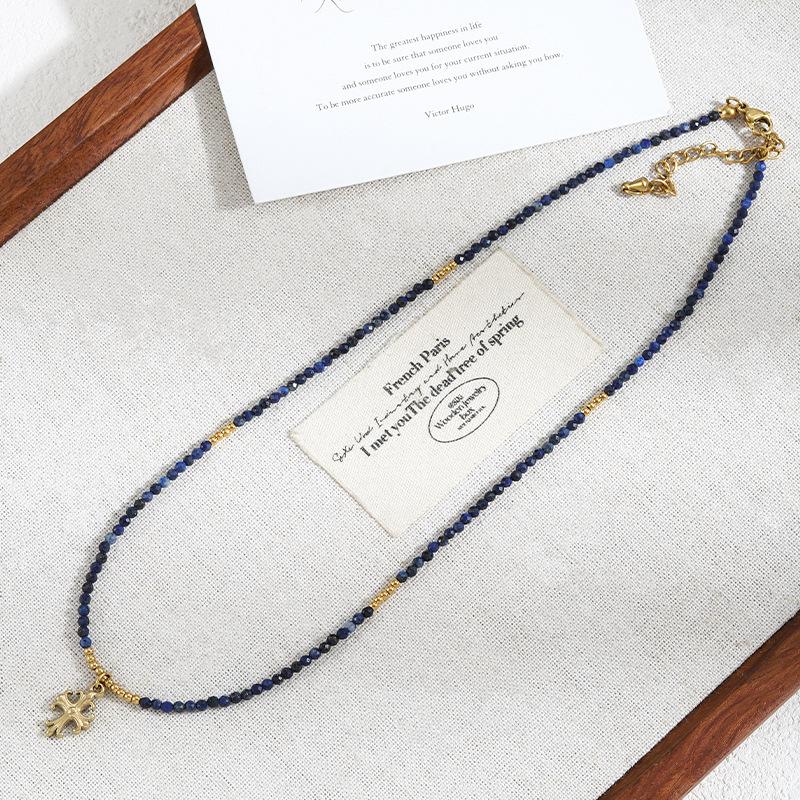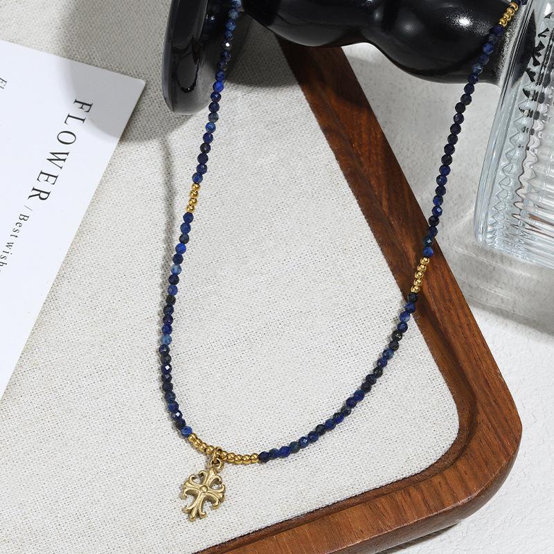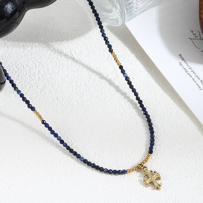 Corazón de Cuervo Nicho Simple Lapislázuli Hecho a Mano Collar de Cuentas Moda y Versátil Acero Titanio Inoxidable Collar de Cruz