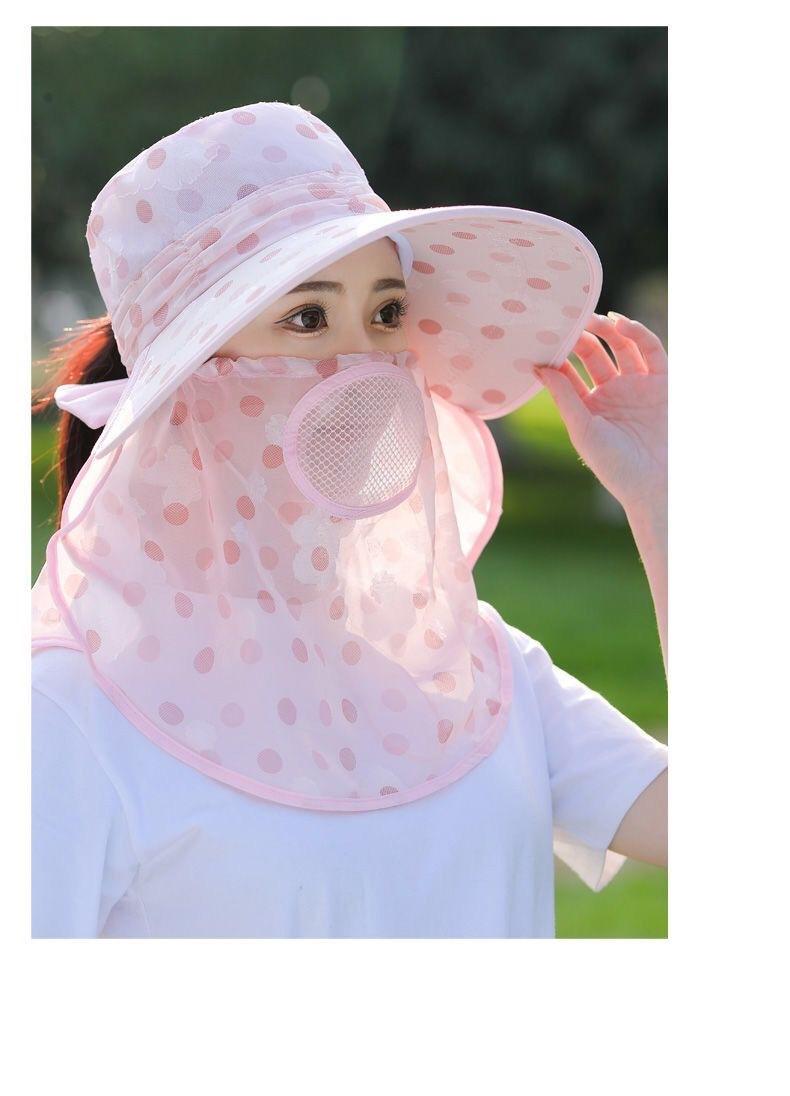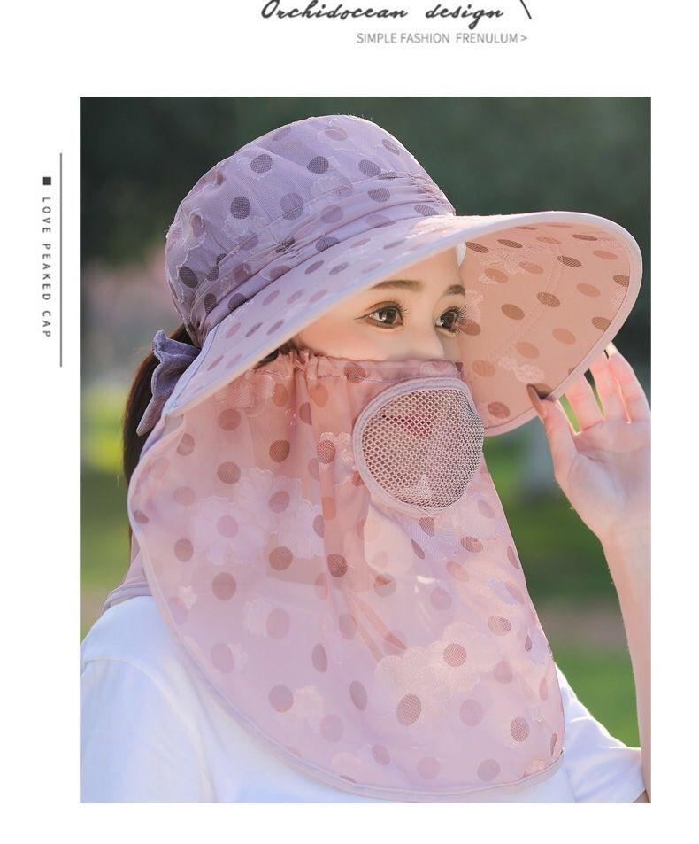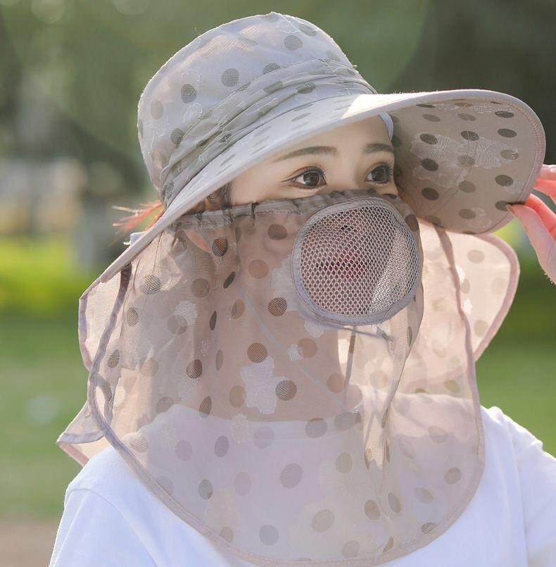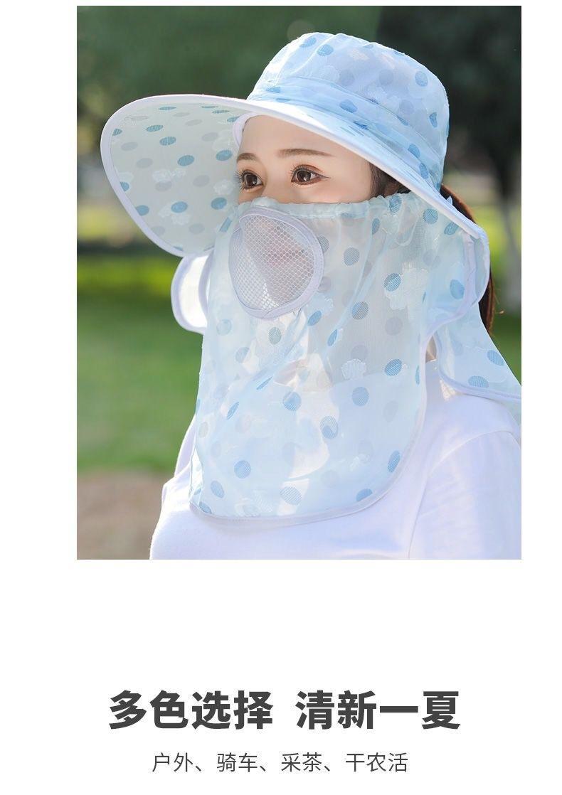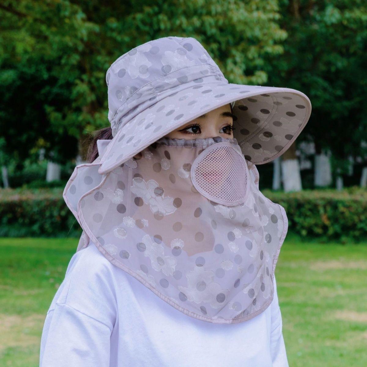 Sombrero de Sol para Mujer Sombrero de Protección Solar Verano Ala Ancha Bicicleta Parasol Mascarilla Protección UV Sombrero Recolector de Té Sombrero para Agricultura de Secano
