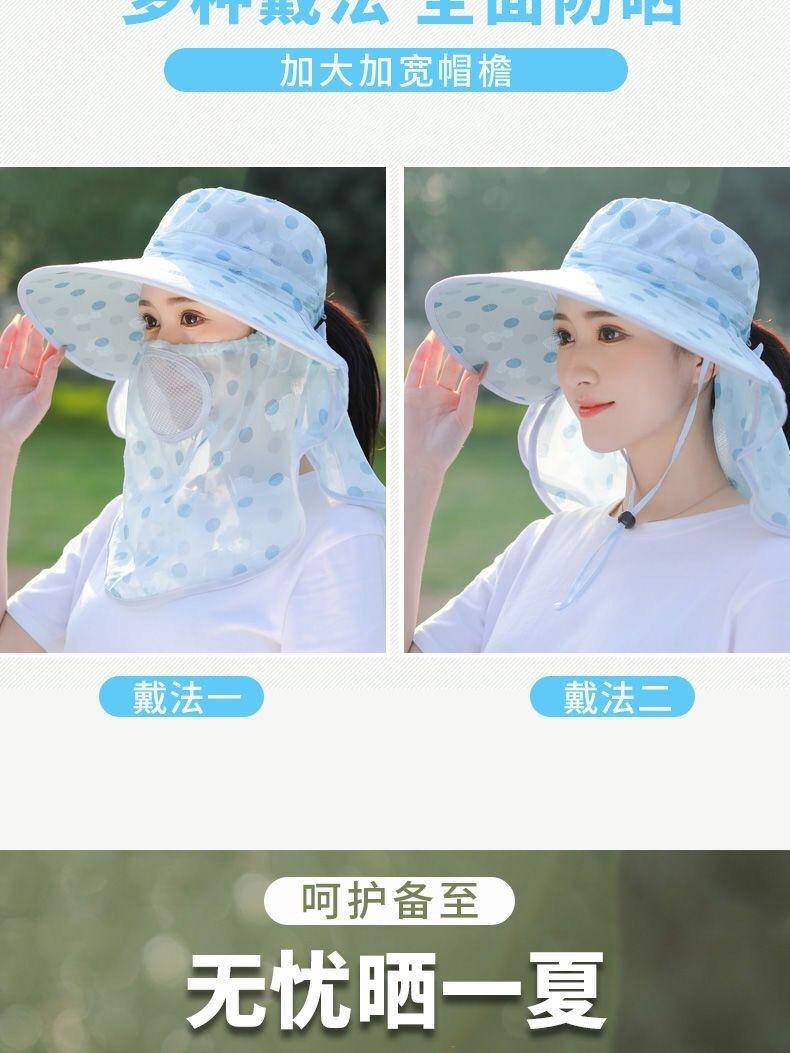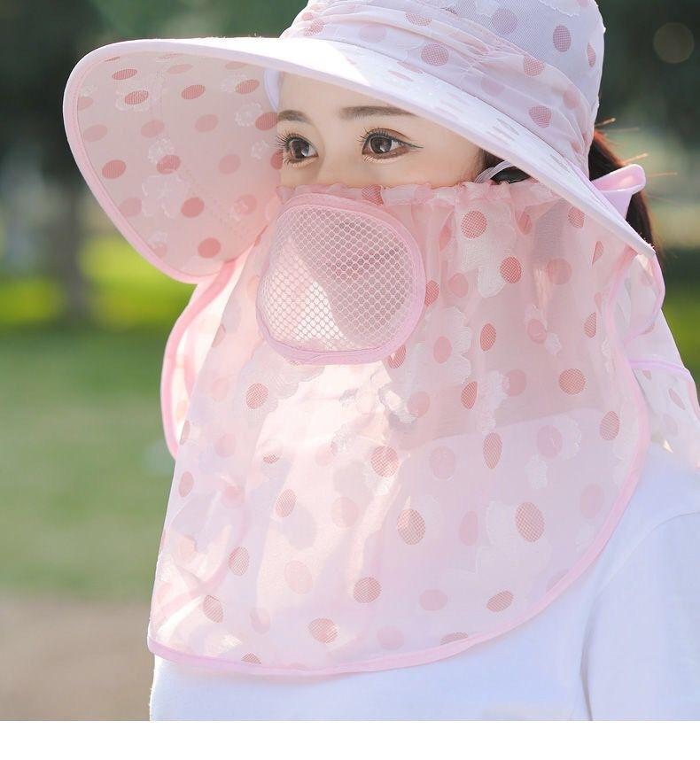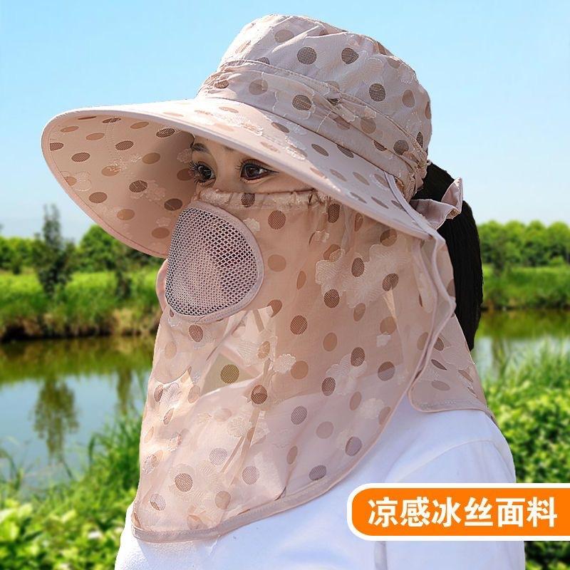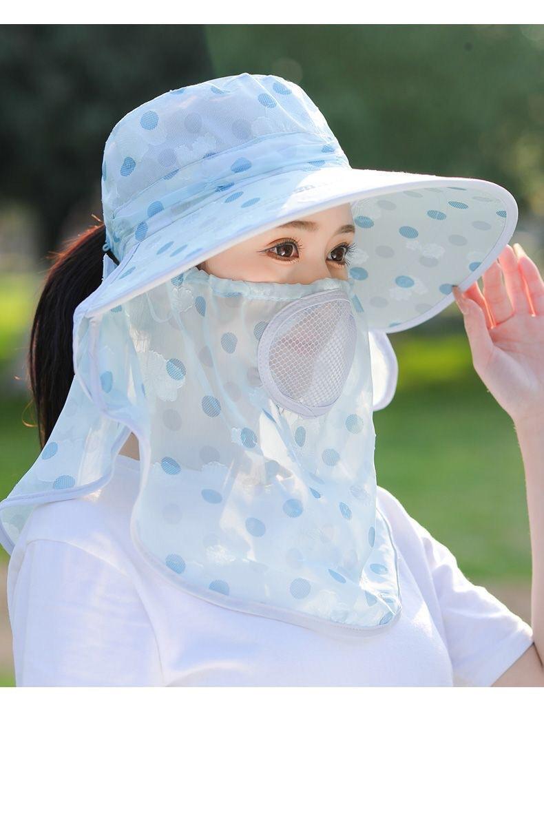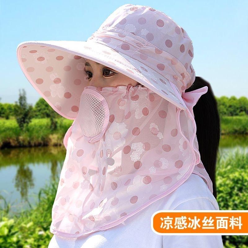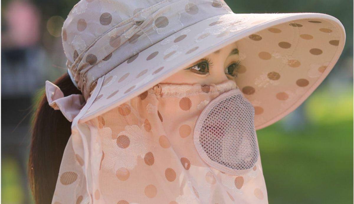 Sombrero de Sol para Mujer Sombrero de Protección Solar Verano Ala Ancha Bicicleta Parasol Mascarilla Protección UV Sombrero Recolector de Té Sombrero para Agricultura de Secano