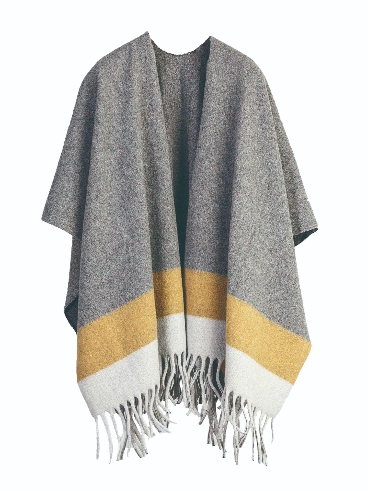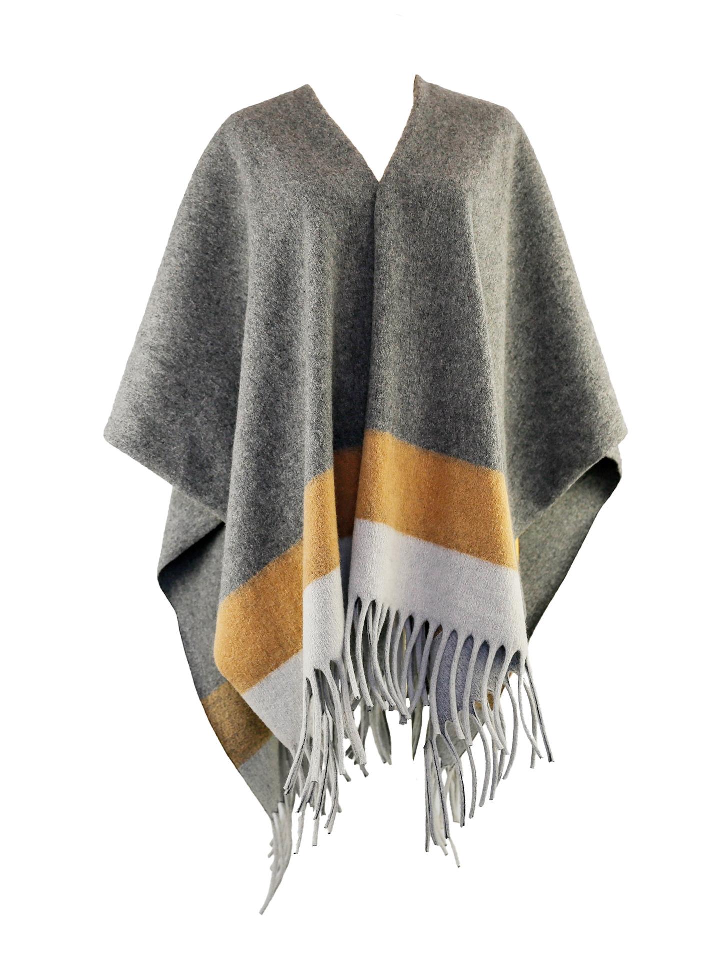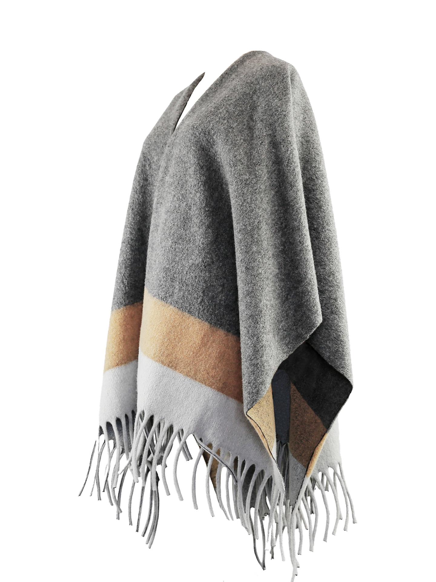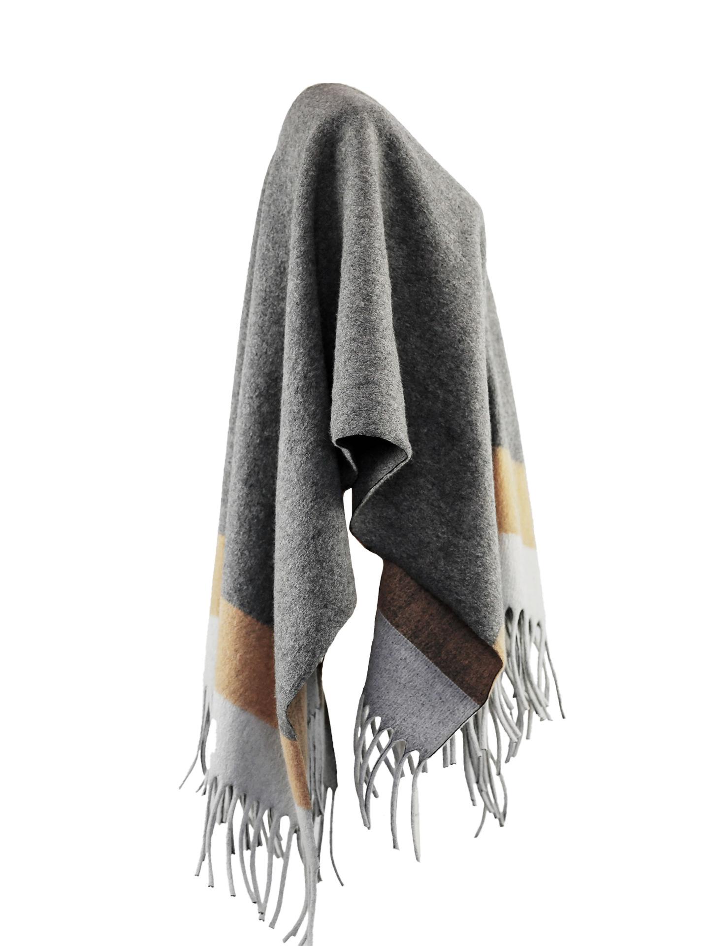 Fábrica de origen chal con flecos capa retro otoño e invierno impresión de alta gama en capas nueva moda chaqueta de doble vista para mujer otoño suelta combinable top cálido prenda exterior