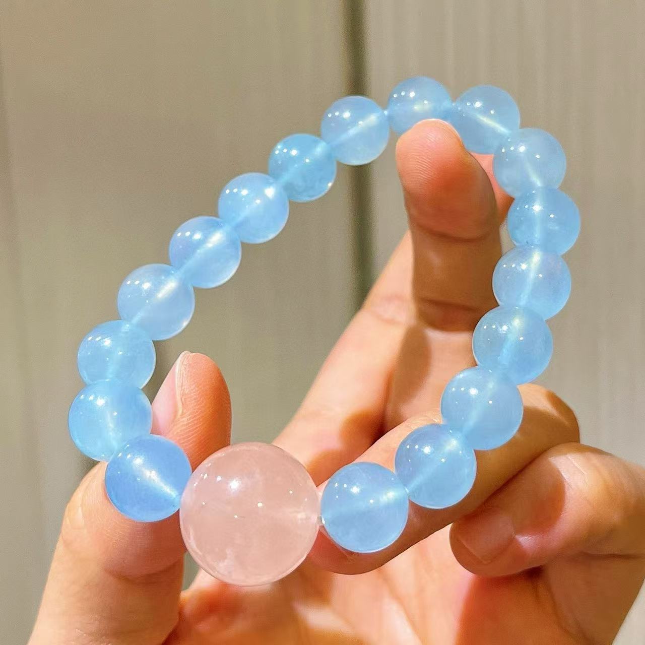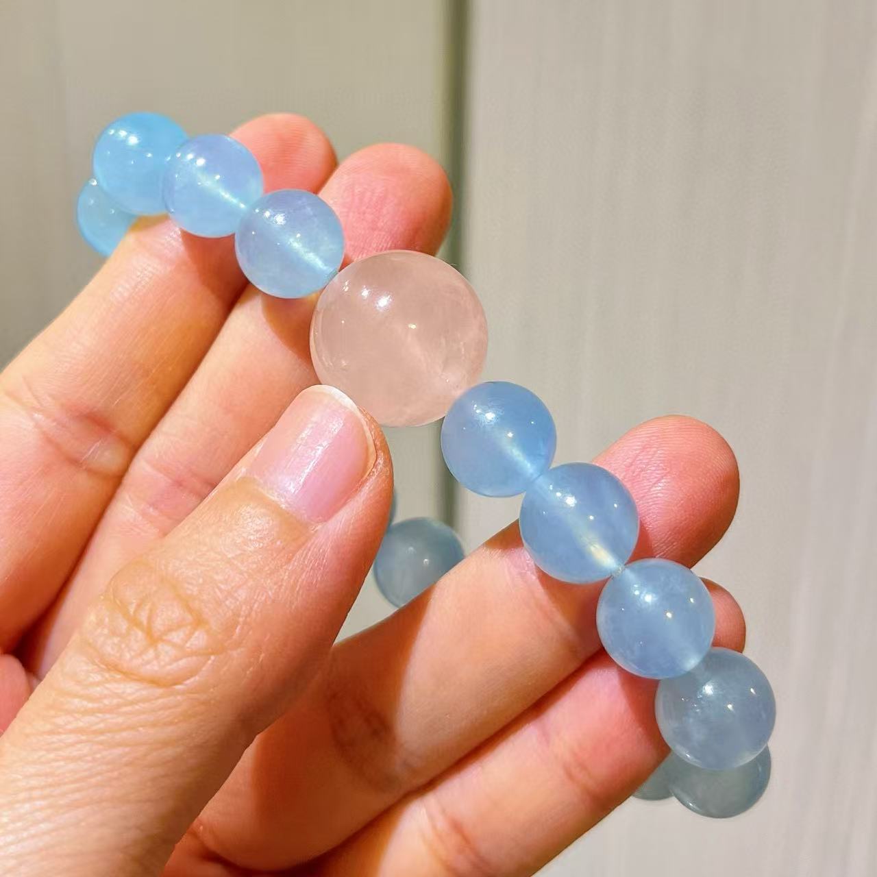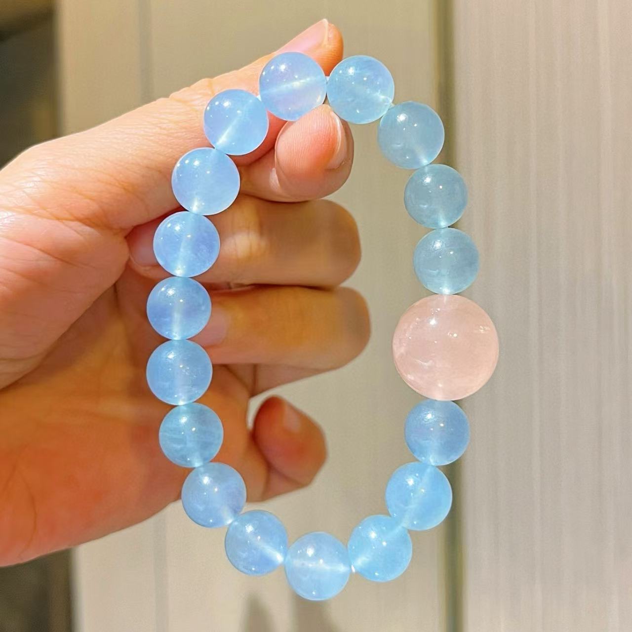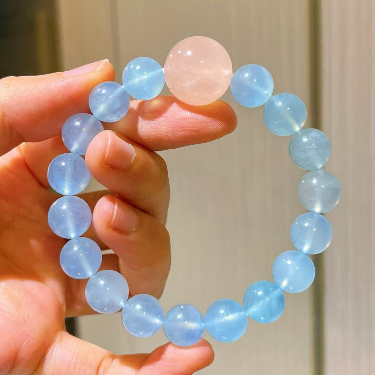 Pulsera de Aguamarina Natural de Alta Calidad de 10 mm Cuarzo Rosa de Madagascar de 16 mm