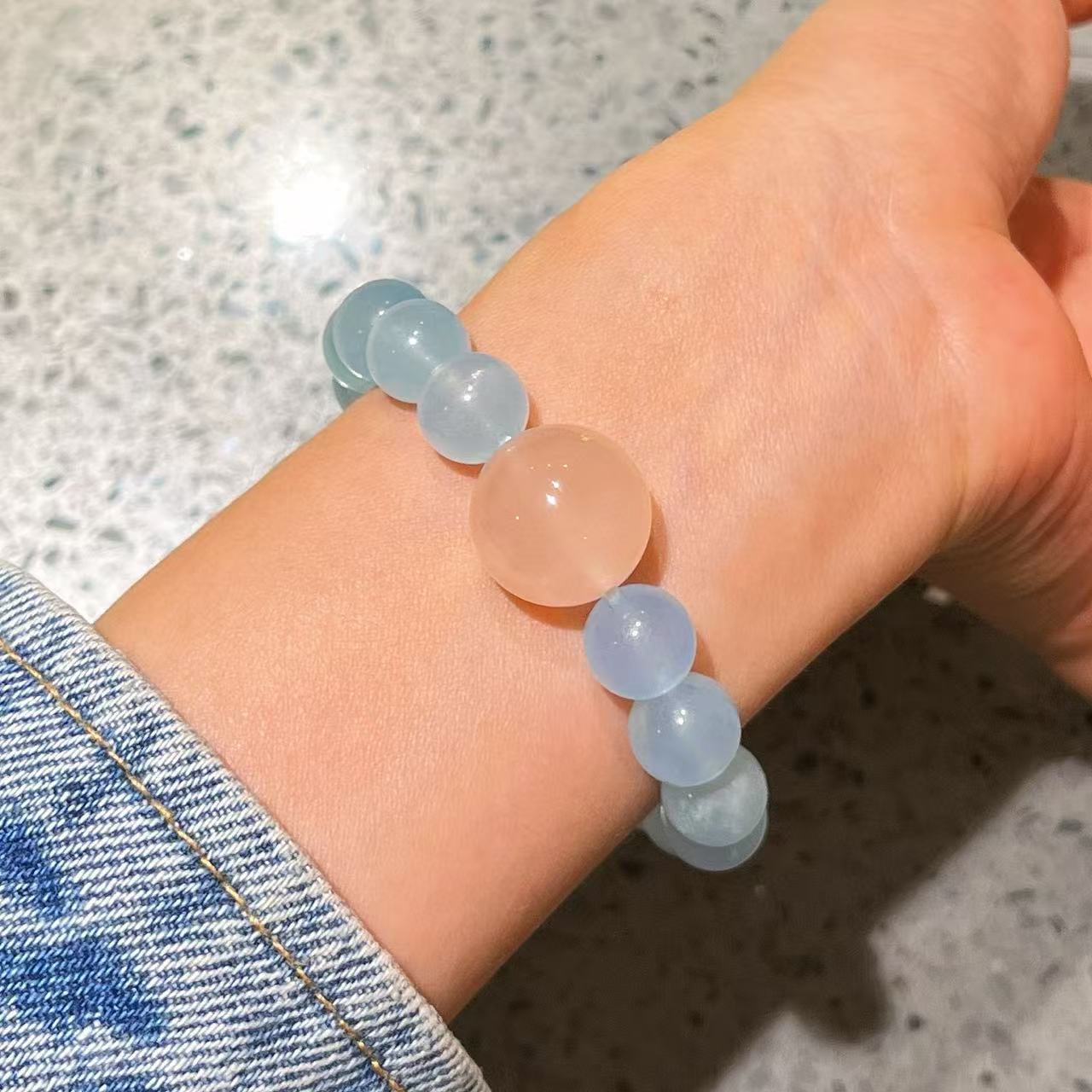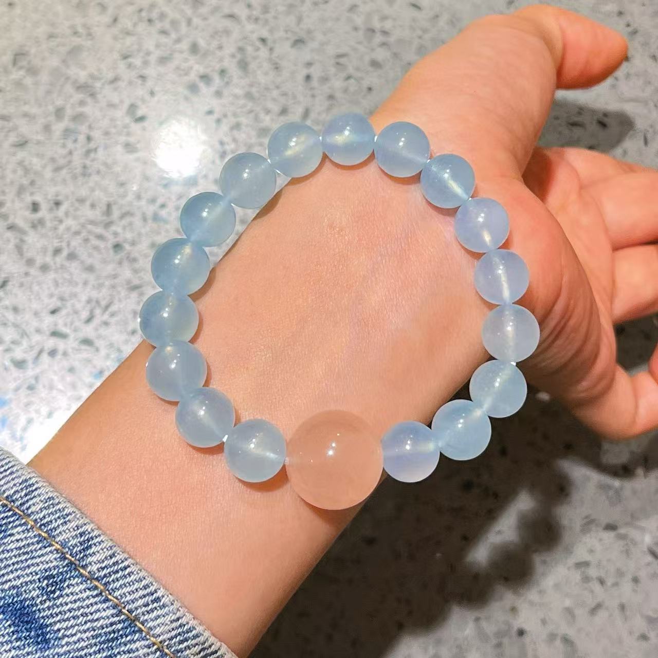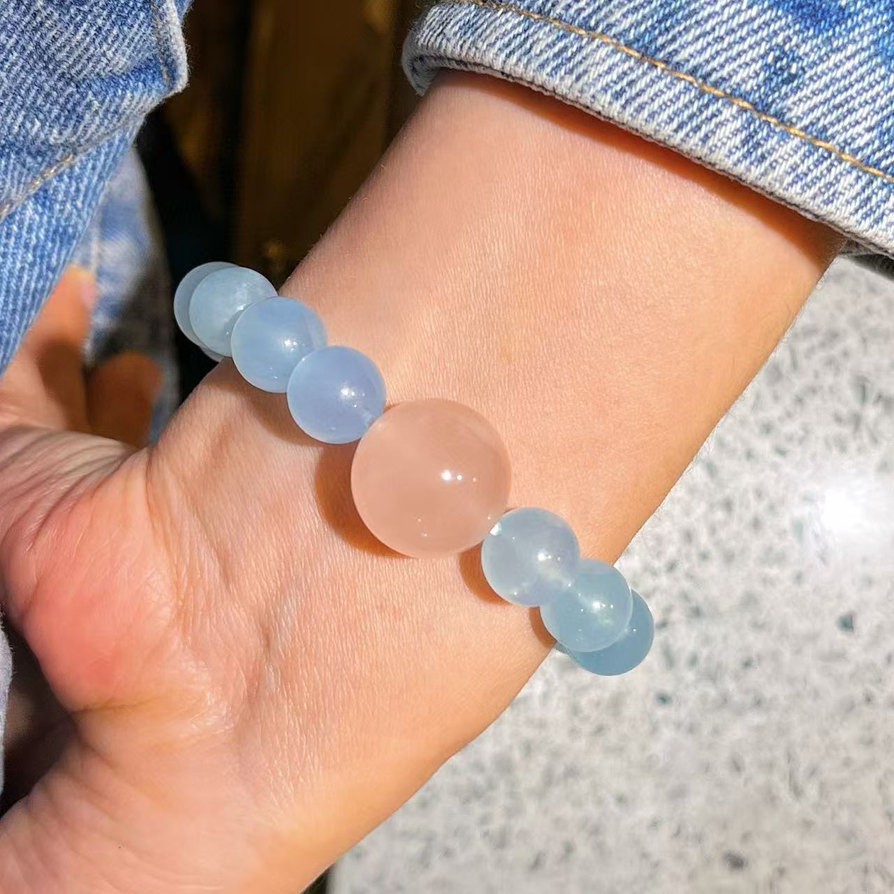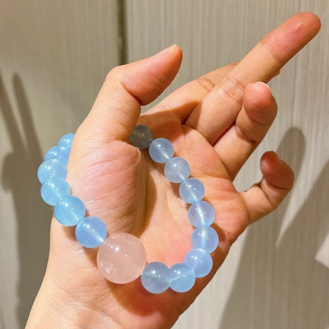 Pulsera de Aguamarina Natural de Alta Calidad de 10 mm Cuarzo Rosa de Madagascar de 16 mm