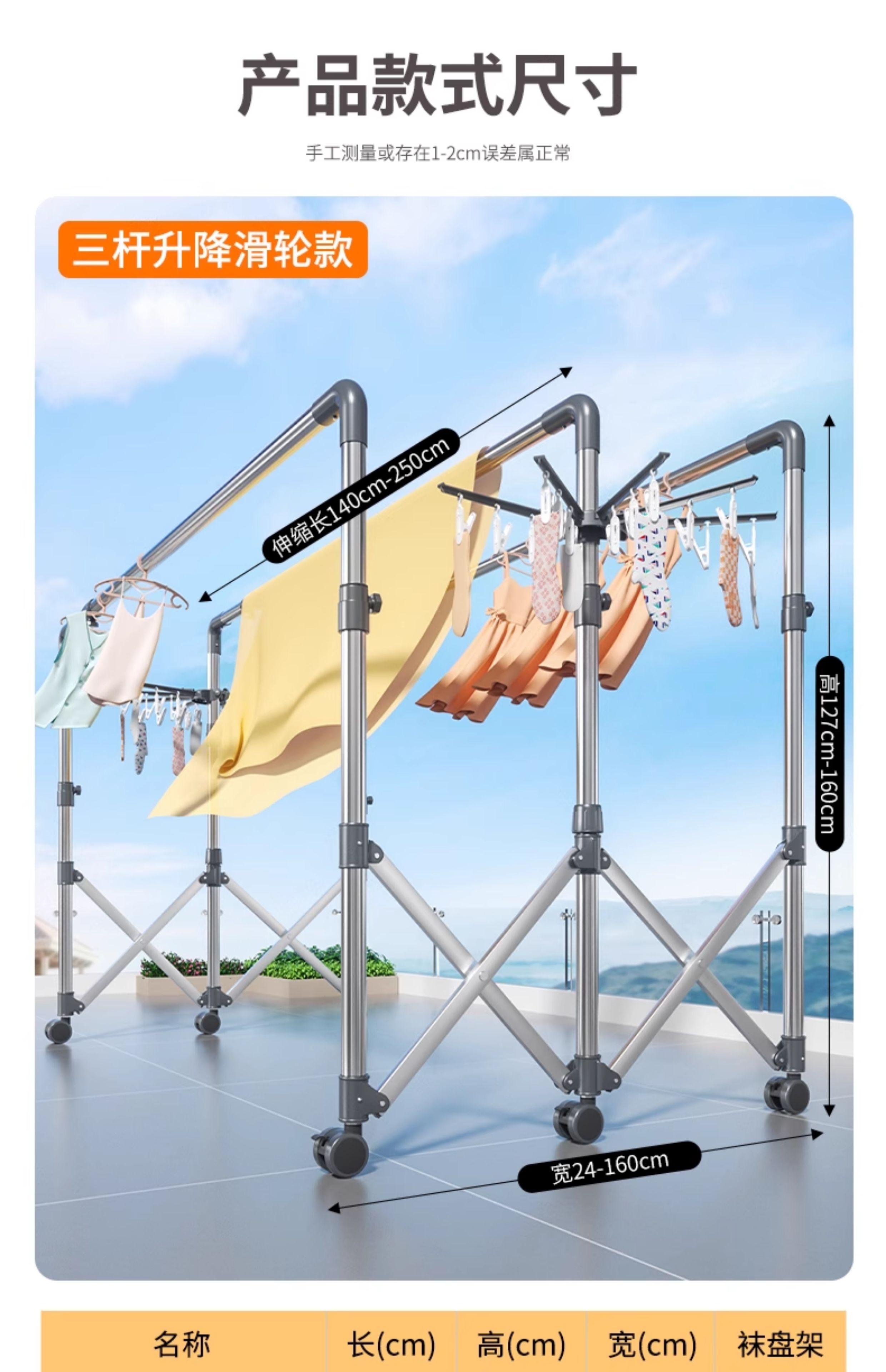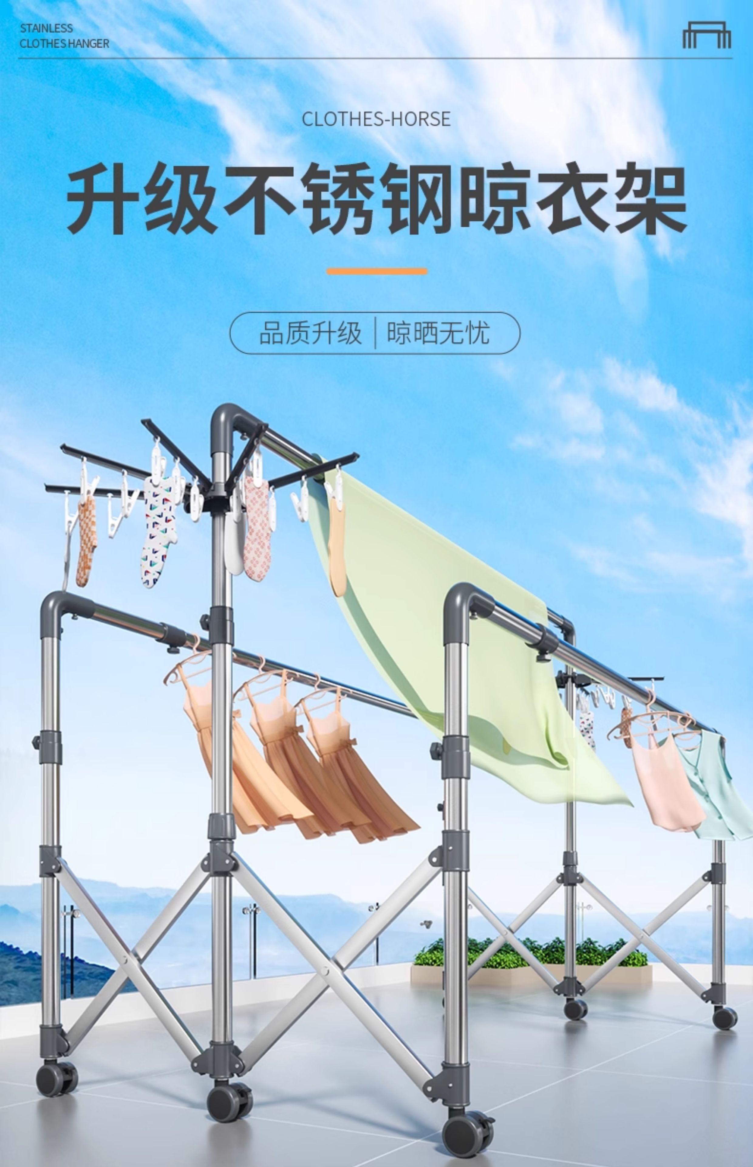 Nuevo Tendedero Plegable de Pie para Interior y Exterior Balcón, Tendedero Retráctil para el Hogar, Tendedero Móvil de Acero Inoxidable