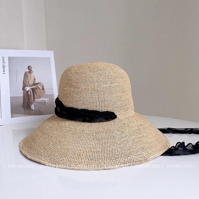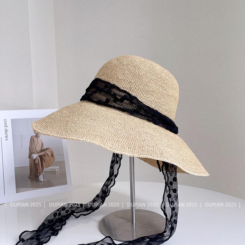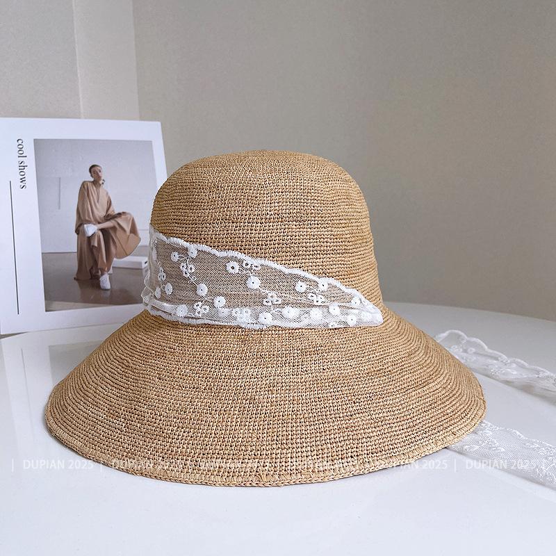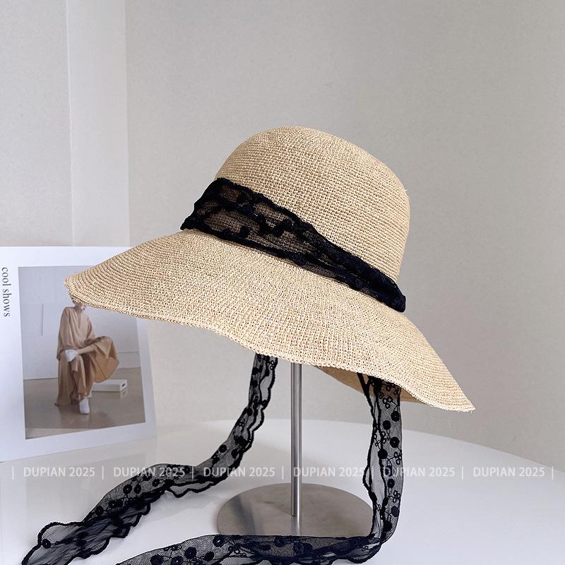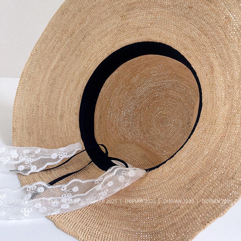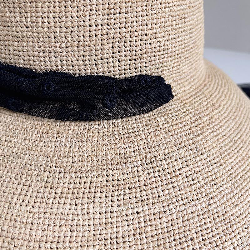 Sombrero de Paja de Rafia de Encaje Fresco y Sencillo para Mujer, Sombrero de Paja de Verano para el Sol, Tendencia Sombrero de Sol para Vacaciones en la Playa