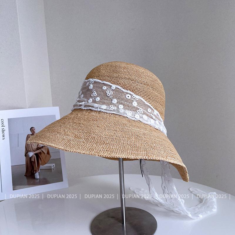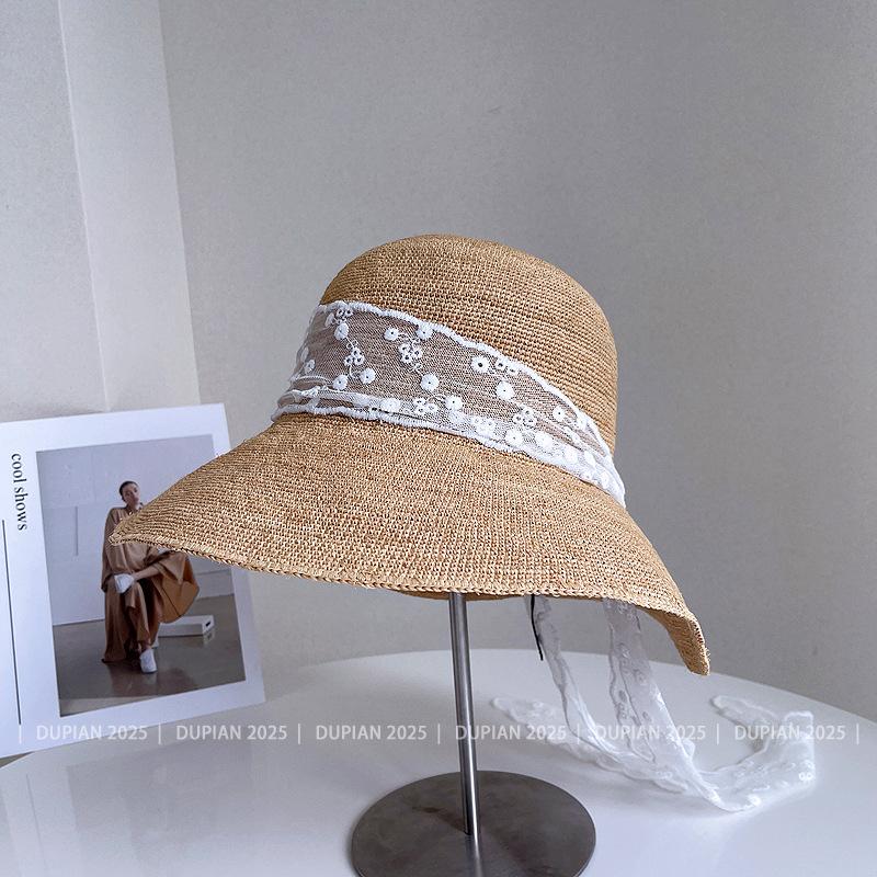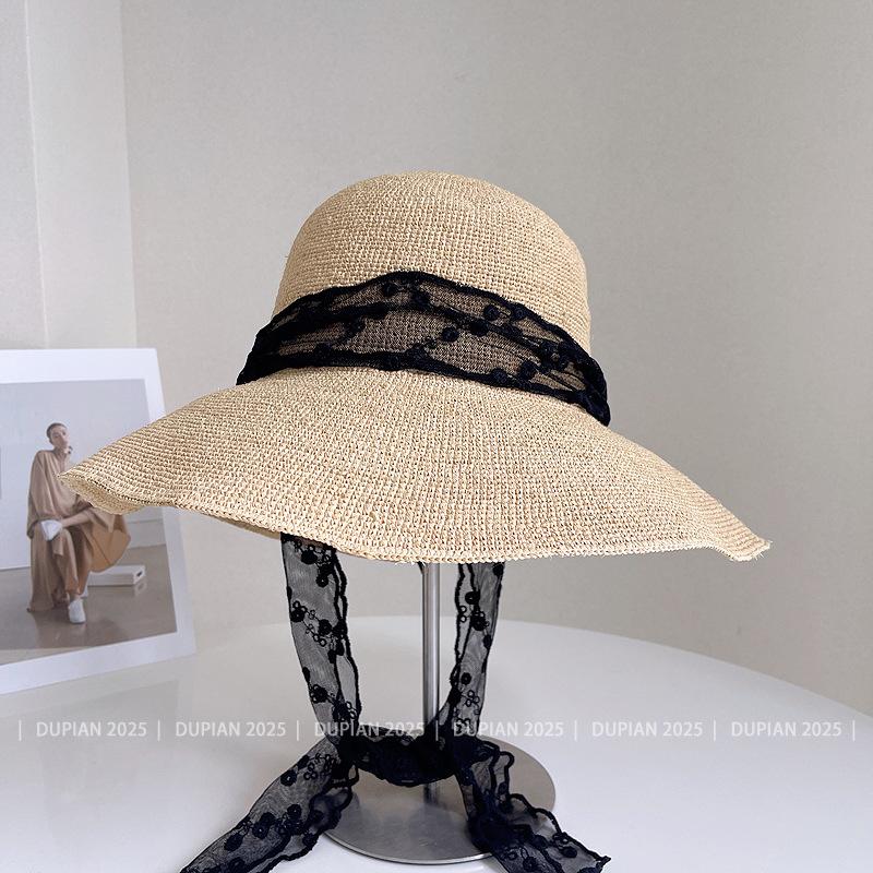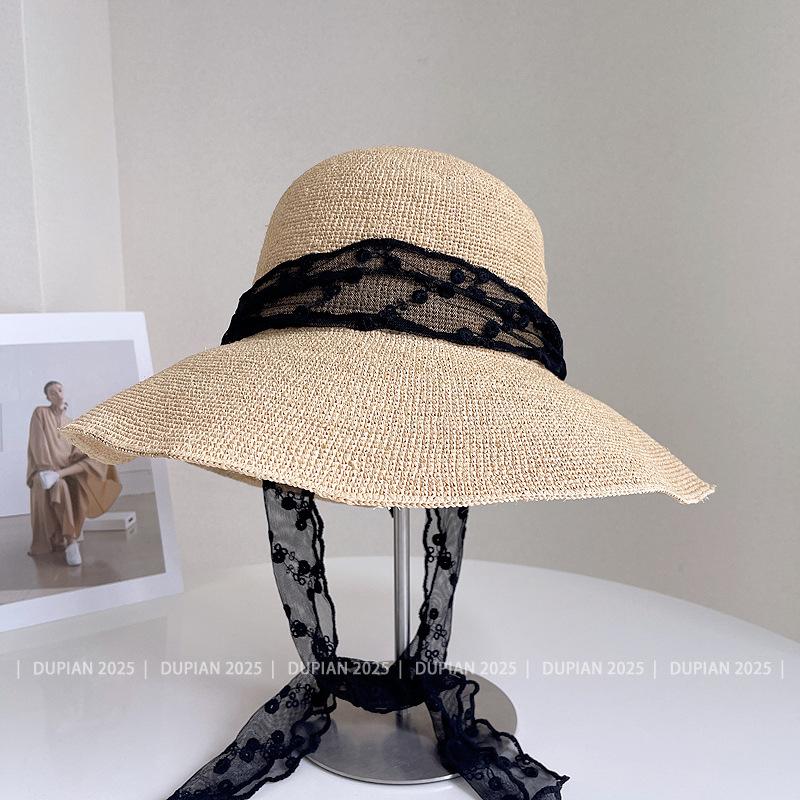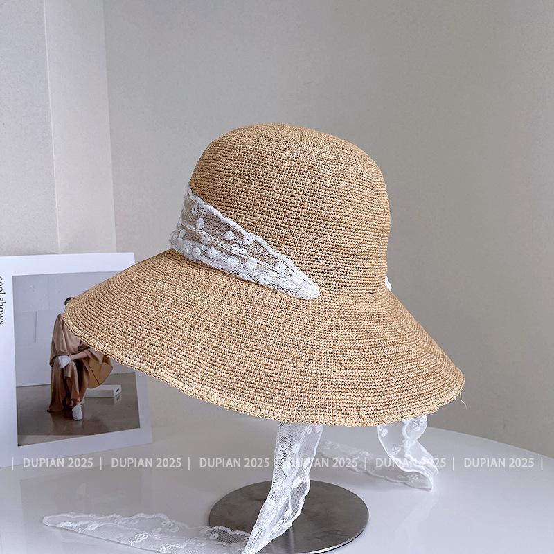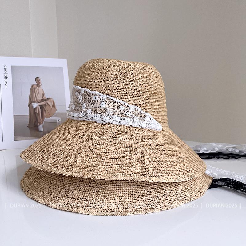 Sombrero de Paja de Rafia de Encaje Fresco y Sencillo para Mujer, Sombrero de Paja de Verano para el Sol, Tendencia Sombrero de Sol para Vacaciones en la Playa