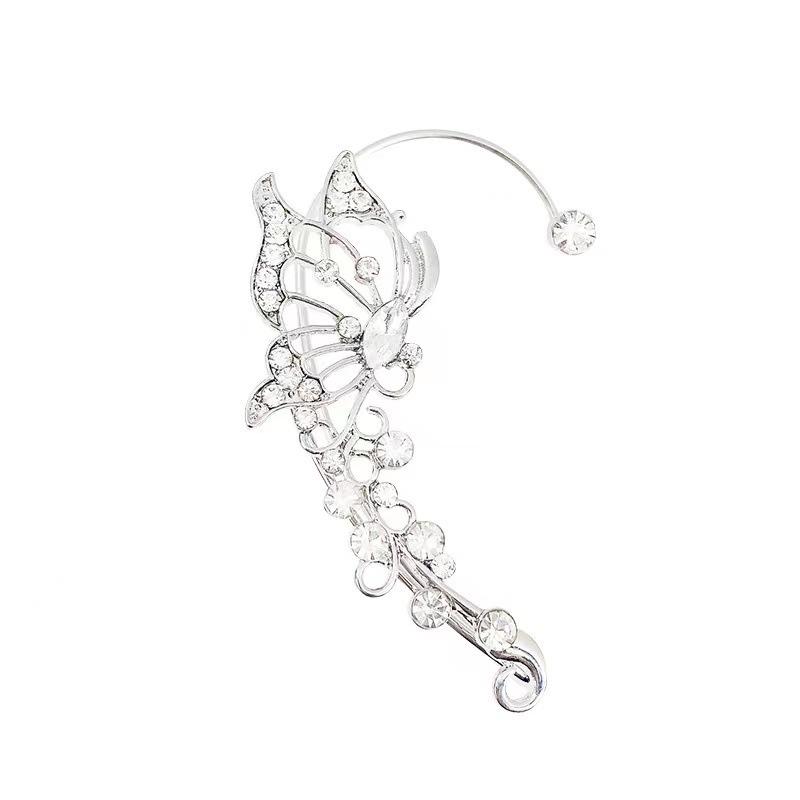 Pendiente de mariposa de circonita hueca transfronteriza de hada de una pieza versátil clip para la oreja sin agujero en la oreja cos clip para la oreja aretes venta al por mayor