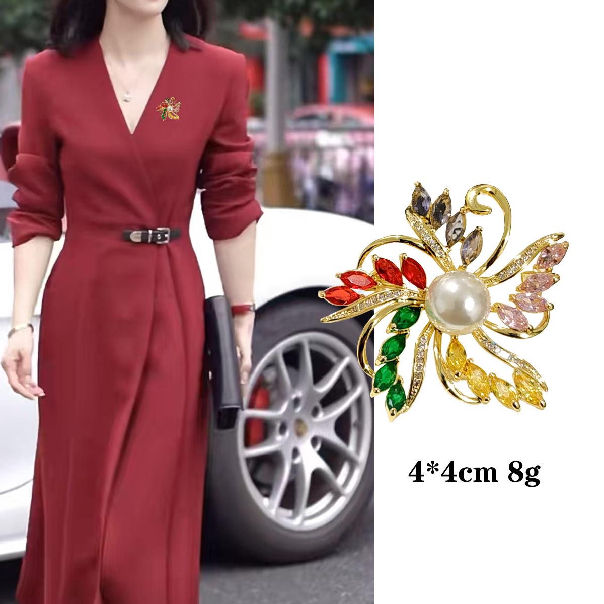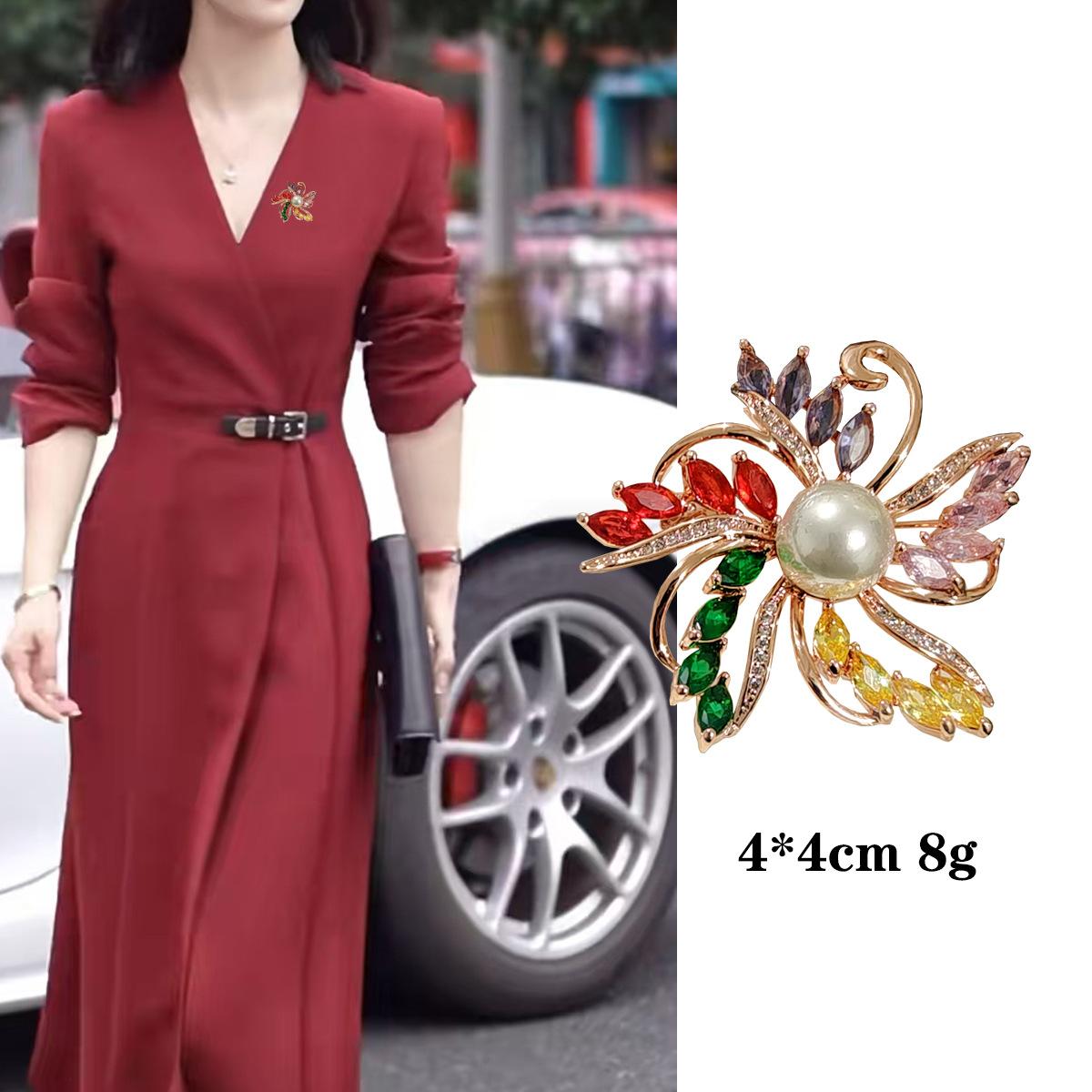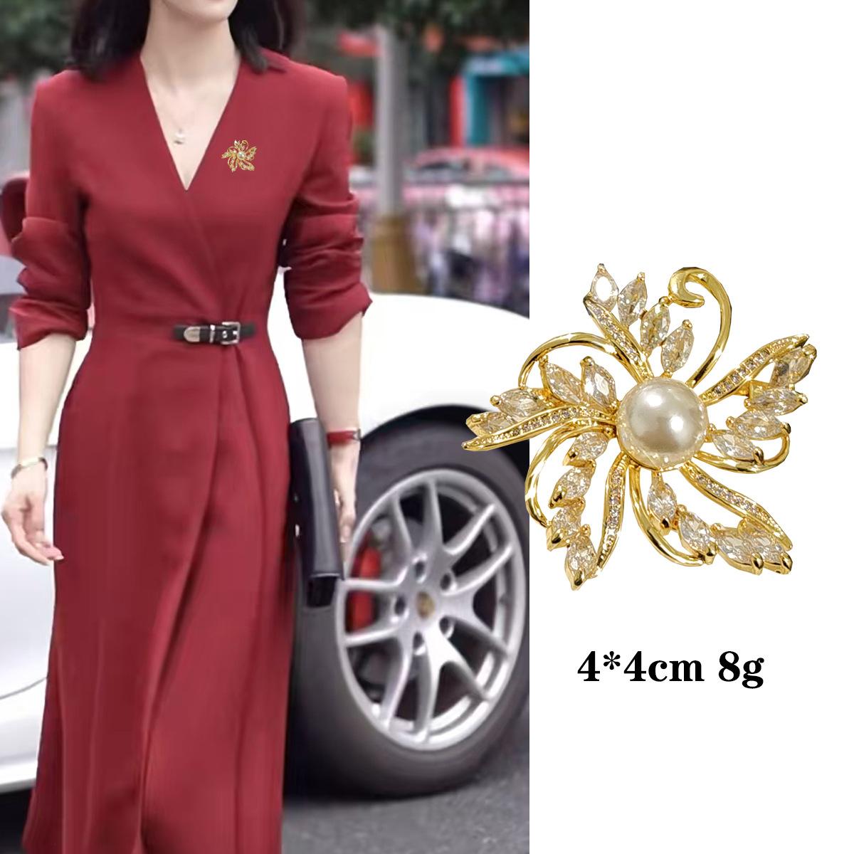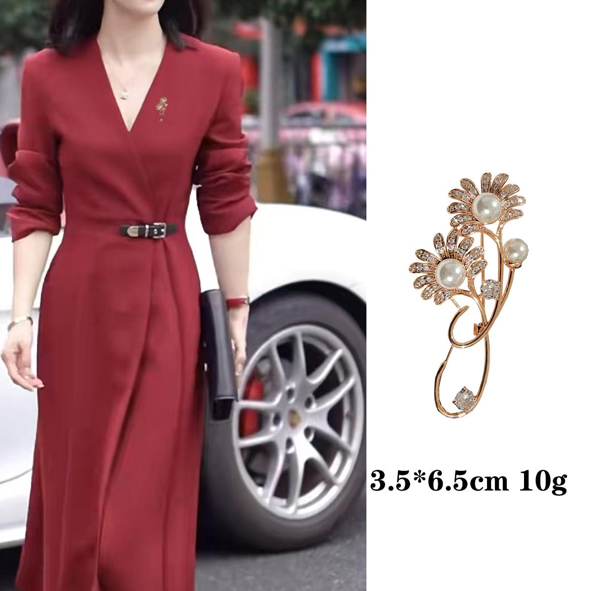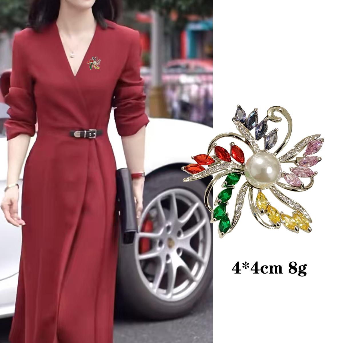 Broche de Circonita Europeo y Americano de Moda Personalizado Traje de Mujer Corsage de Flor Pin Sencillo Accesorios para Abrigo Broche al por Mayor