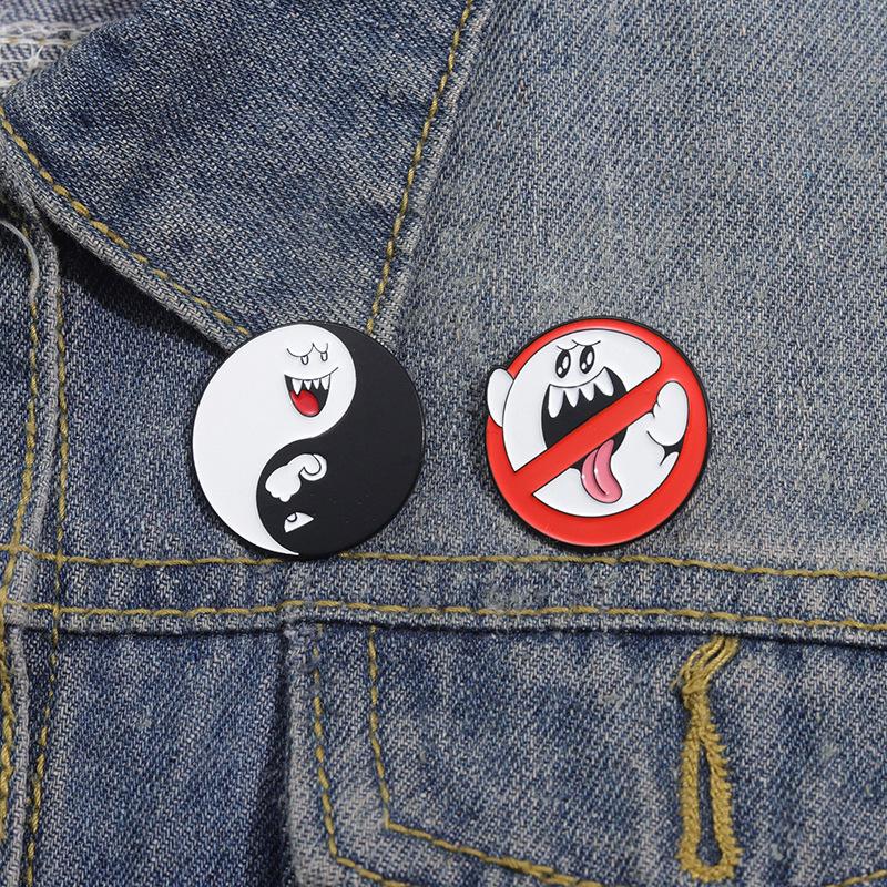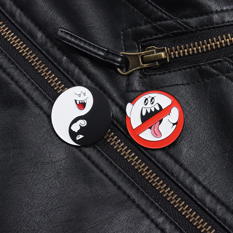 Broche redondo de metal de dibujos animados lindo fantasma hush anime periférico ropa sombrero fijo todo-combina insignia exquisita