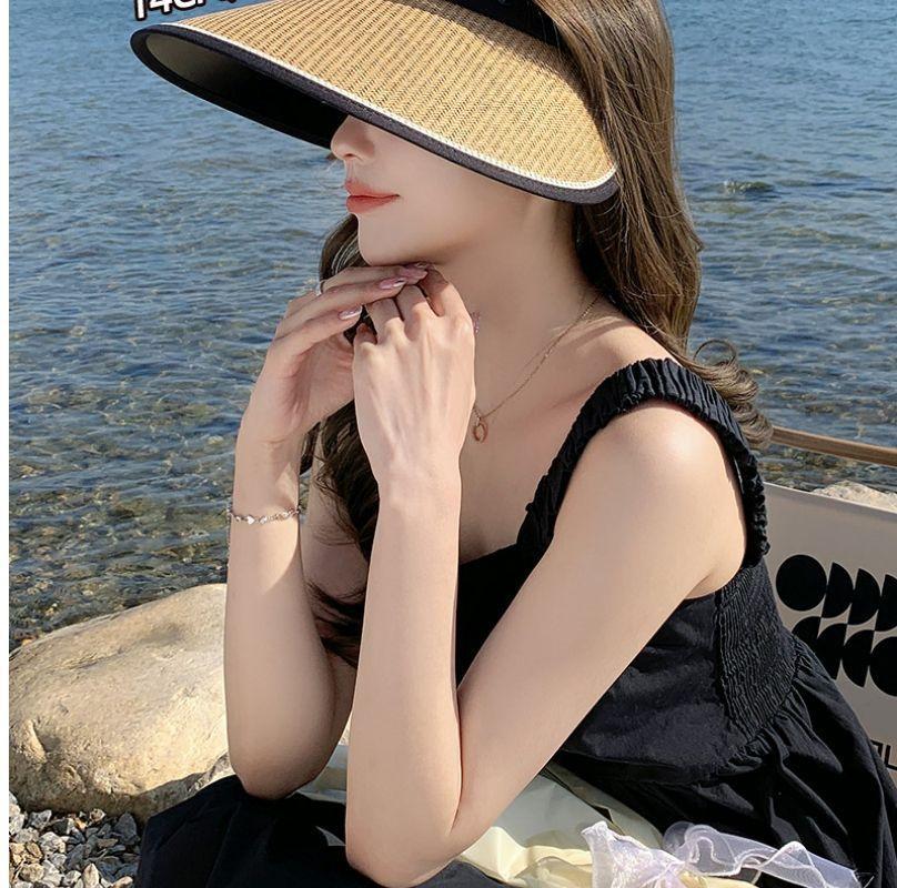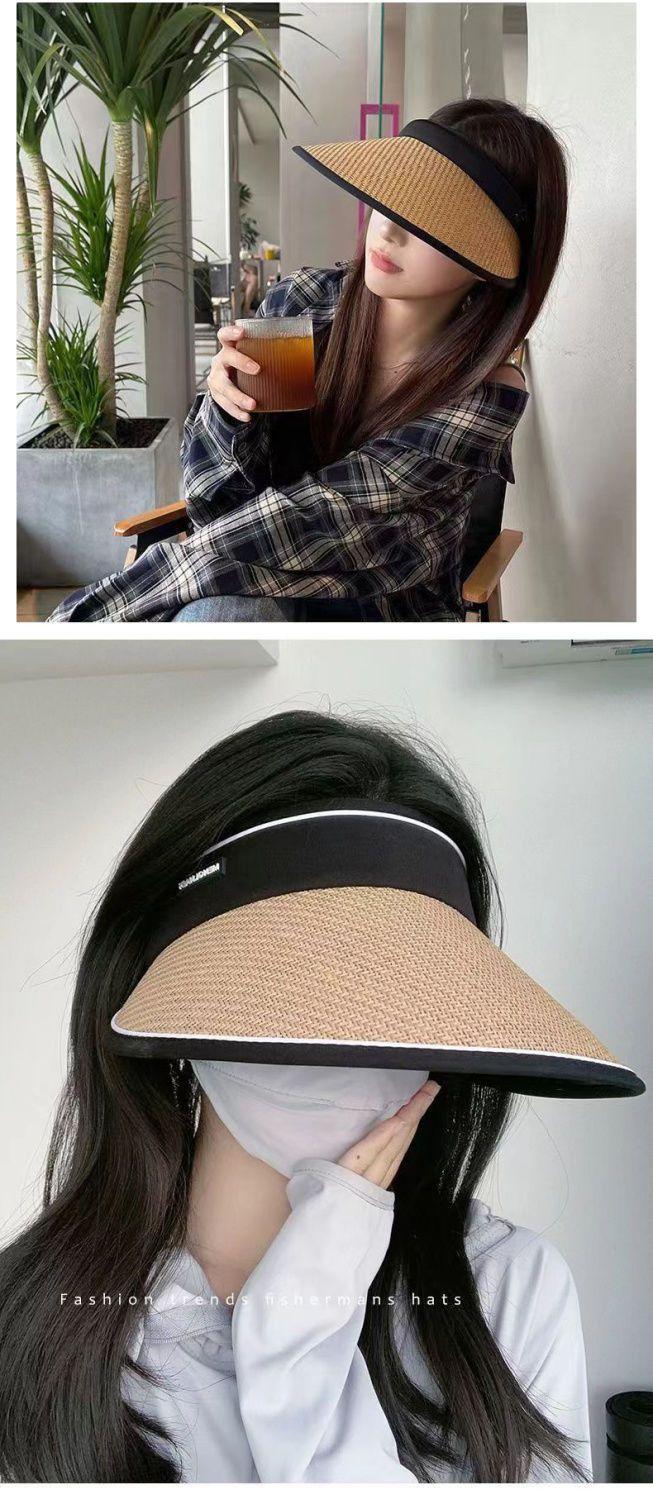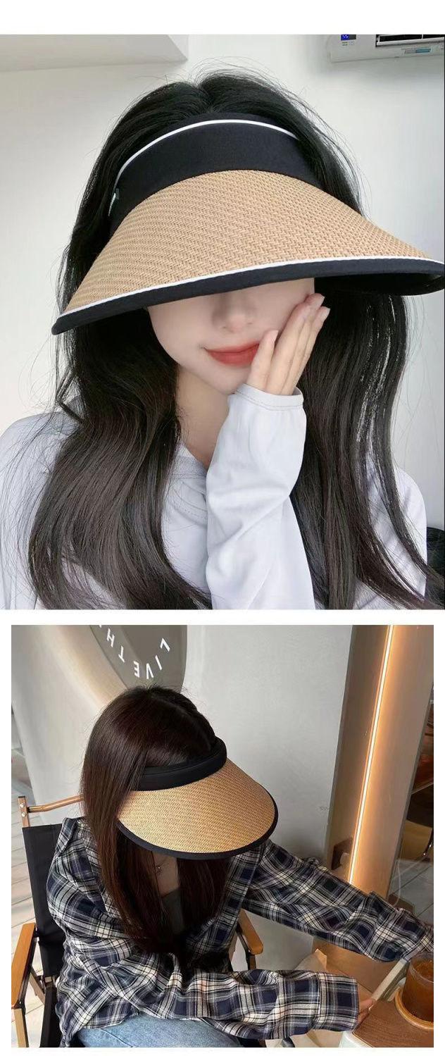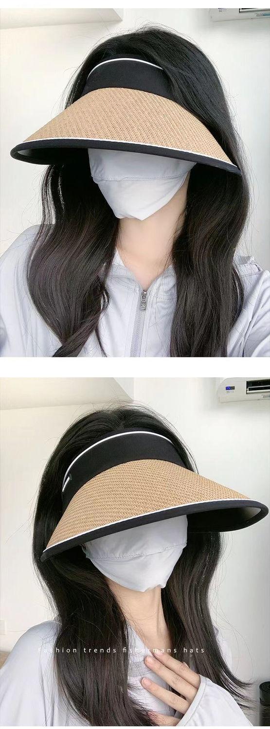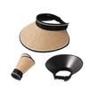 Sombrero de Paja de Verano con Copa Hueca, Sombrero de Protección Solar, Anti-UV, Ala Ancha, Sombrero de Sol Plegable con Cubierta Facial, Sombrero de Sol