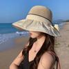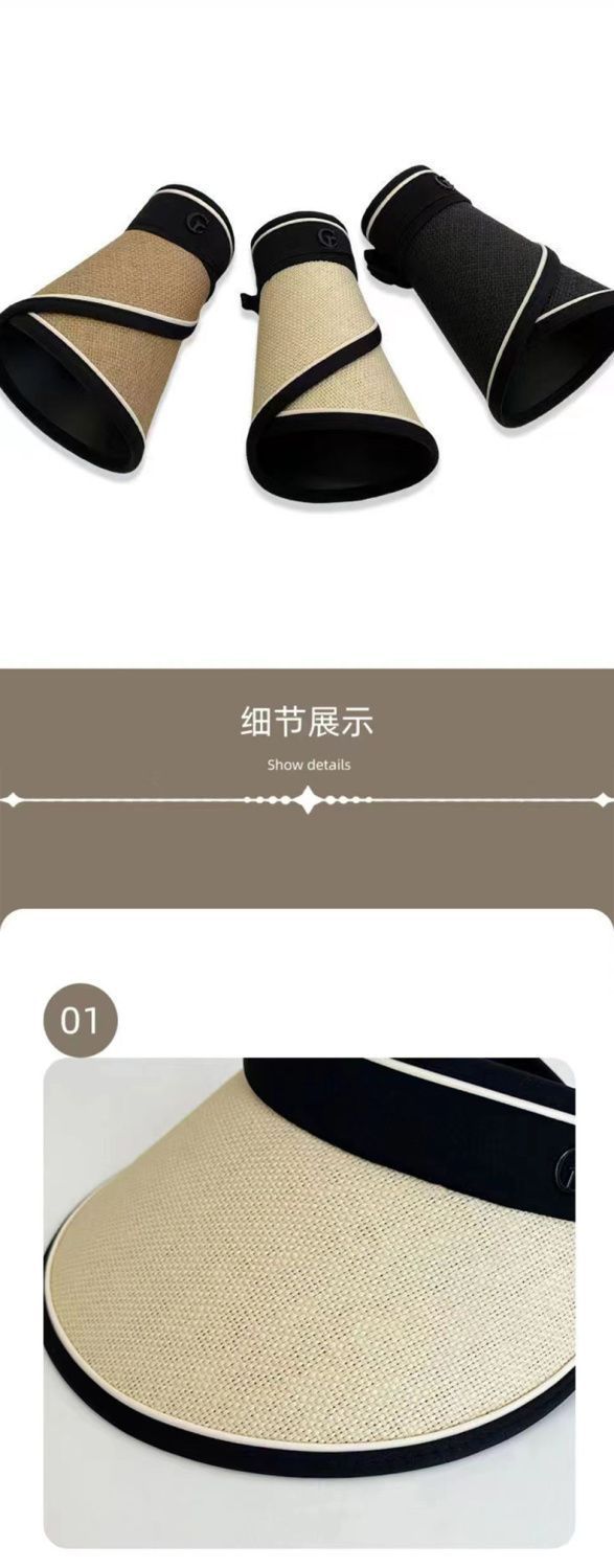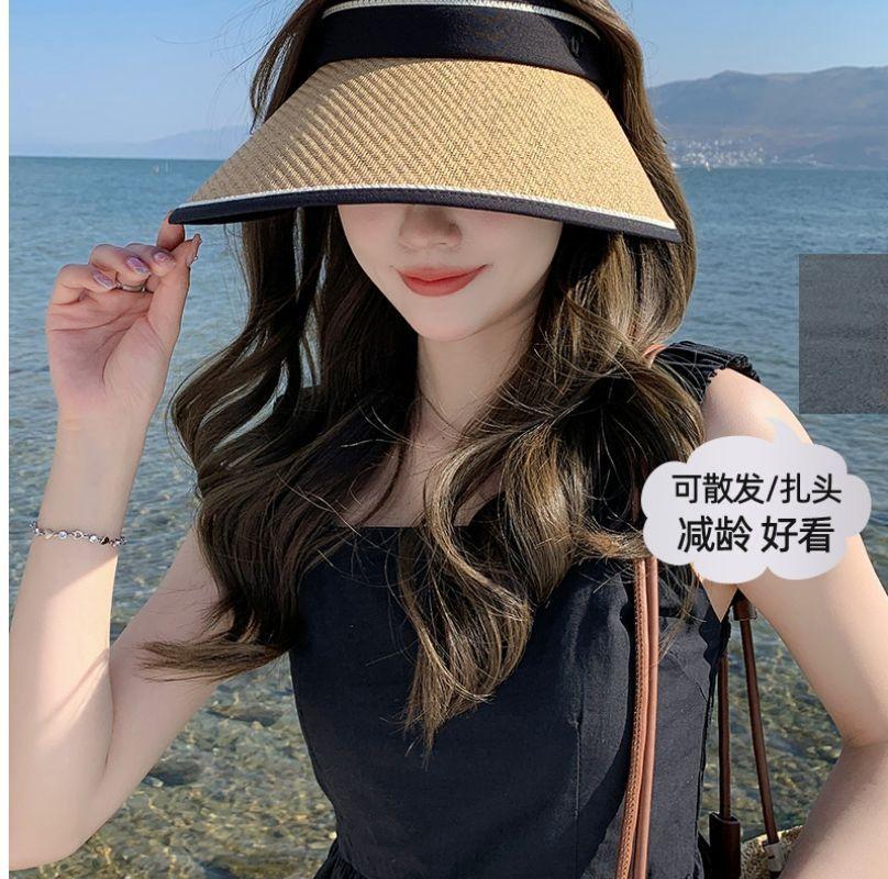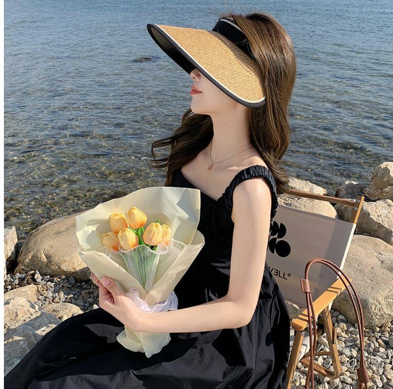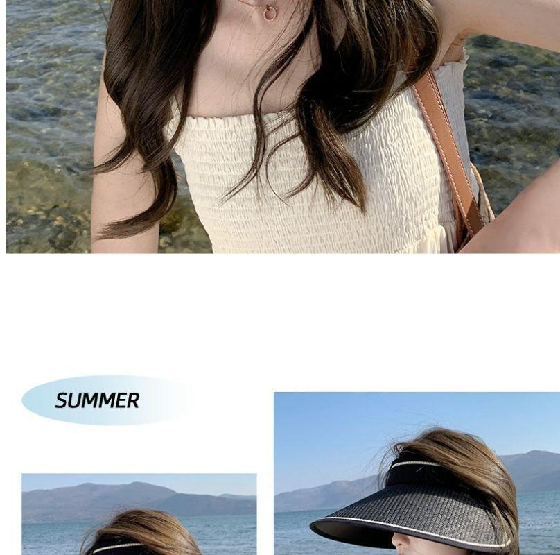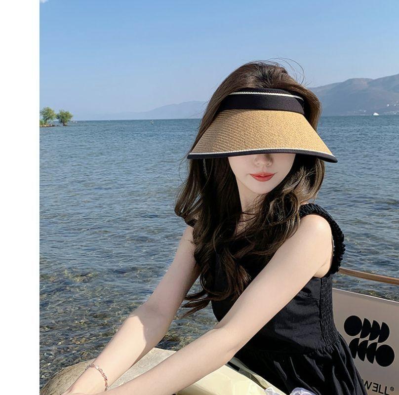 Sombrero de Paja de Verano con Copa Hueca, Sombrero de Protección Solar, Anti-UV, Ala Ancha, Sombrero de Sol Plegable con Cubierta Facial, Sombrero de Sol