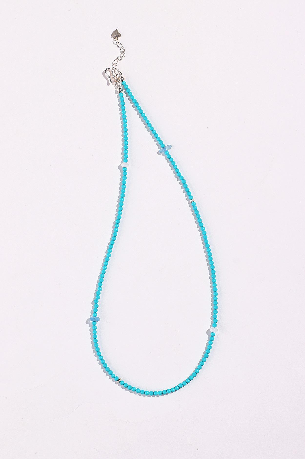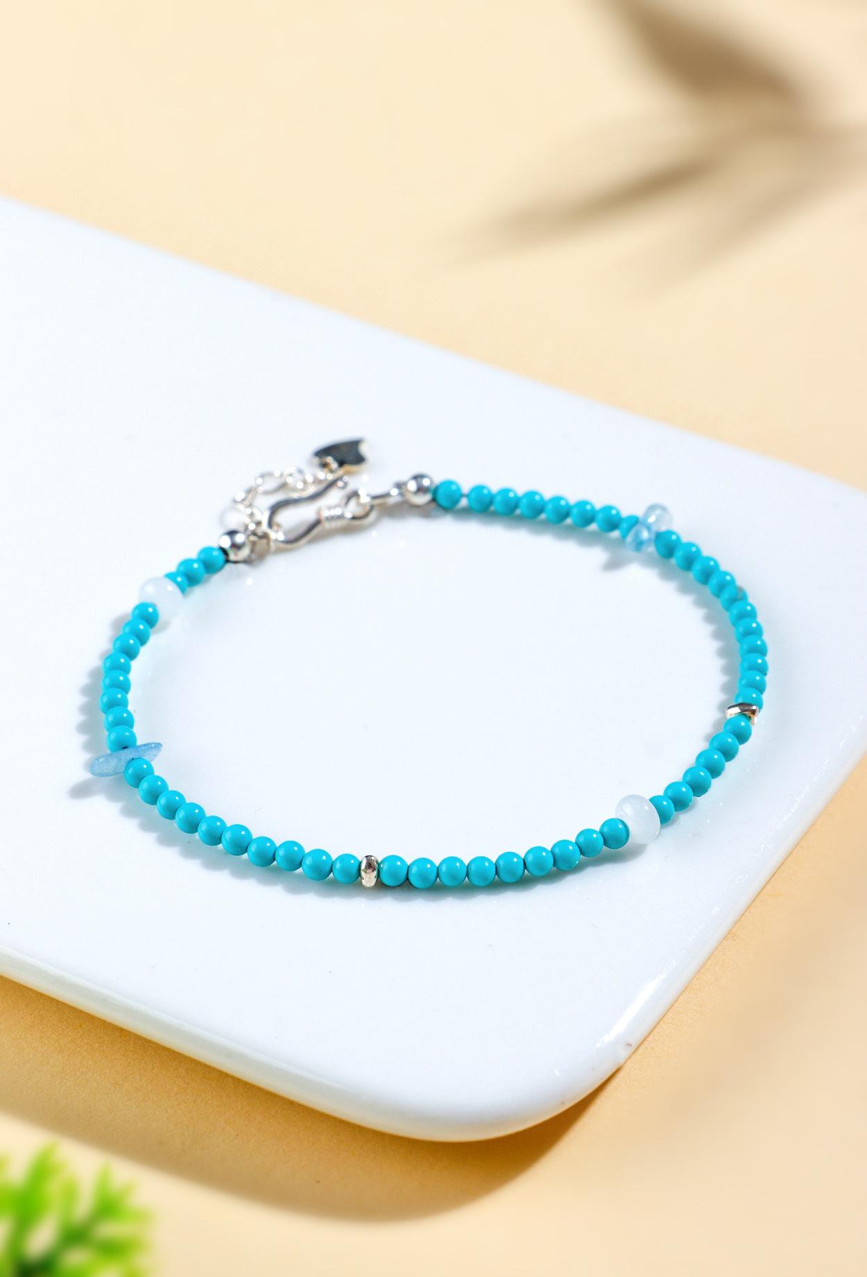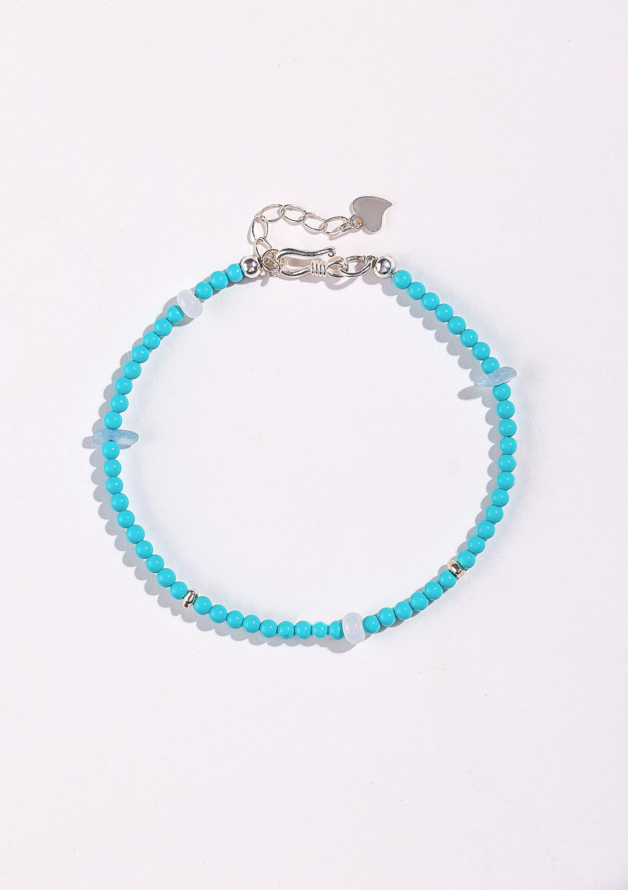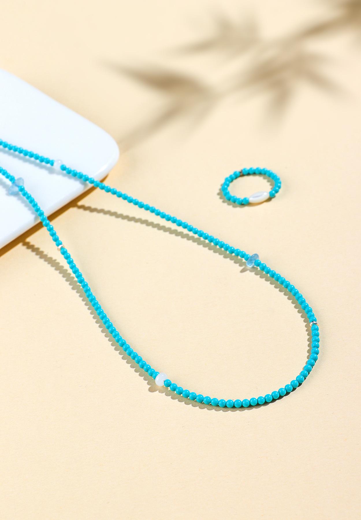 Turquesa Natural Aguamarina con Cuentas Anillo de Cristal Pulsera Collar Conjunto de Tres Piezas para Mujer Collar Dulce y Fresco Joyería