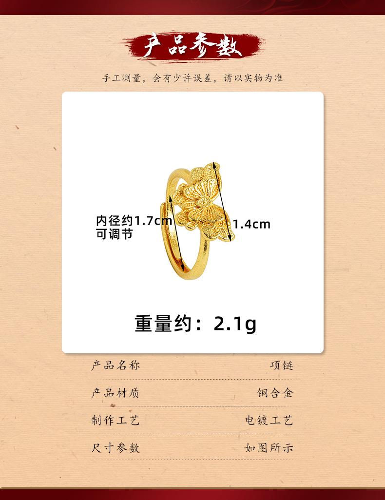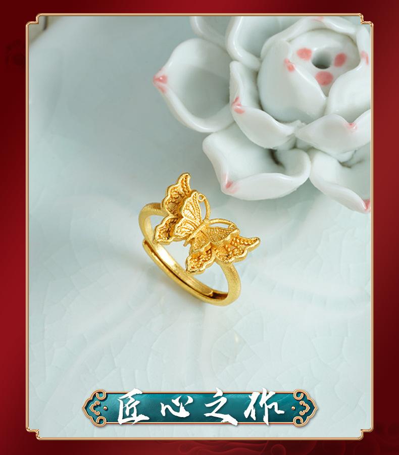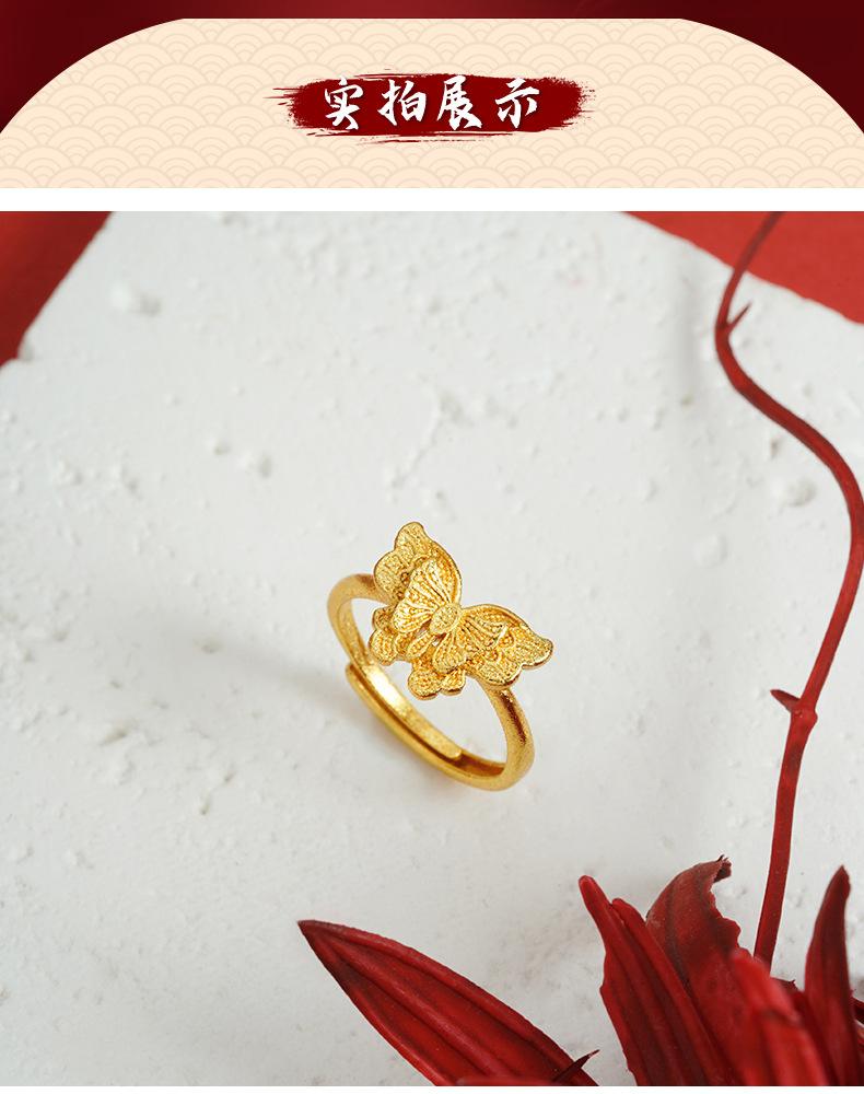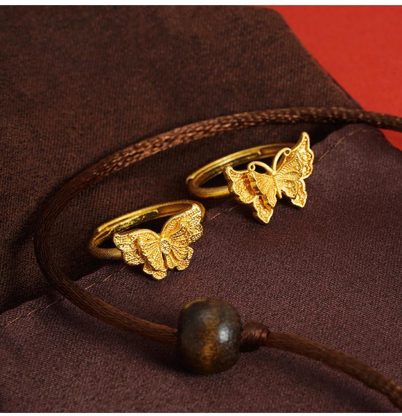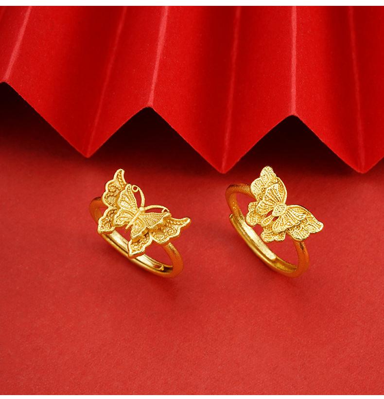 Anillo de Oro Arena Antigua Estilo Chino Nuevo Estilo Étnico Moderno Doble Capa Filigrana Tridimensional Mariposa Anillo Dedo Índice Joyería Retro para Mujer